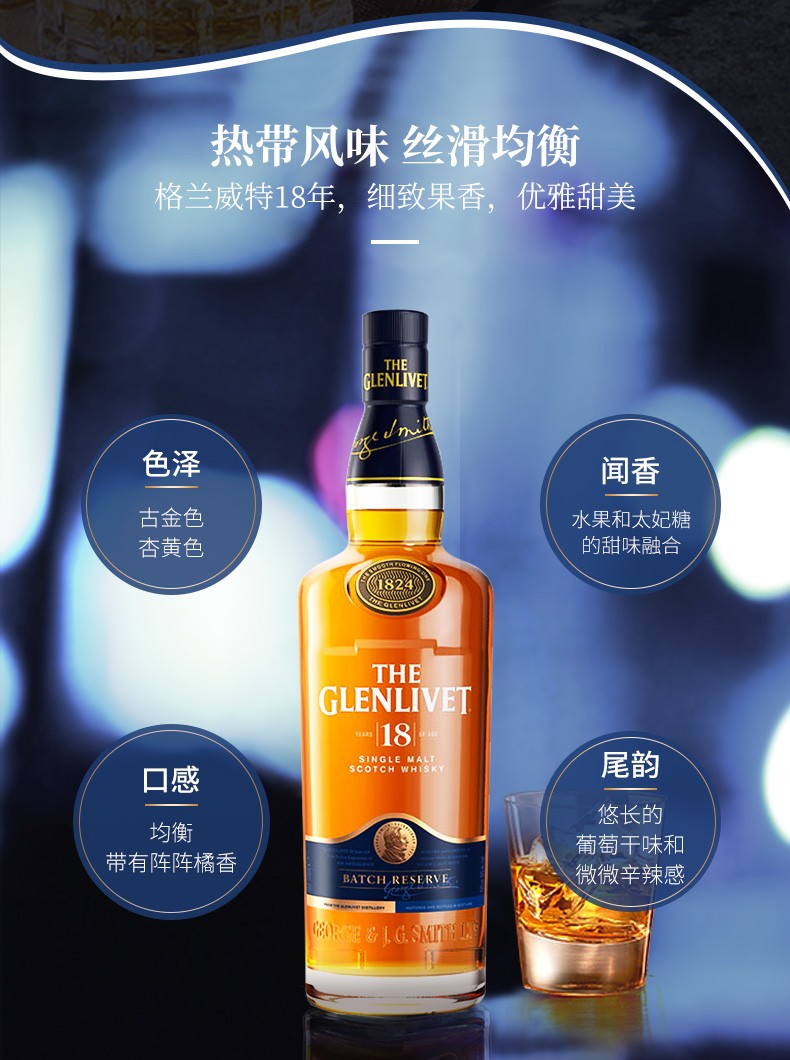 格兰威特(The Glenlivet) 18年 斯佩塞单一麦芽威士忌