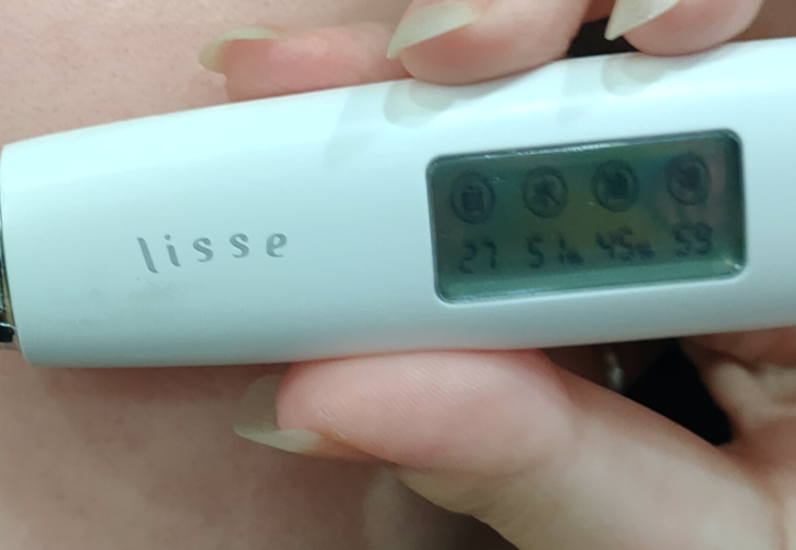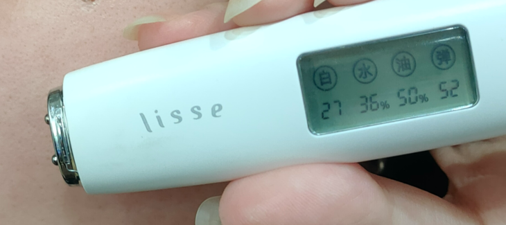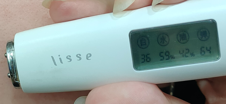 做完面膜,洗掉后,擦干,我还特意做了水分测试,用之前严重的水少油多,水分值才36%