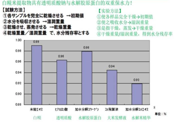 双盲测试,证明“白糀”酵源的保湿锁水功能高达99%,并非短暂直接作用在皮肤表层,而是渗透到皮肤角质层里,深层保湿锁水,并不会出现高饱水快速穿透,反而倒拔干的情况。