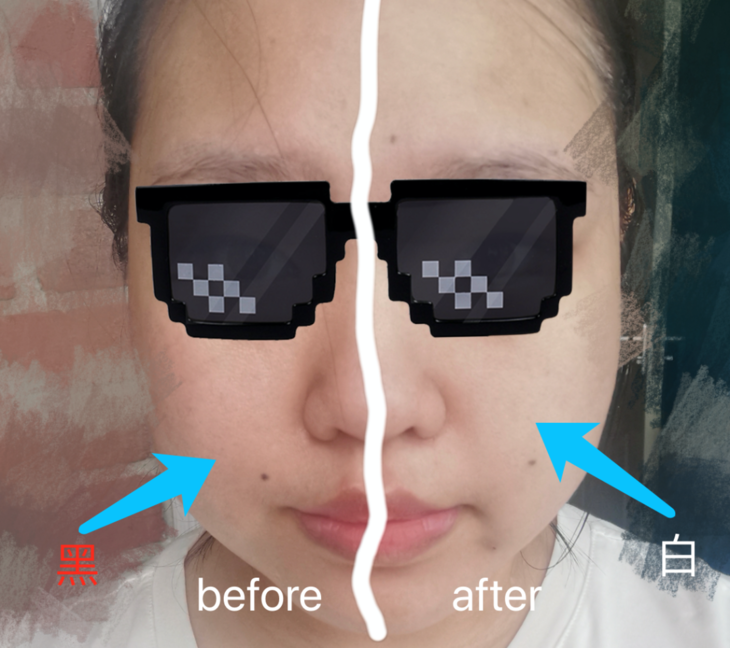 赶紧把另一边也好好的涂抹用了,这下才算恢复正常,两边都白白净净的