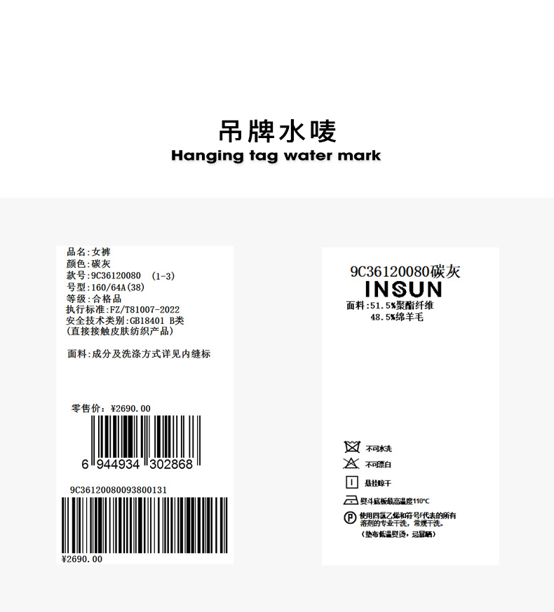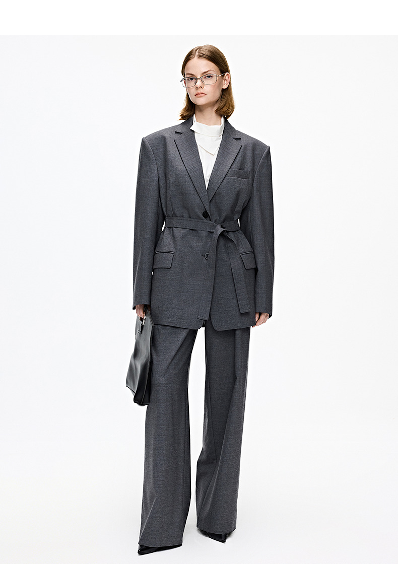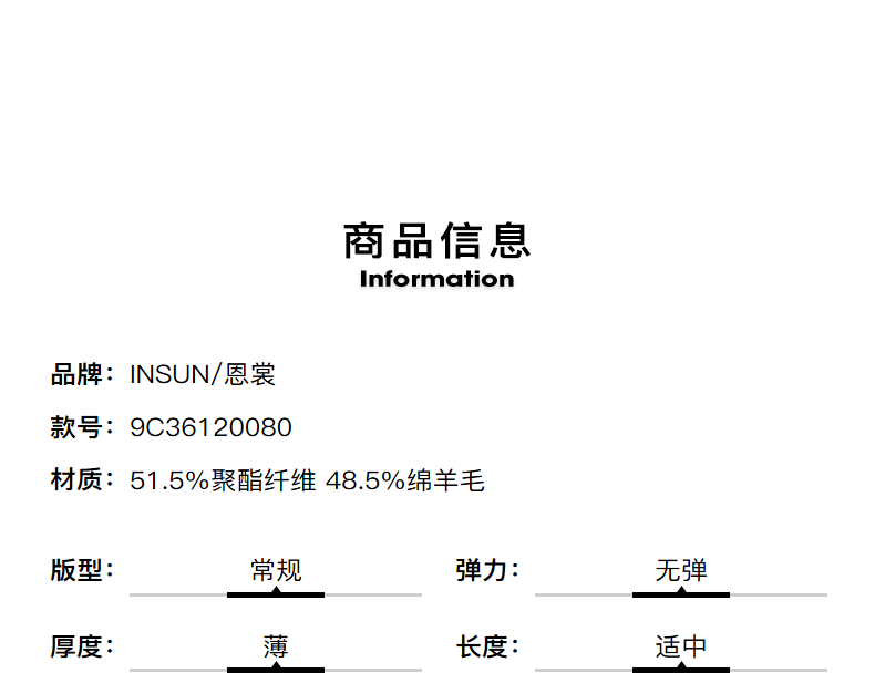 INSUN恩裳商务风肌理感直筒羊毛西裤