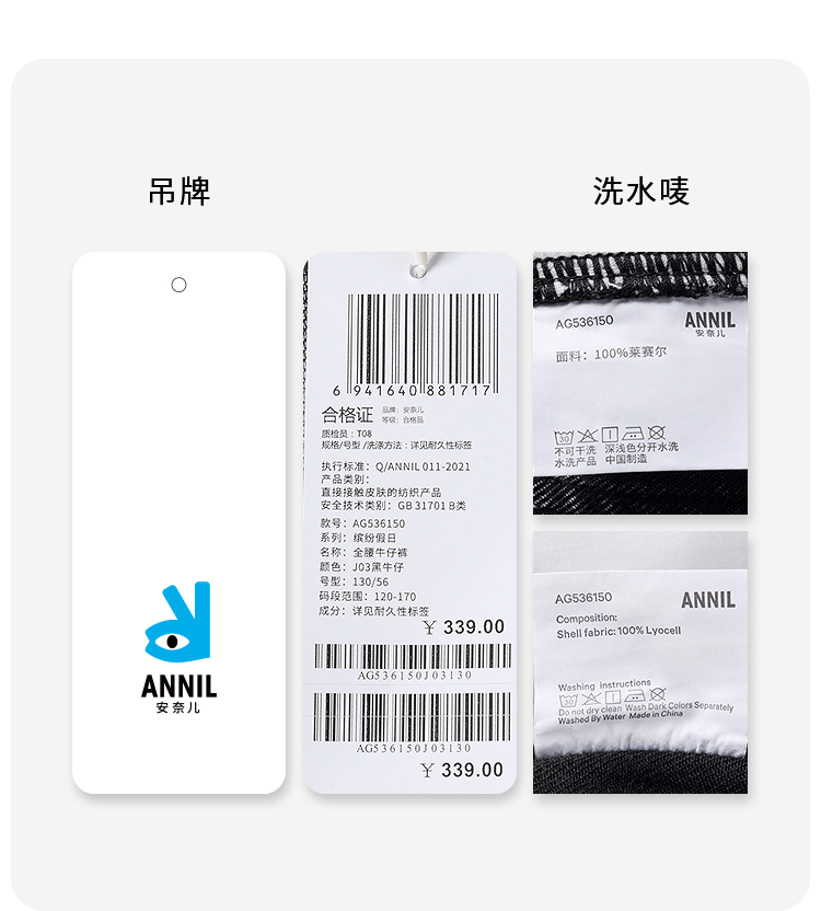 【实体店同款】女童全腰牛仔裤秋季新款安奈儿童装AG536150