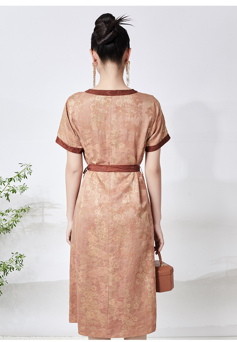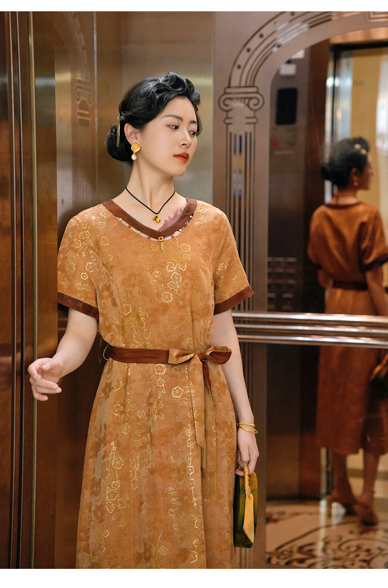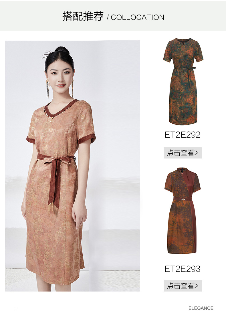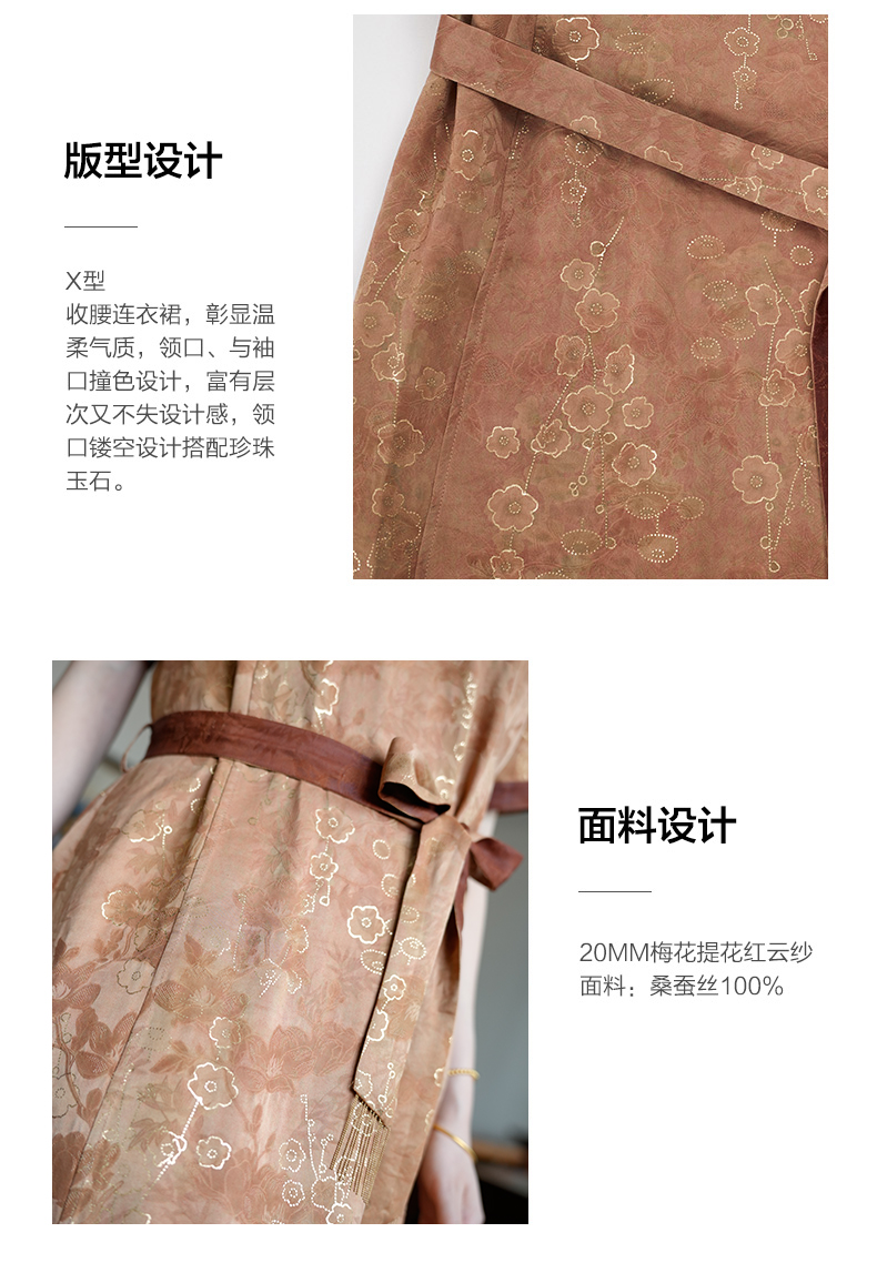 【红云纱】乔万尼真丝红云纱连衣裙20mm重磅桑蚕丝撞色设计ET2E279