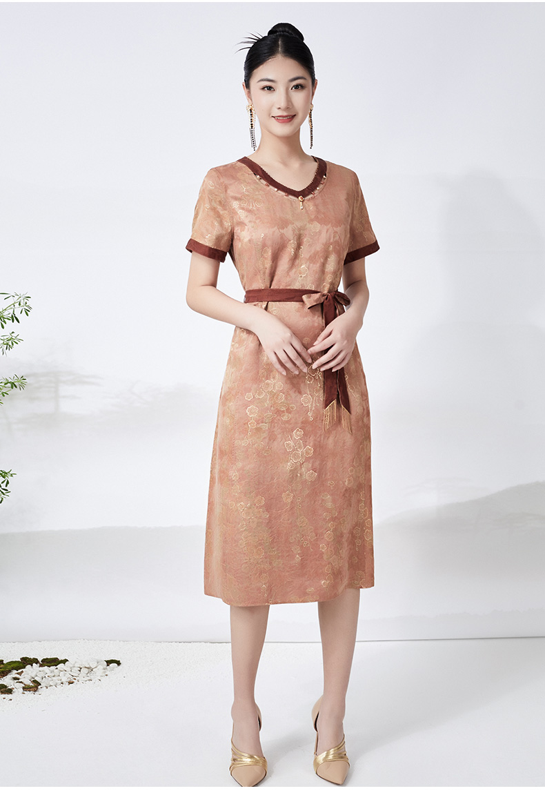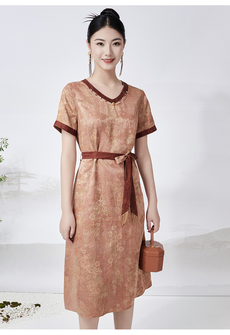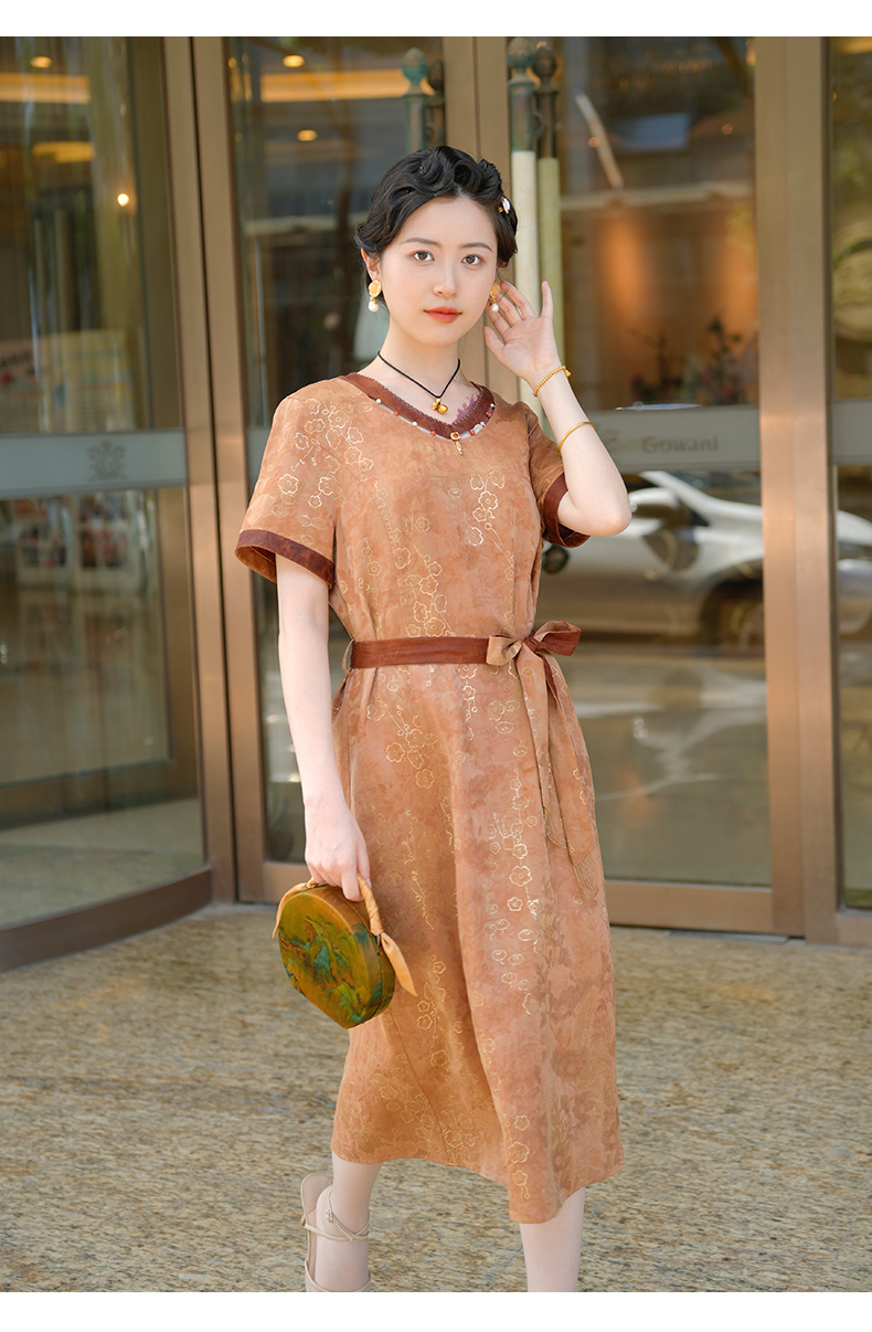 【红云纱】乔万尼真丝红云纱连衣裙20mm重磅桑蚕丝撞色设计ET2E279
