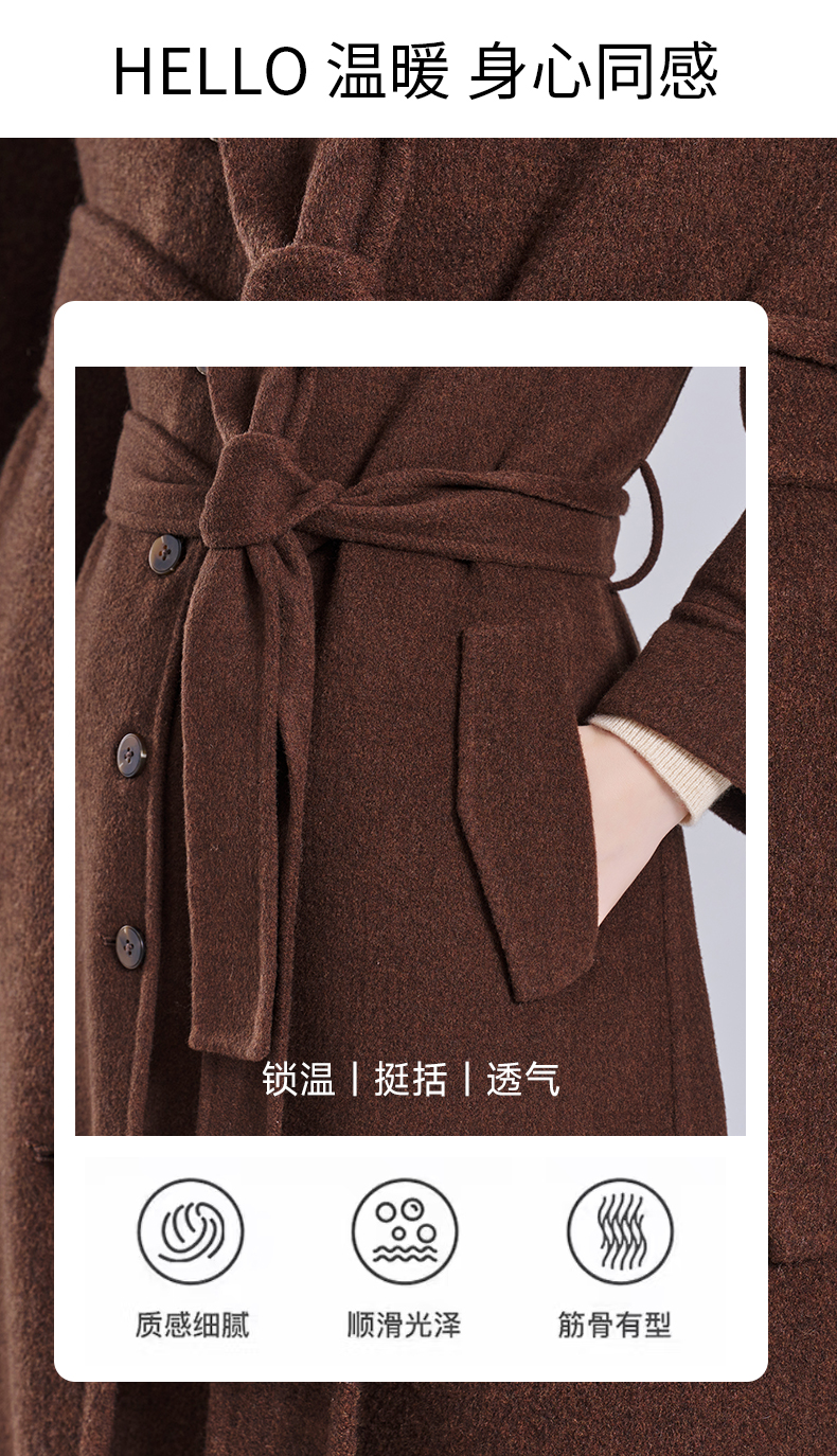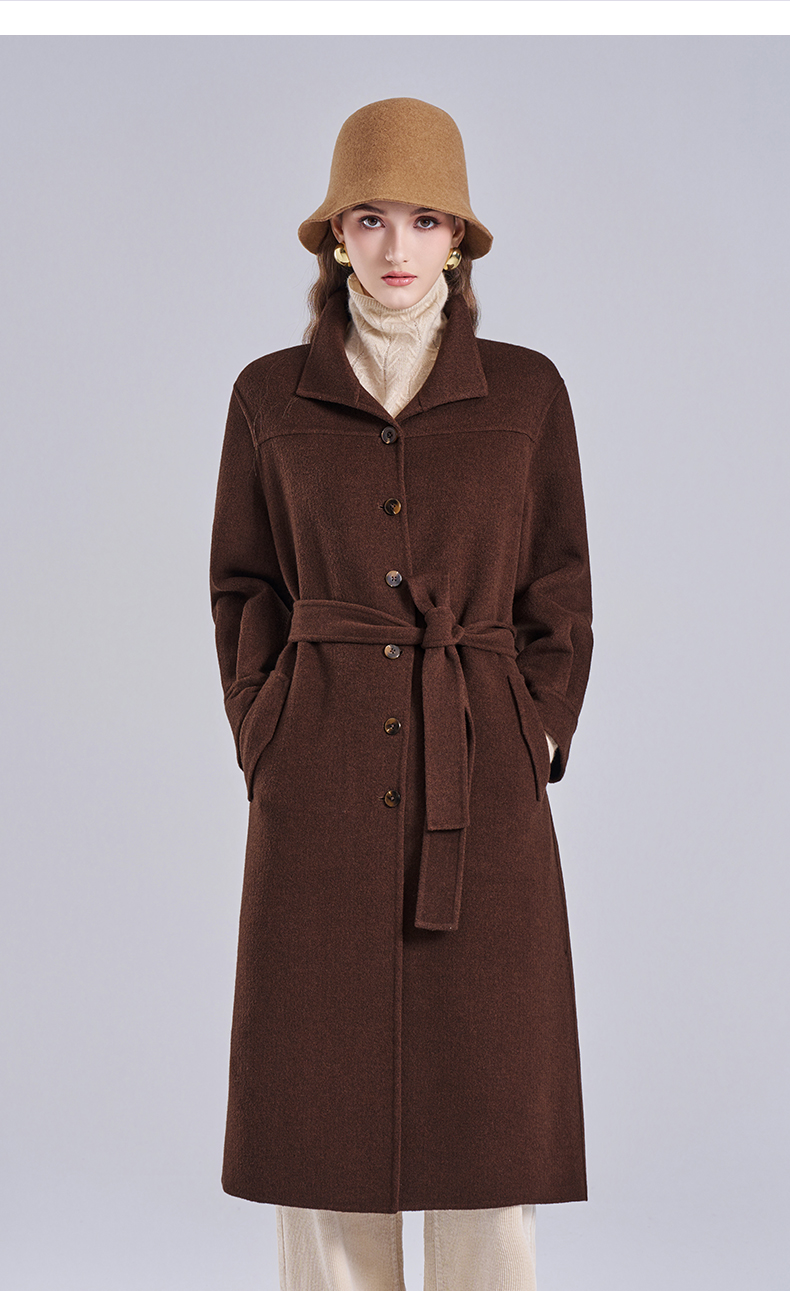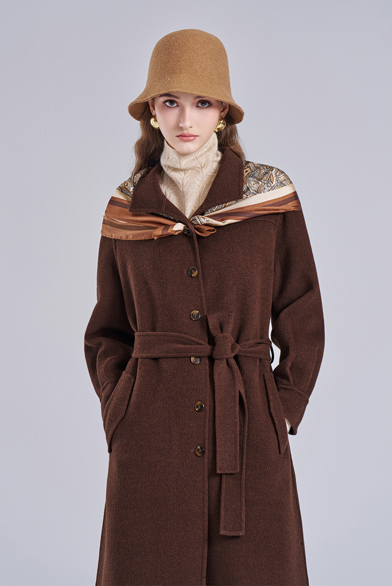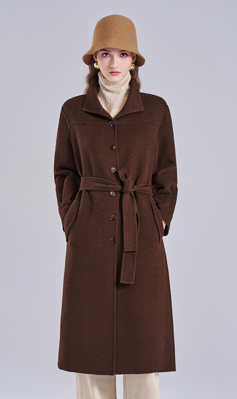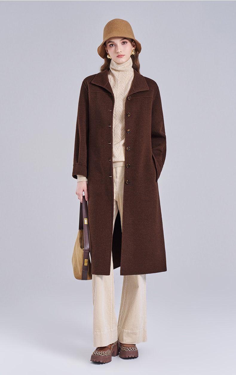 乔万尼2025新品冬翻领复古混橘羊毛羊绒中长款大衣ED4A728