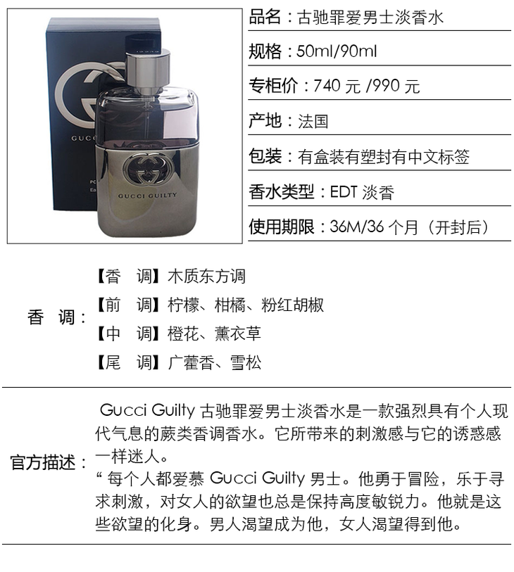 GUCCI 古驰罪爱男士淡香水50ml/90ml