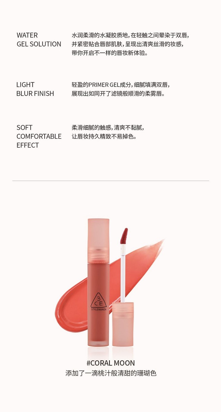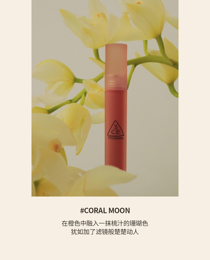 韩国 3ce 水感雾面唇釉 #CORAL MOON 4.6g【香港直邮】