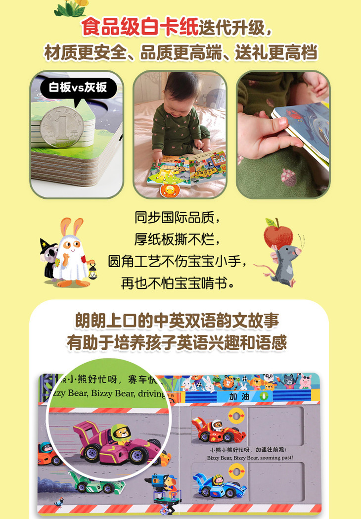 ★全新超厚白卡纸升级版,画面更清晰,品质更;圆角工艺不伤小手,撕咬扯都不怕;外版原厂印刷,,放心。