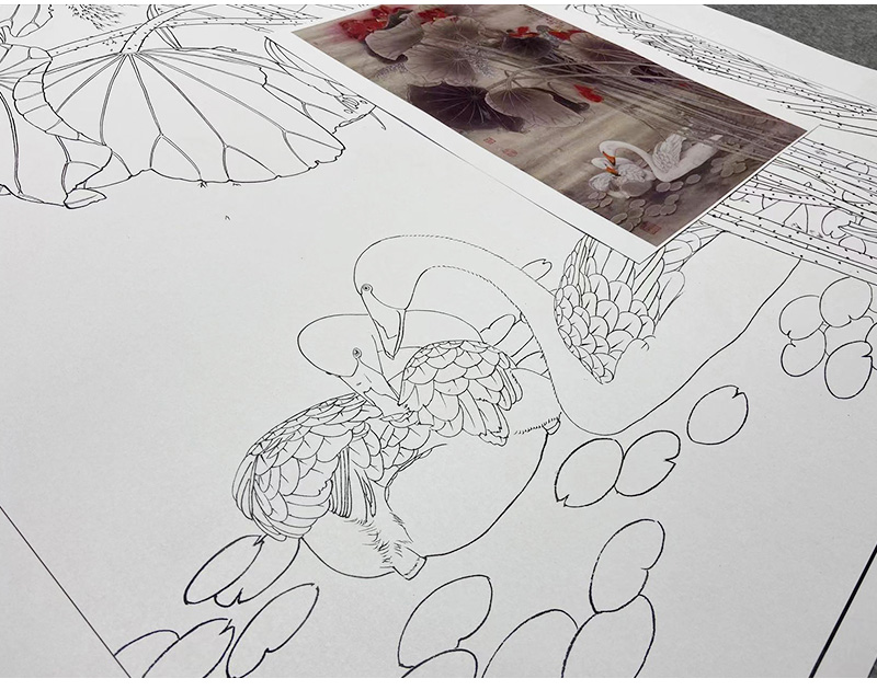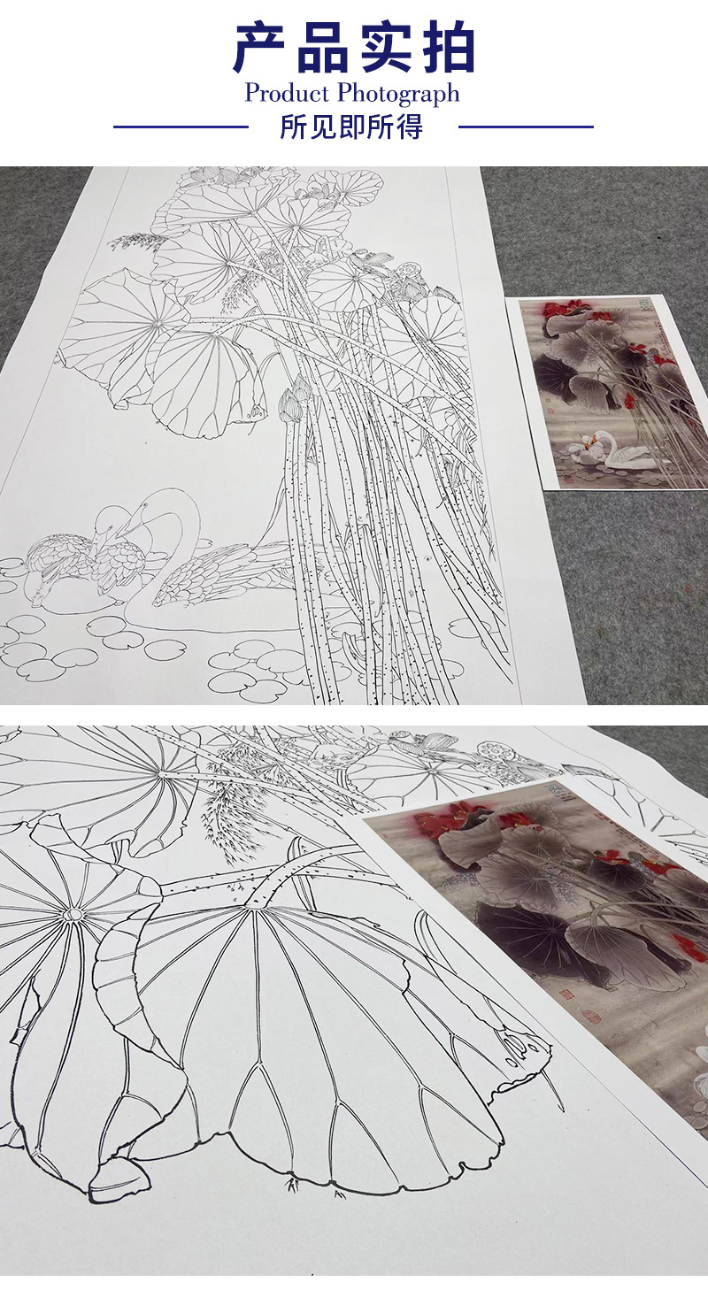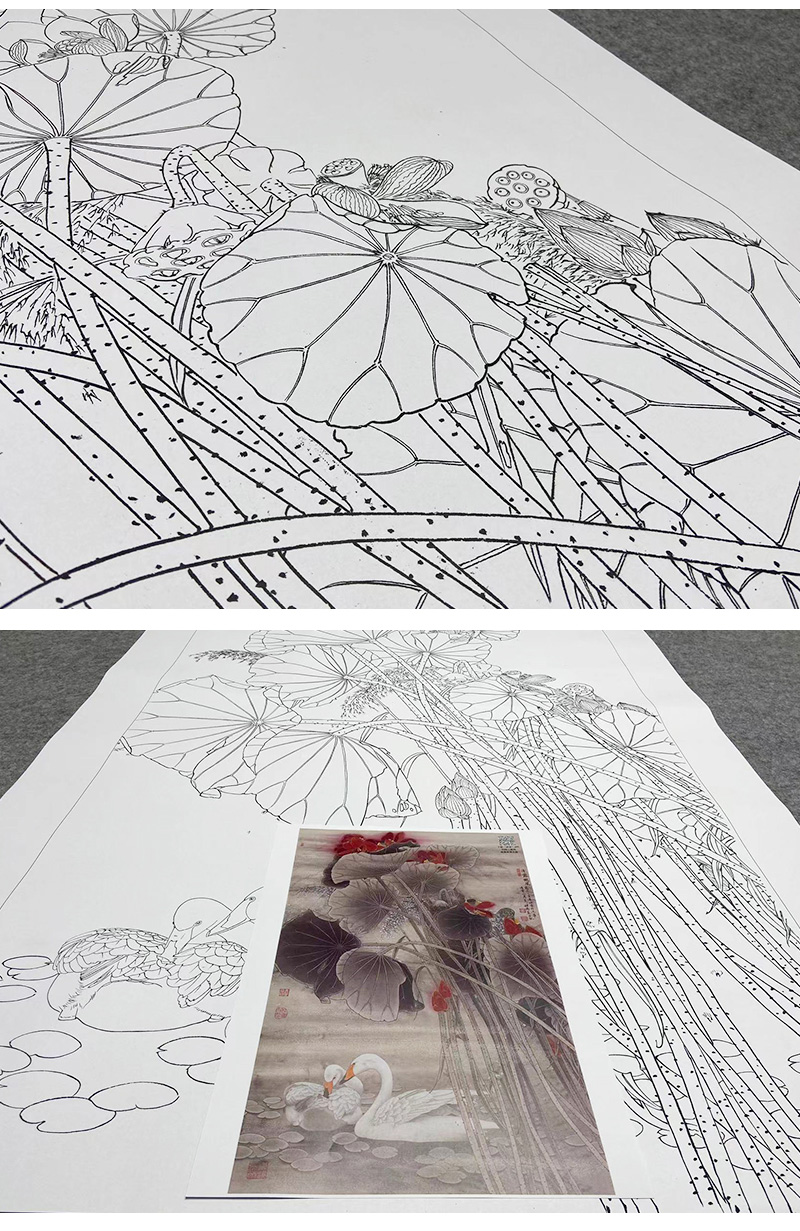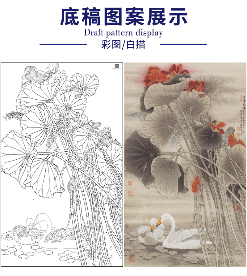 【大彩图】窦绅卿工笔画白描底稿《清露微风》荷花临摹勾线花鸟线稿HN12