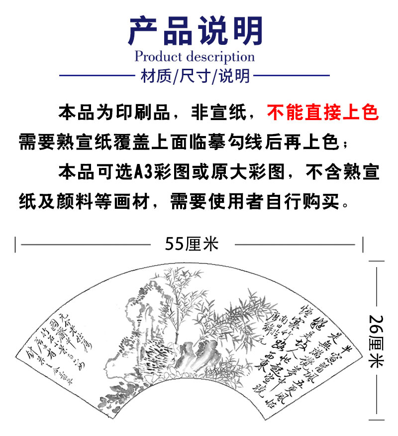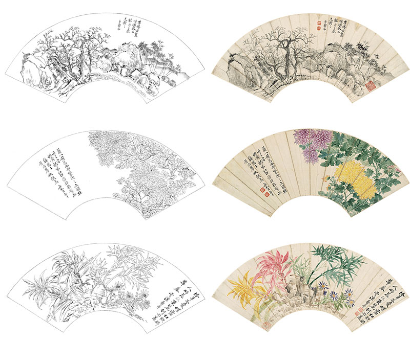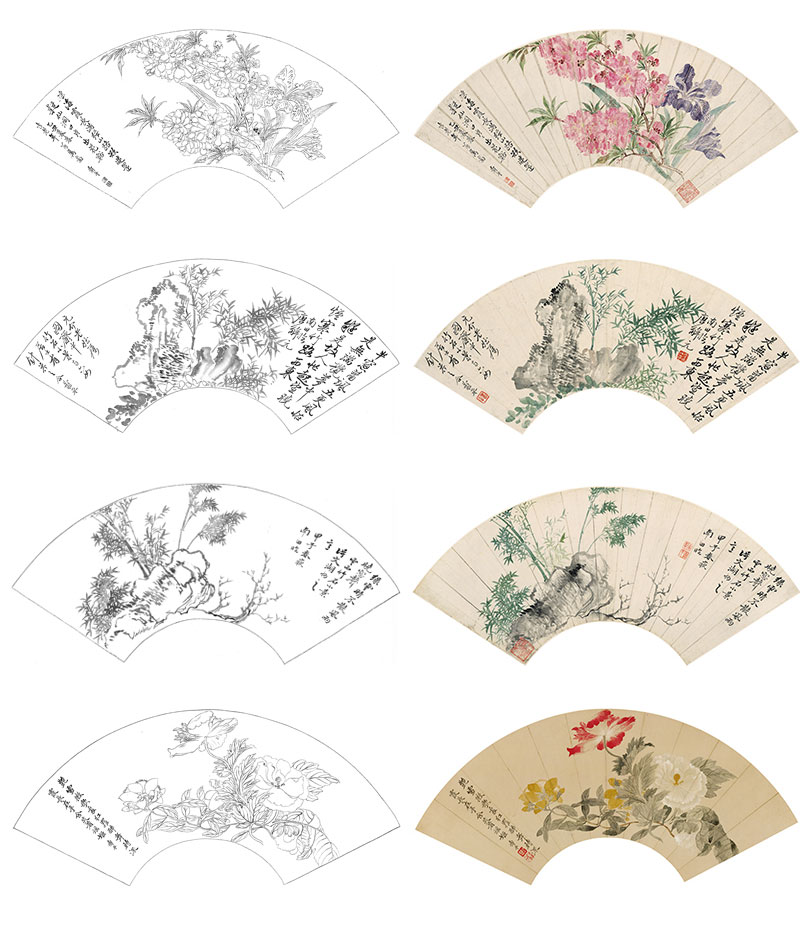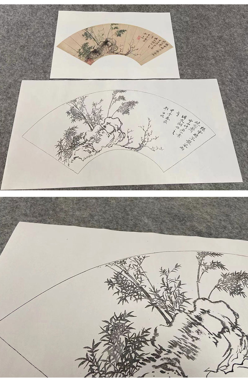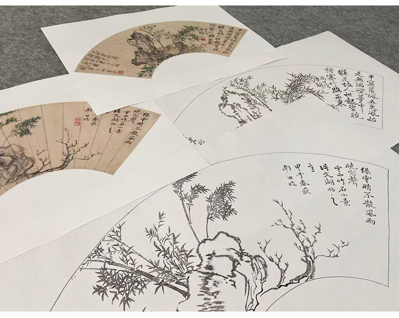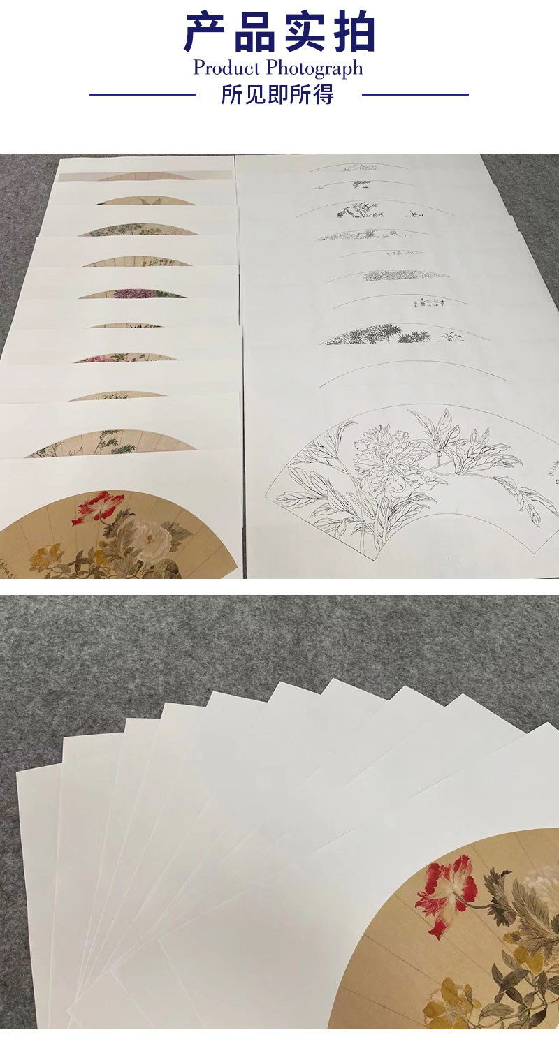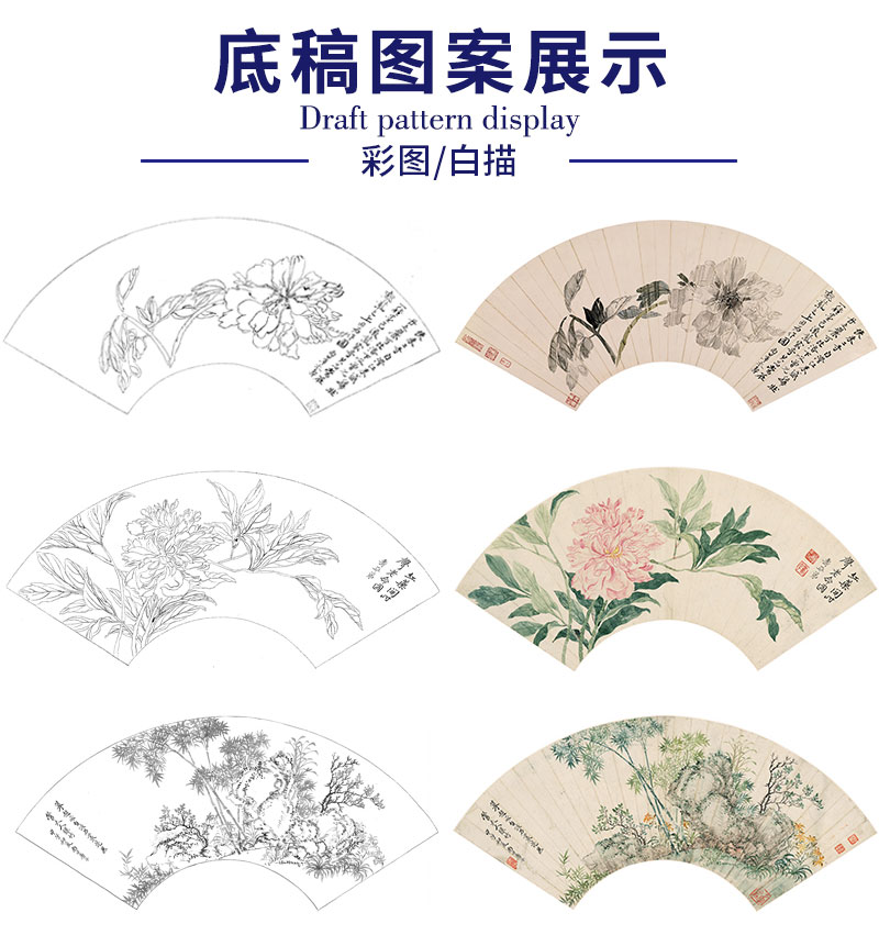 恽寿平工笔花鸟画白描底稿牡丹竹树扇面小品一套十幅册页初学者尺寸55*26厘米SP91