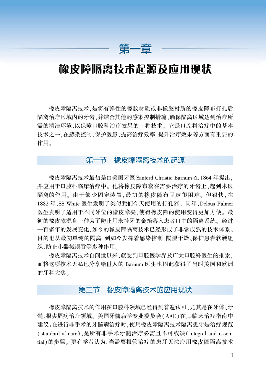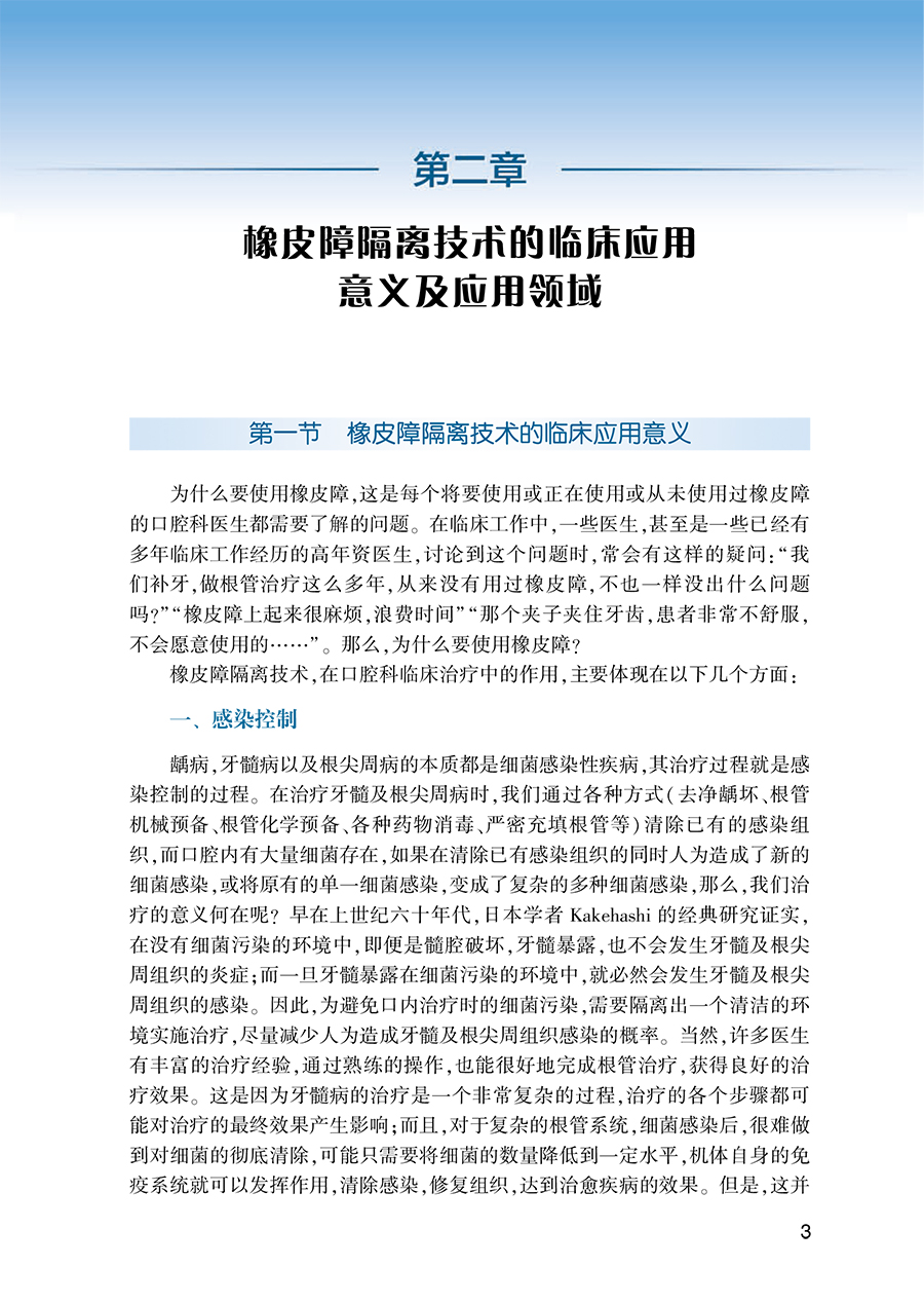 在我国发布的根管治疗以及复合树脂修复的临床技术指南中,也明确推荐在治疗中使用橡皮障隔离技术。由此可见,橡皮障隔离技术已经成为口腔临床治疗规范化作的重要保障和体现,并作为口腔临床医师必须掌握的基本技术,加入了口腔执业医师作考核当中。