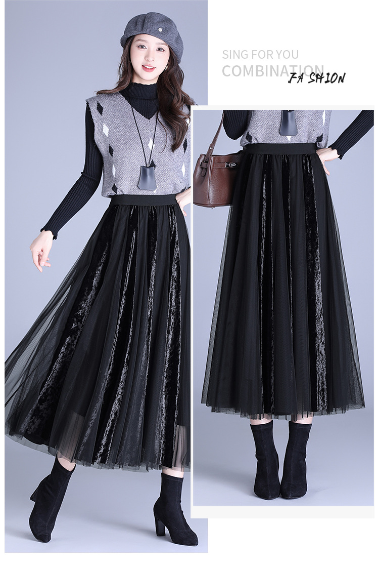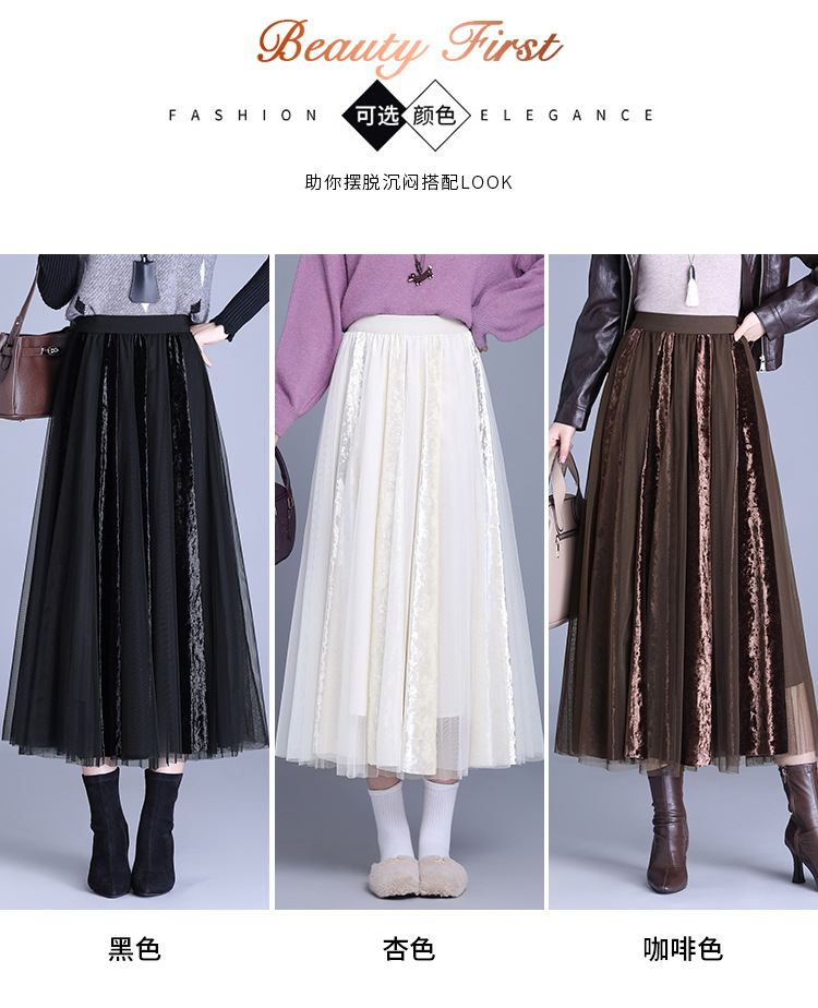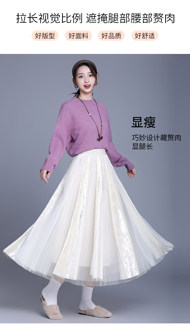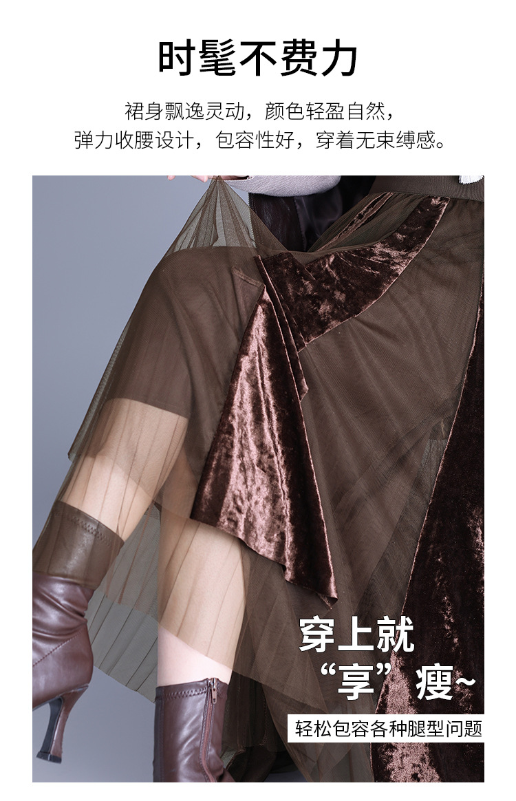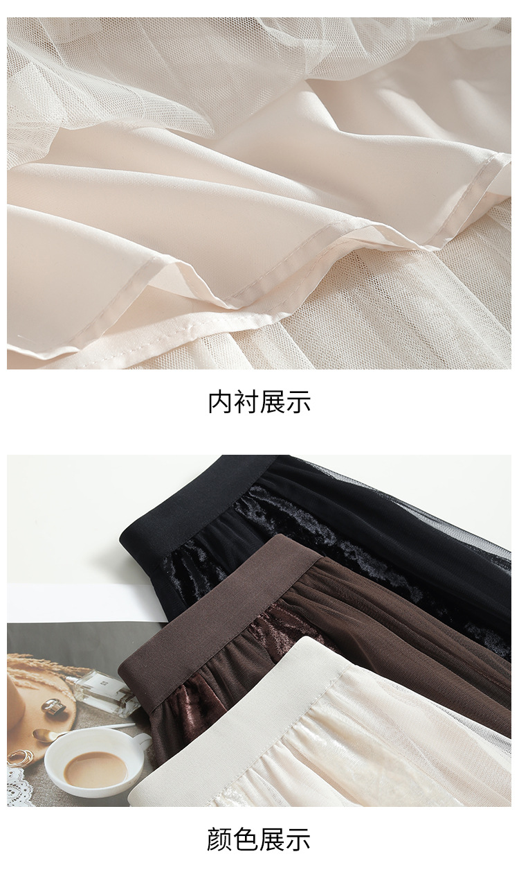 MYX百褶网纱大摆裙垂坠感休闲半身裙2025年秋季新款时尚高腰A字裙