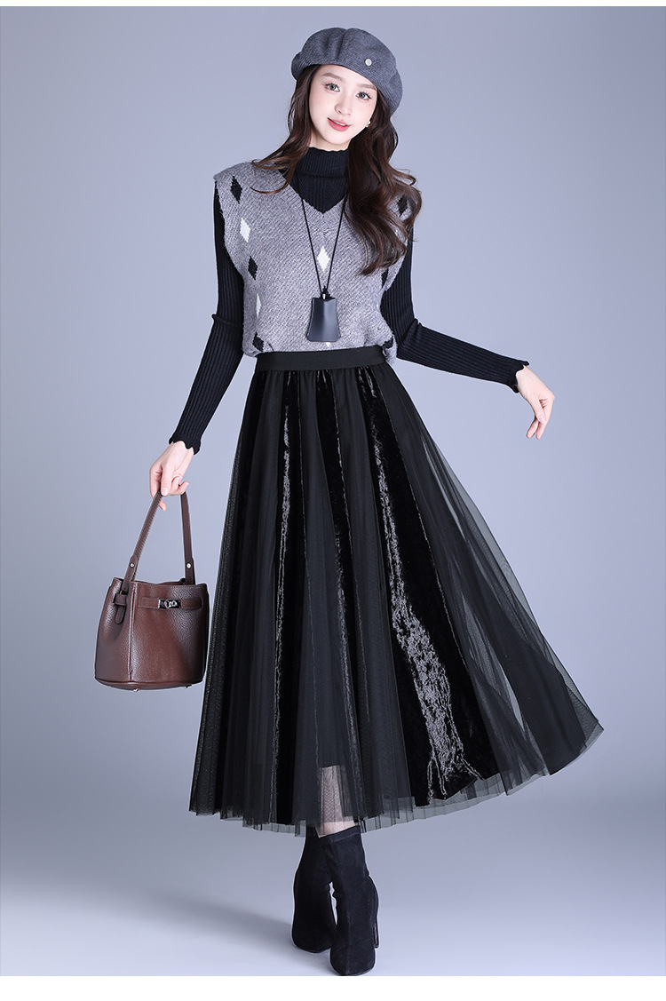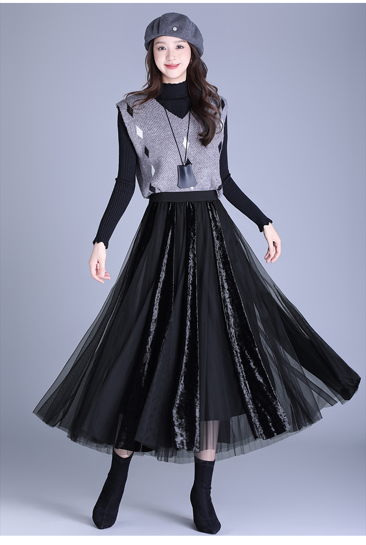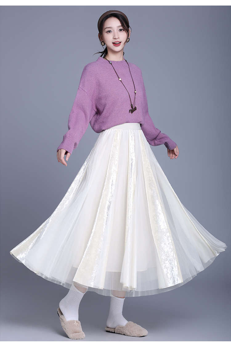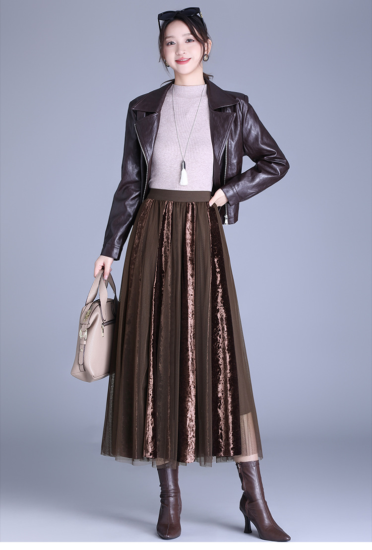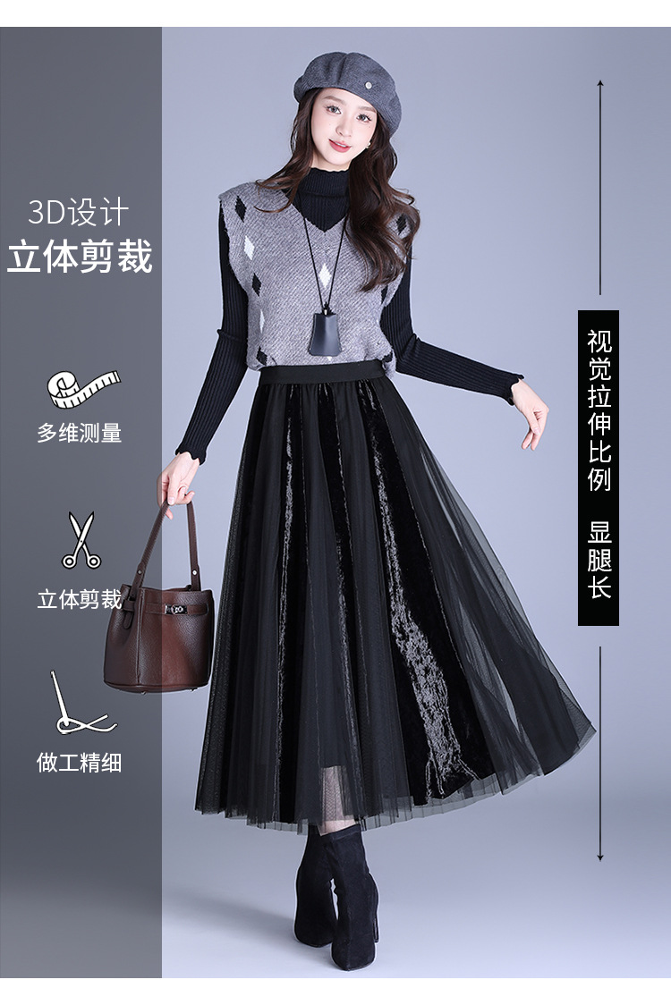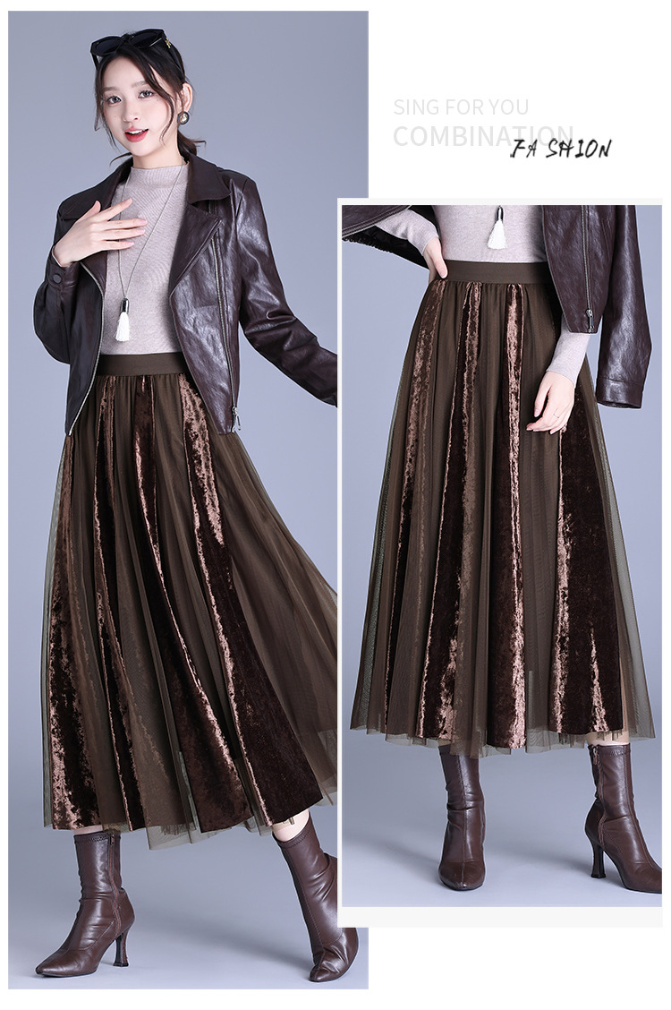 MYX百褶网纱大摆裙垂坠感休闲半身裙2025年秋季新款时尚高腰A字裙