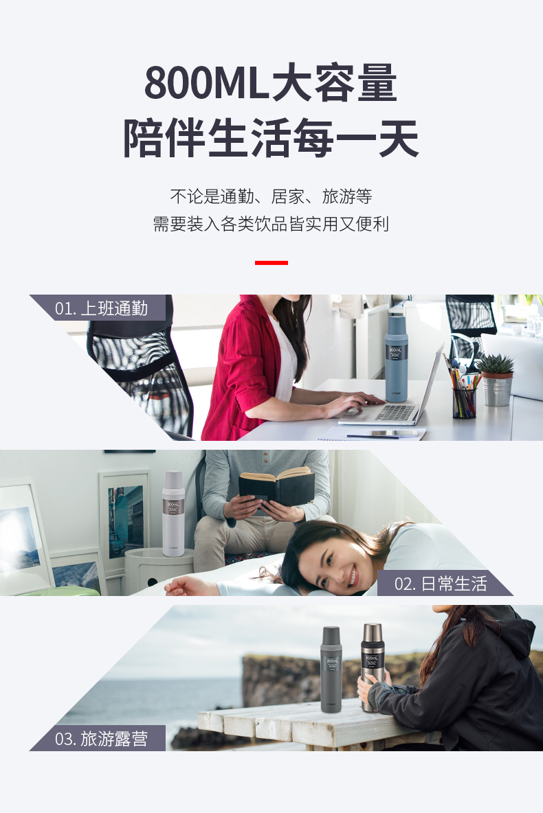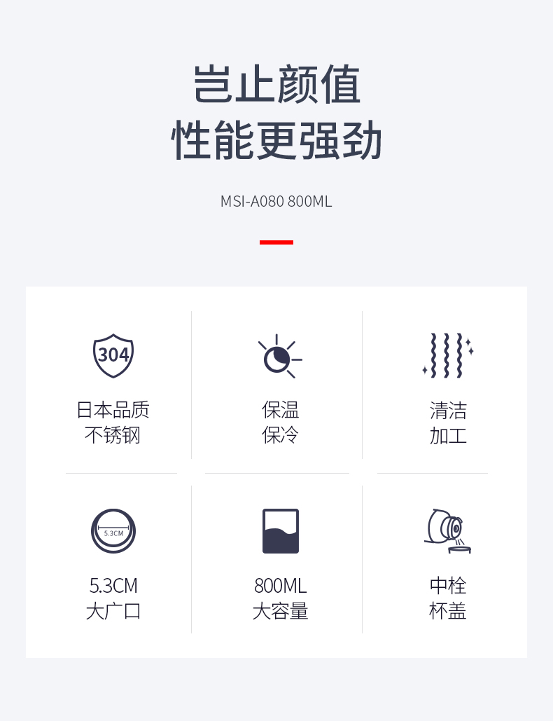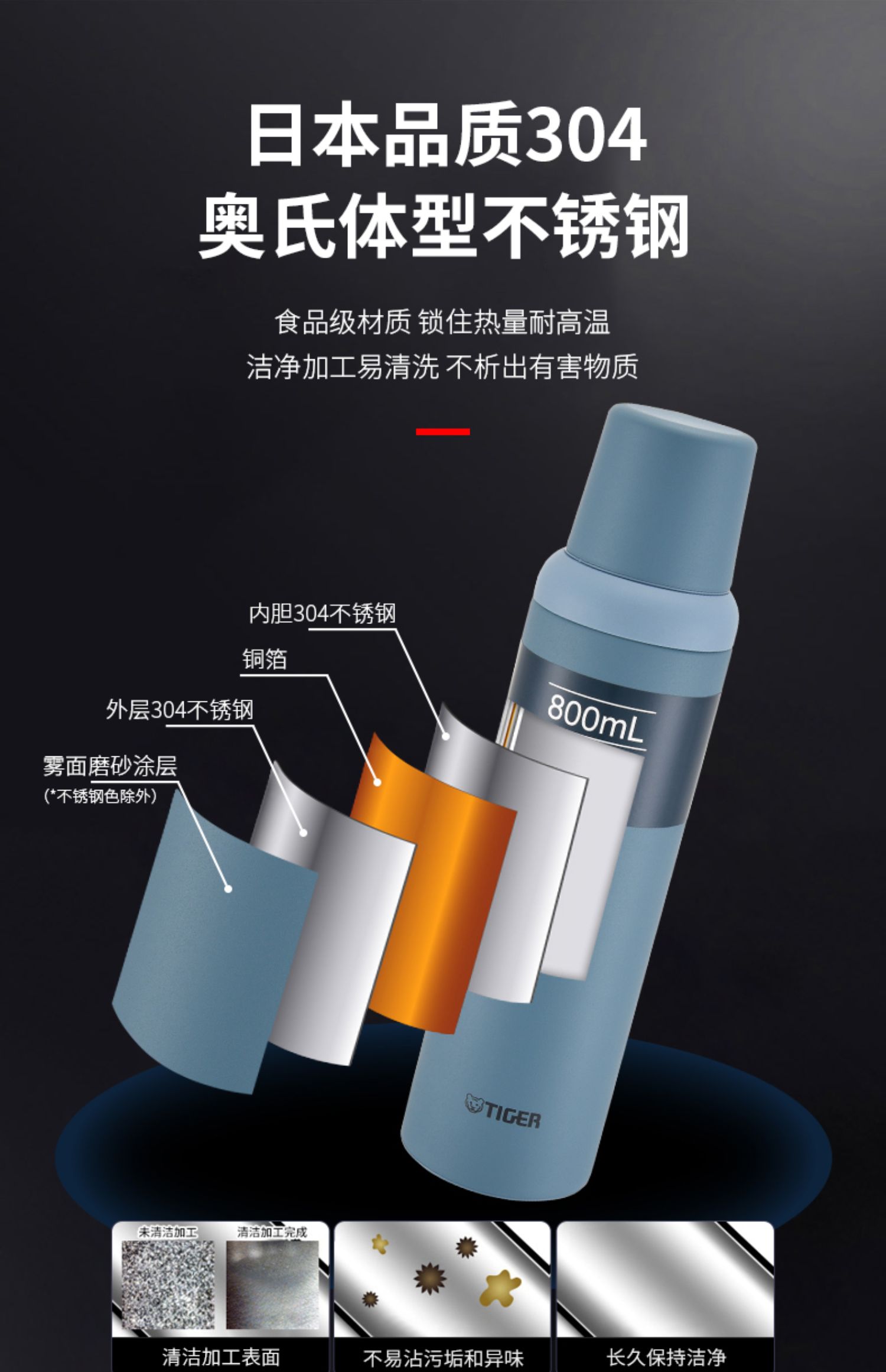 TIGER/虎牌 MSI-A080户外大容量杯盖型保温保冷不锈钢便携水杯800ML