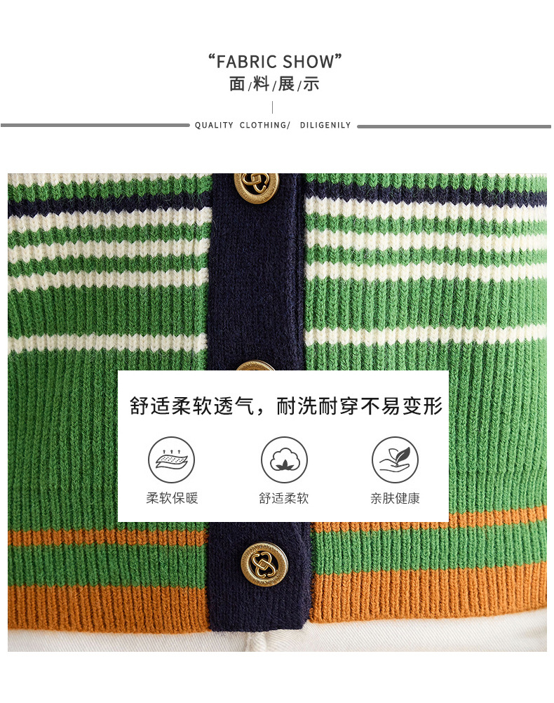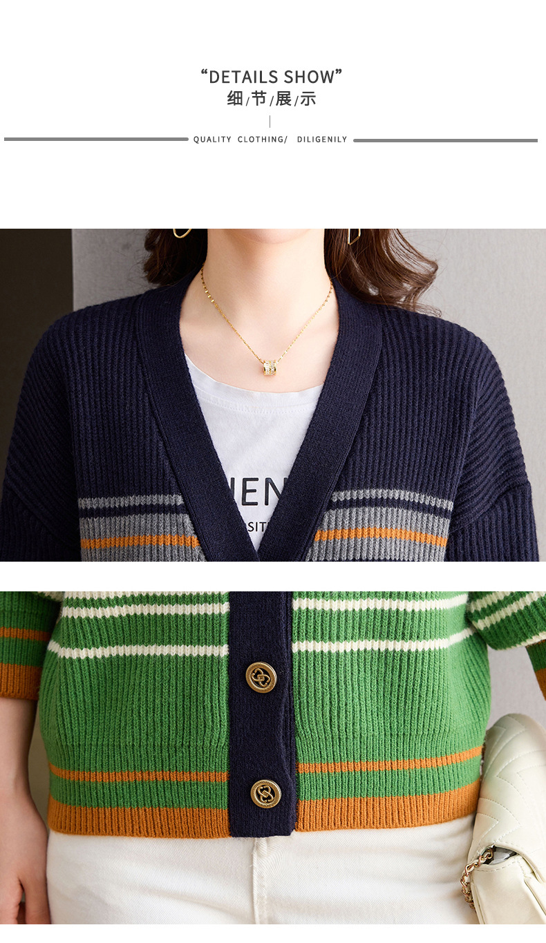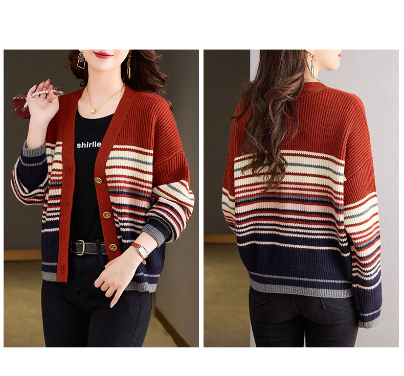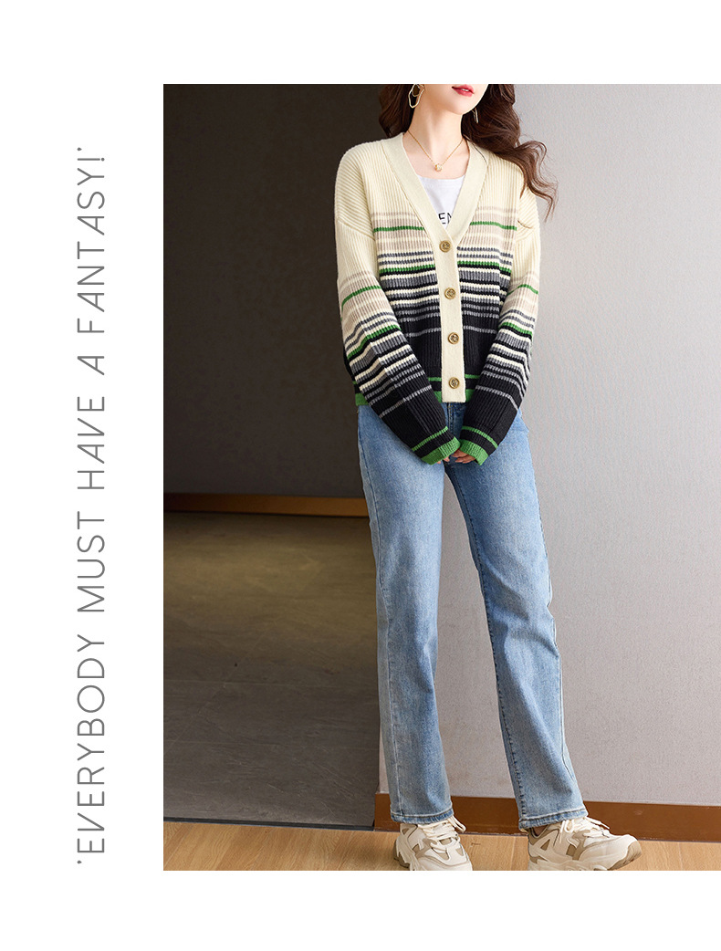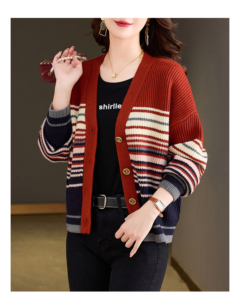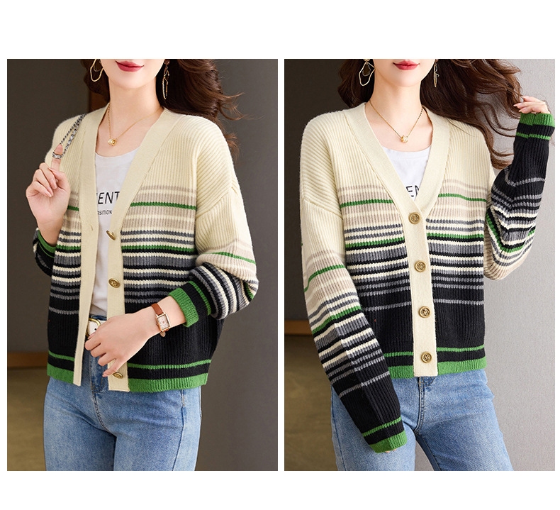 CC-26-8193 v领彩色条纹针织开衫长袖女春秋2024新款设计感拼接撞色毛衣外套