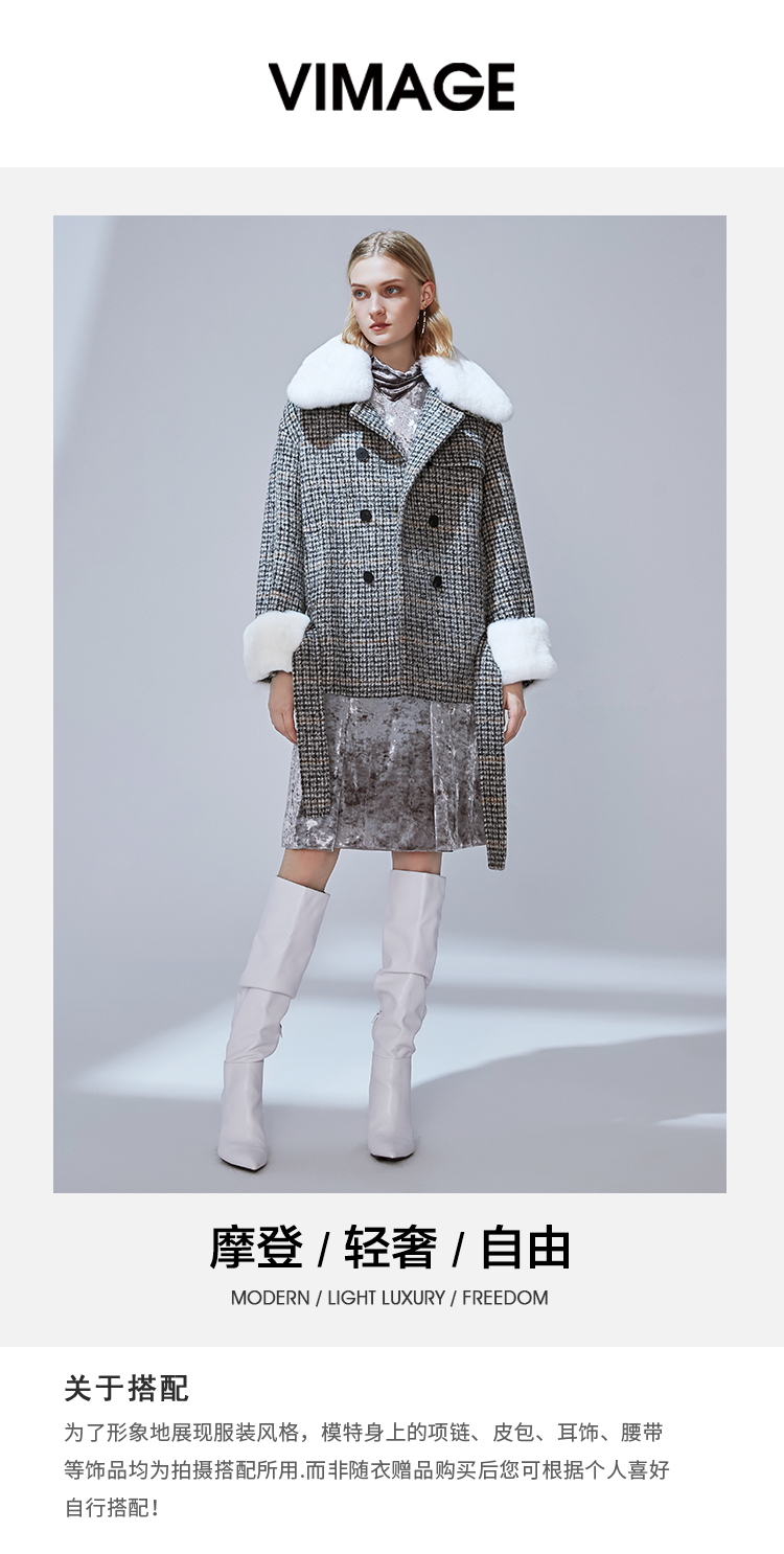 图不符下架-VIMAGE纬漫纪冬季新款保暖绵羊毛外套大衣V1414016
