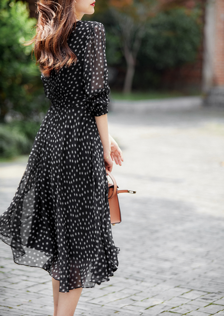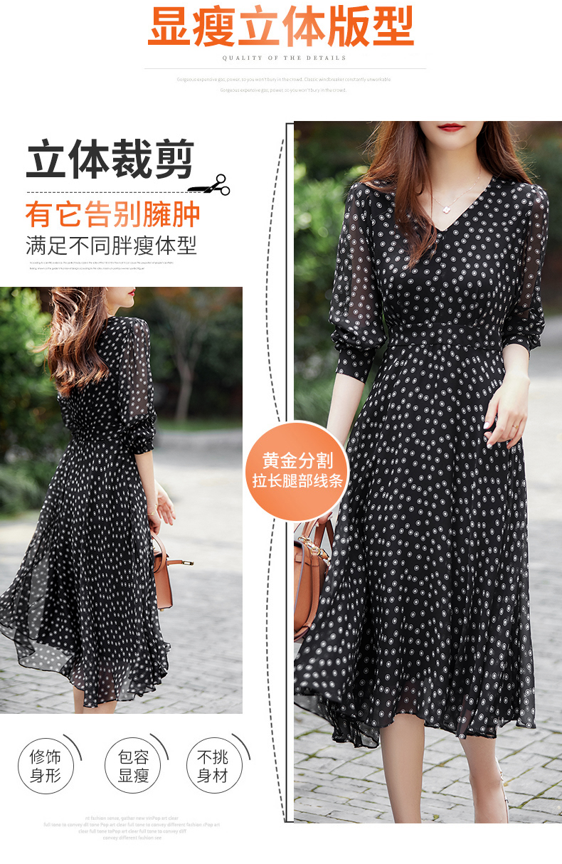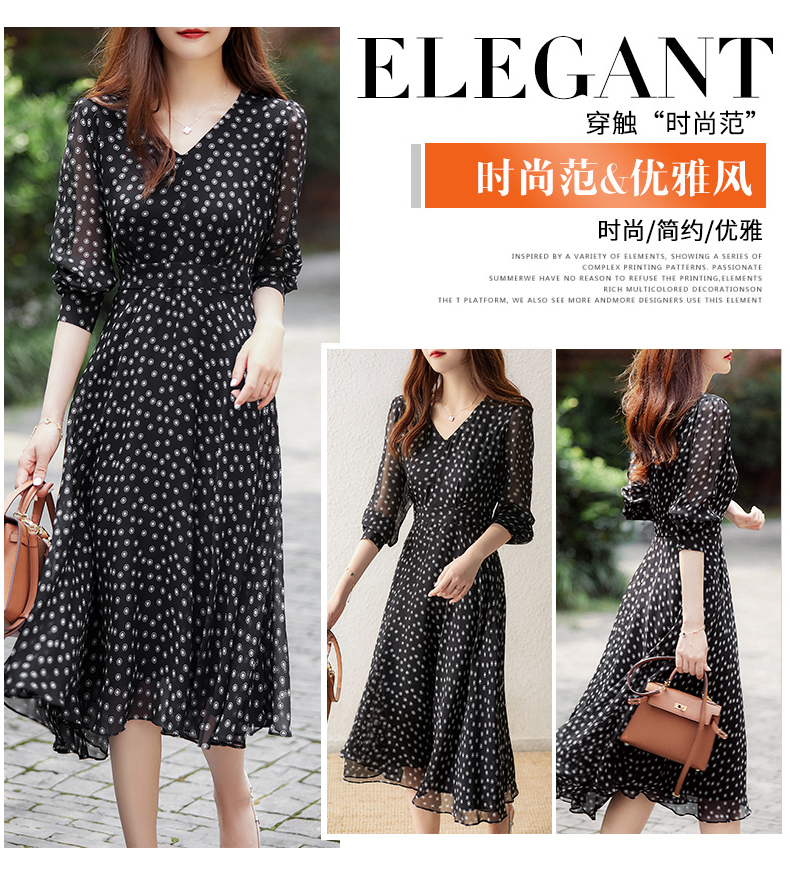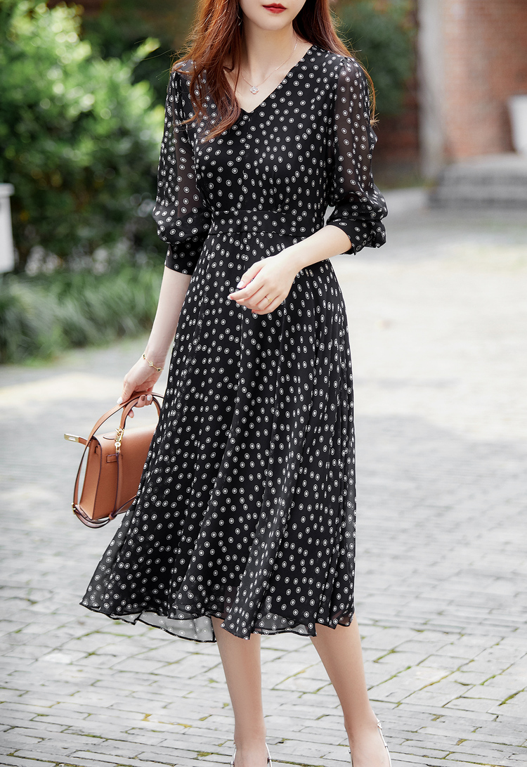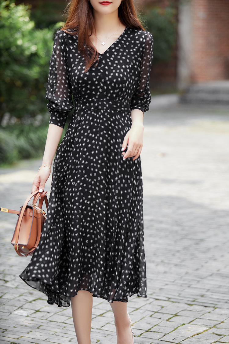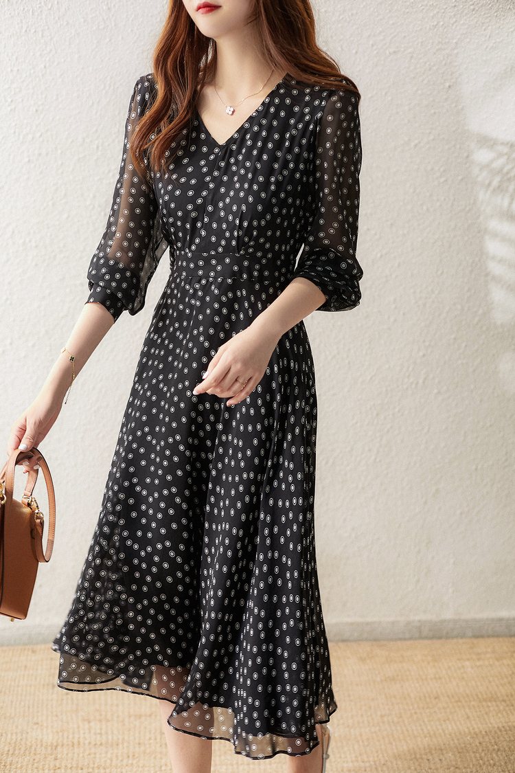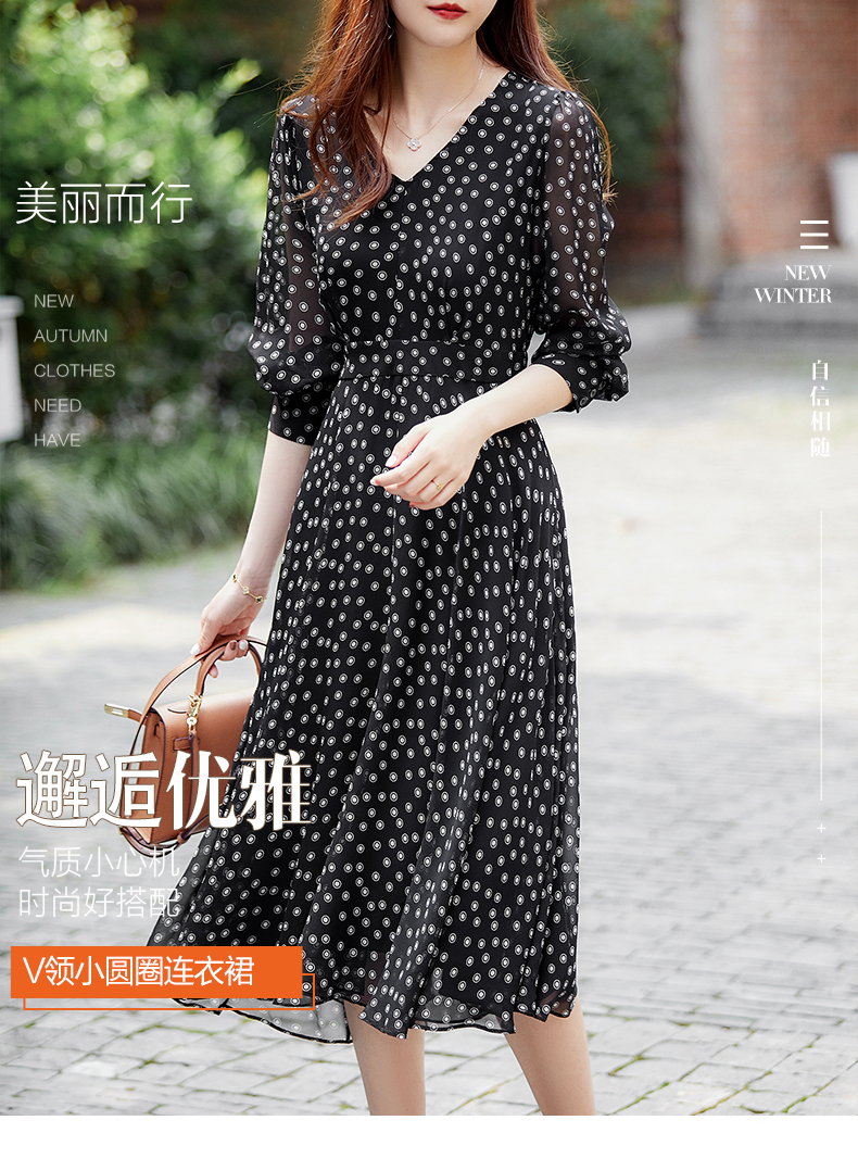 优雅到骨子里气质V领小圆圈连衣裙 YX2249