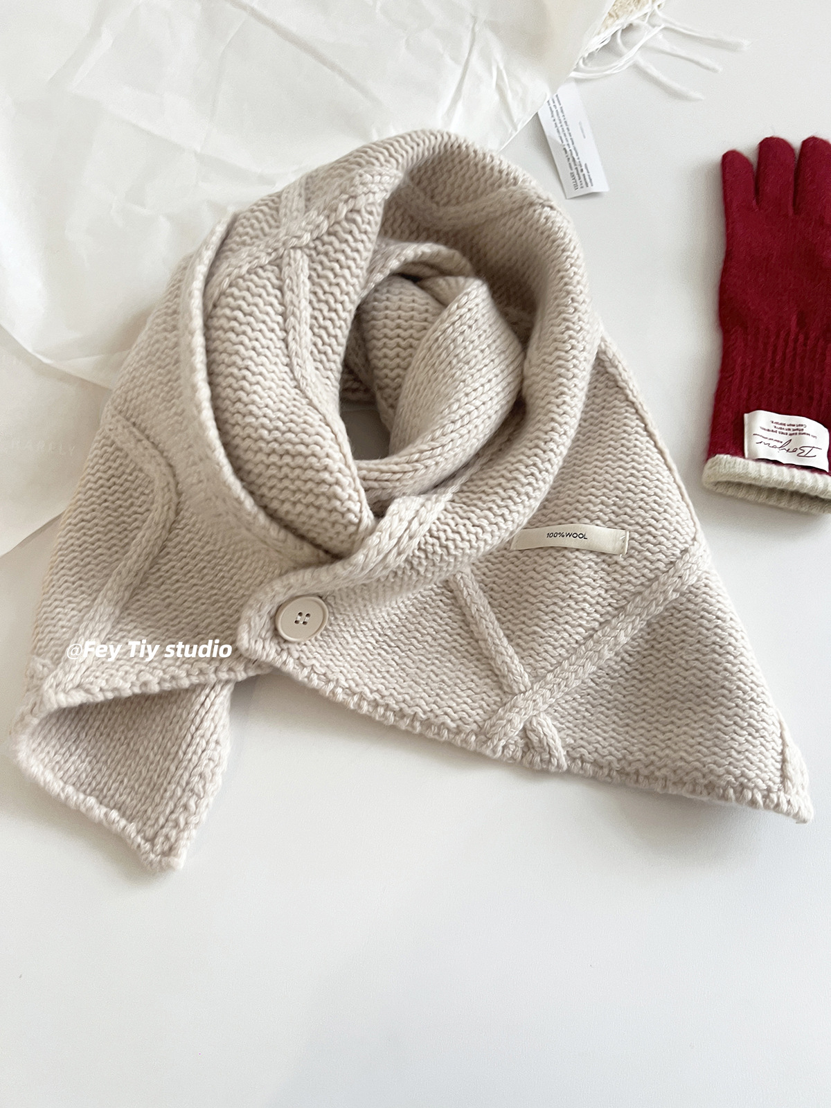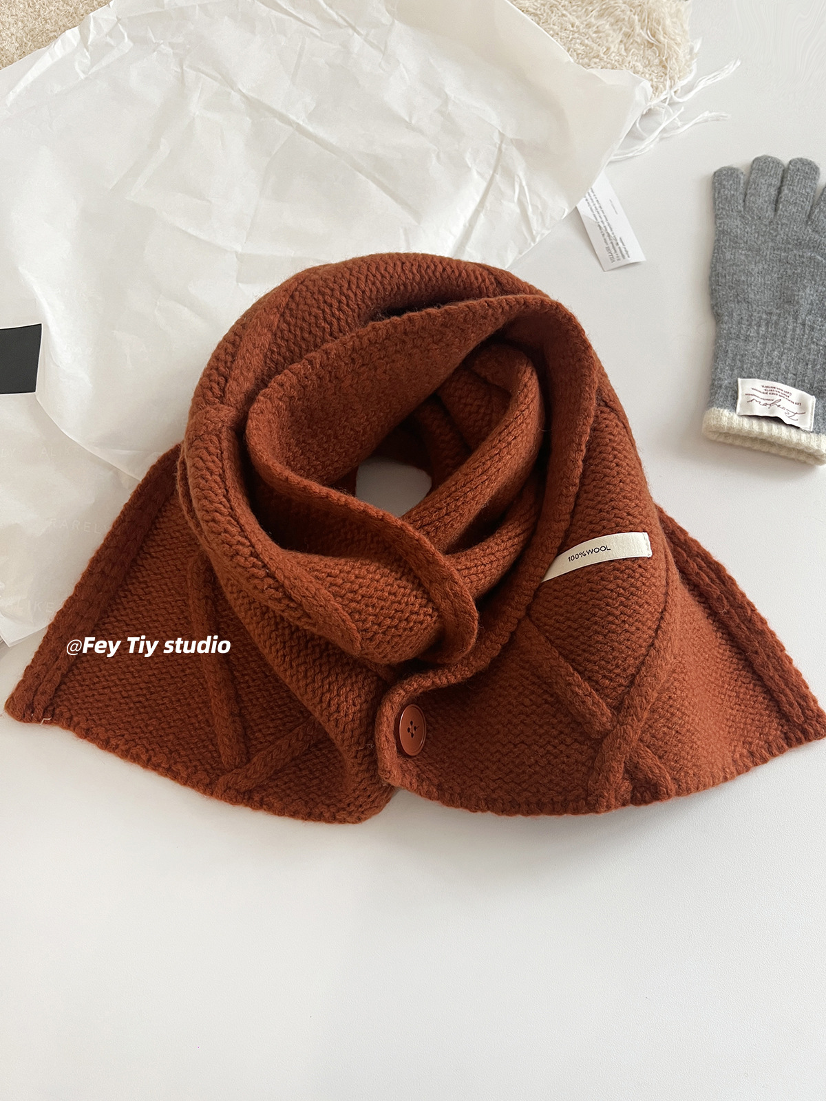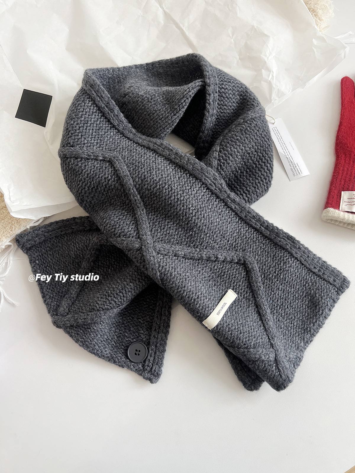 丁摩 100%澳洲羊毛 纽扣围巾脖套披肩两用冬季新款保暖送礼5ZF-12152