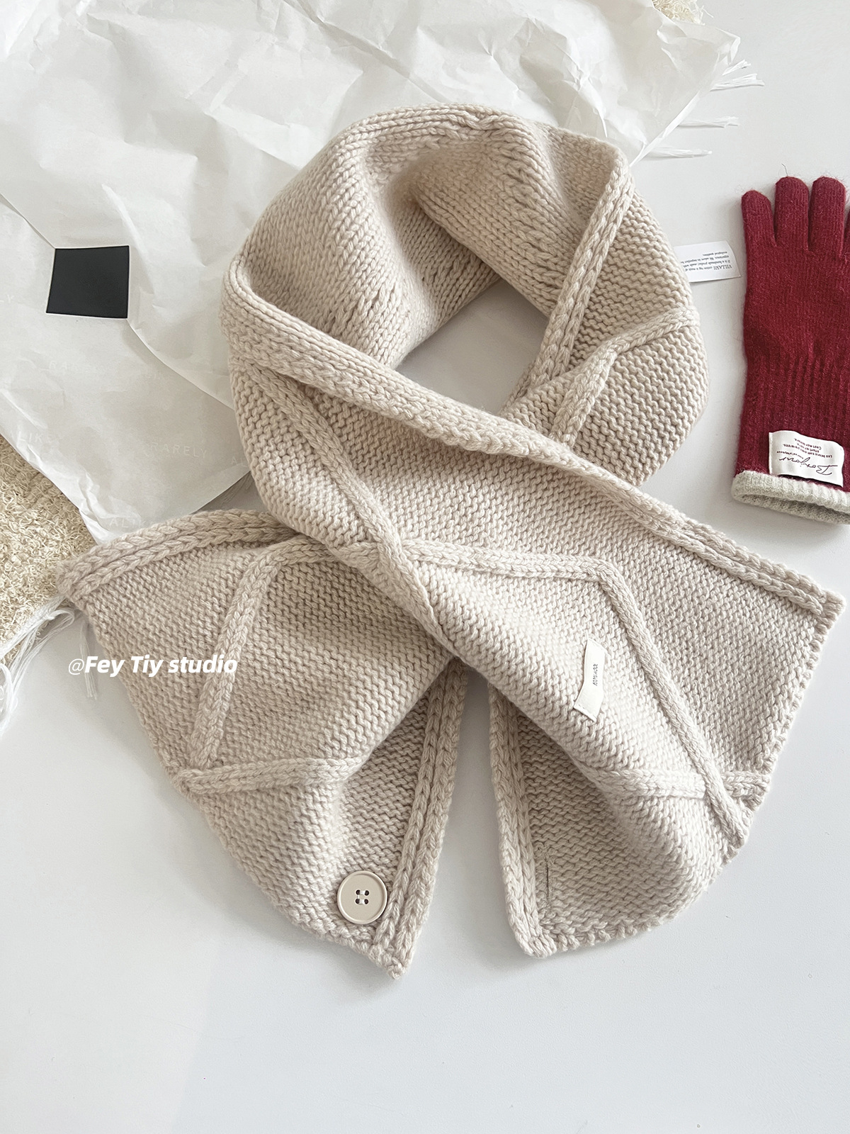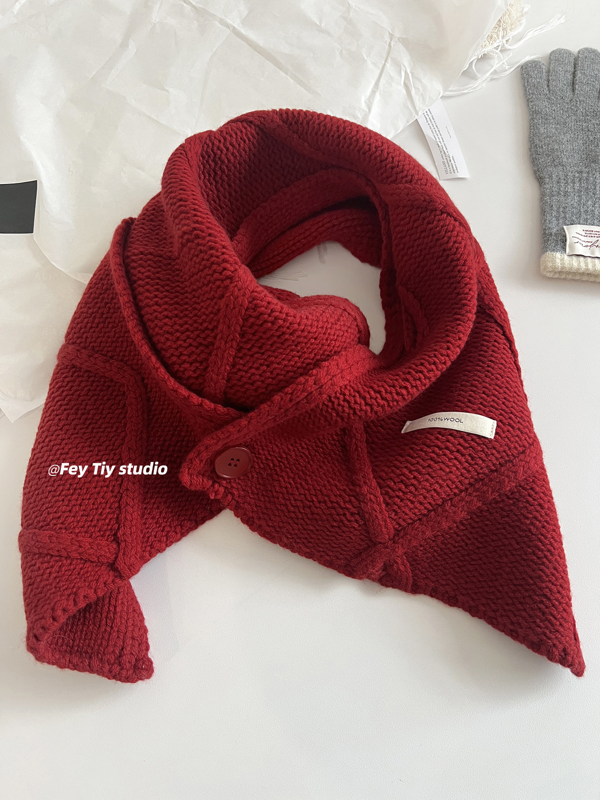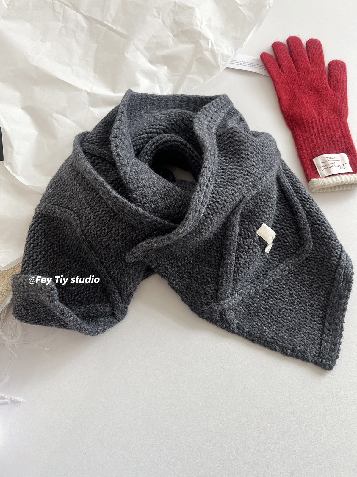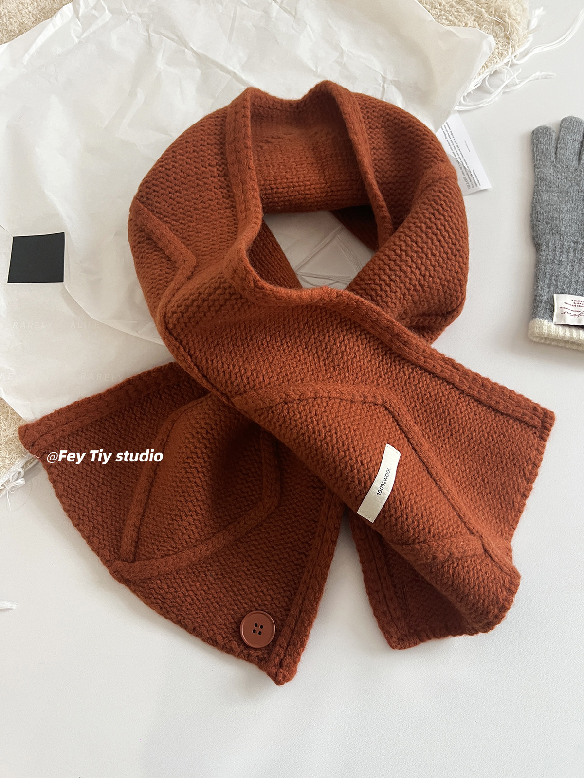 丁摩 100%澳洲羊毛 纽扣围巾脖套披肩两用冬季新款保暖送礼5ZF-12152