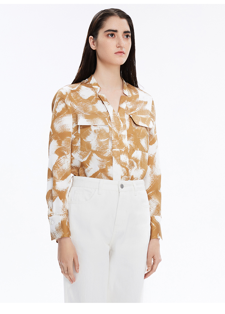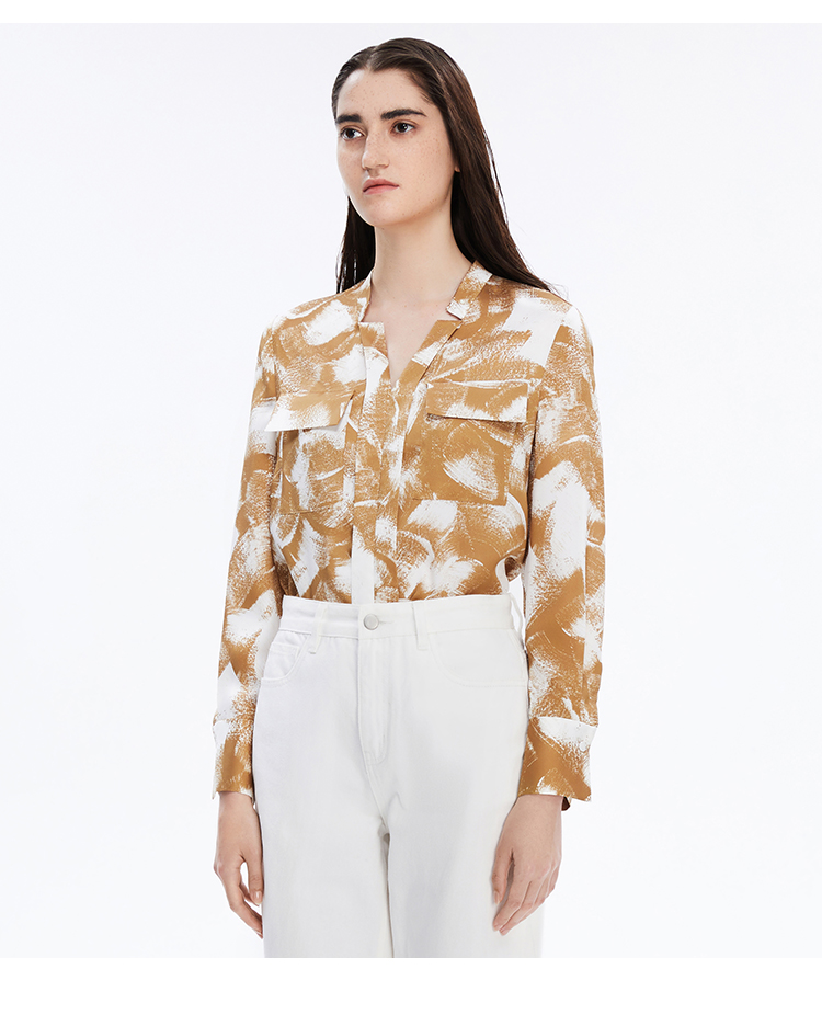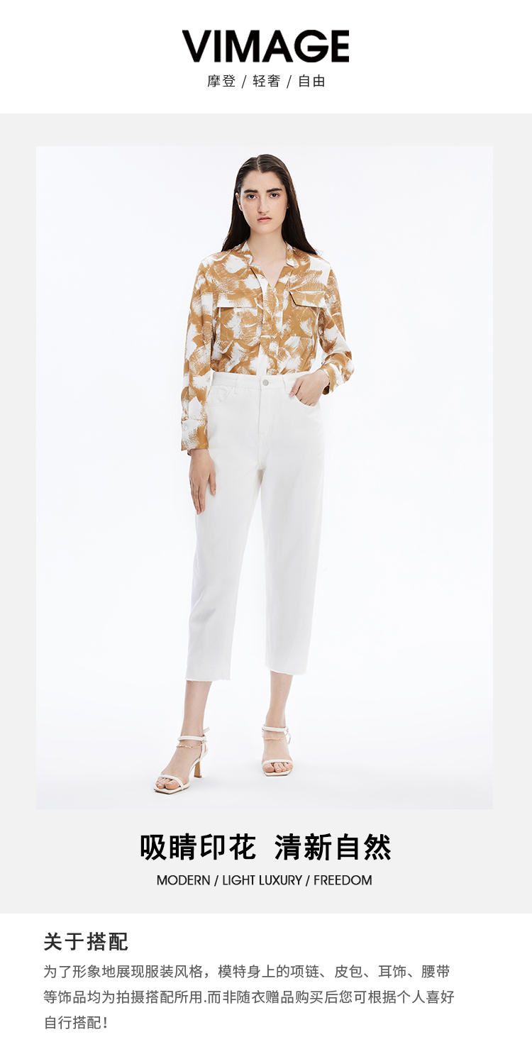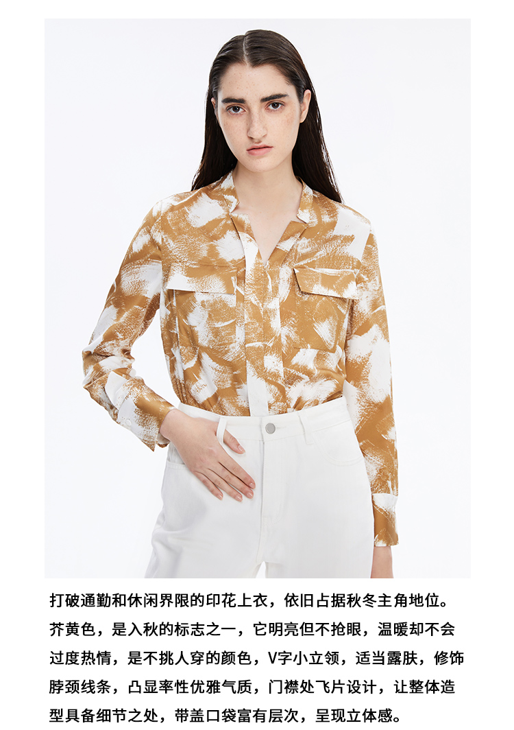 VIMAGE纬漫纪秋季新款时尚通勤印花飘带衬衫女上衣V1613212