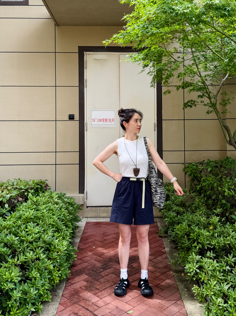 简直量身定制般合适!面料采用了棉混纺,抗皱性好,不易起球,shi分耐用,能较好的满足消费者需求,松紧的带搭扣的腰头,贴合腰腹曲线,穿着舒适度非常高,两侧做了插袋,能置物能凹造型,安全感满满~裤长及至大腿中的位置,干练利落,又足够遮大腿的肉肉,一条随性自在的棉质短裤,带你玩转春夏秋三季,日常居家通勤都能穿~