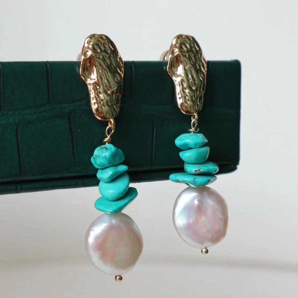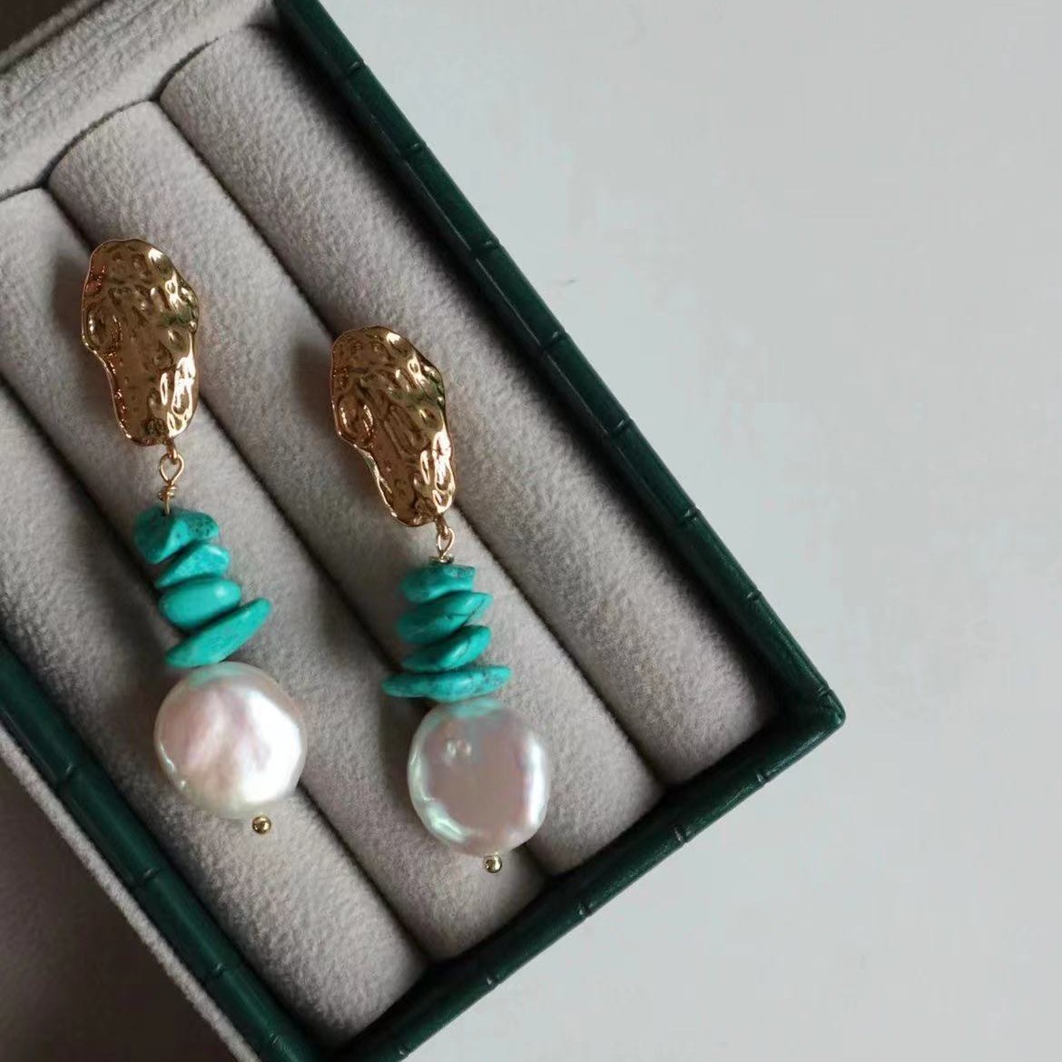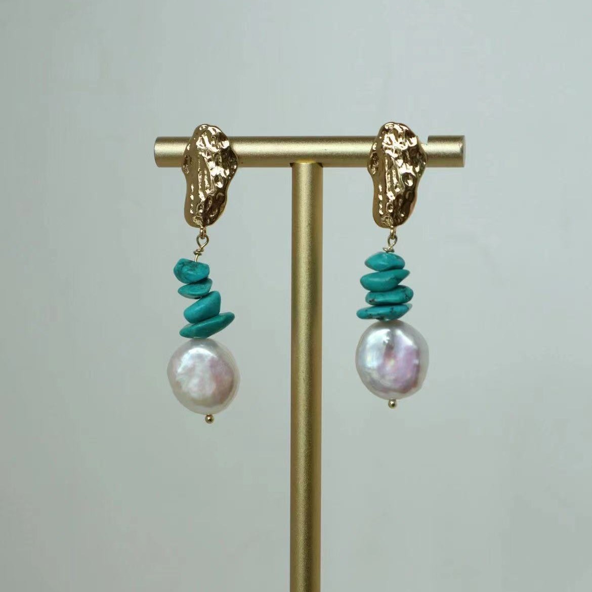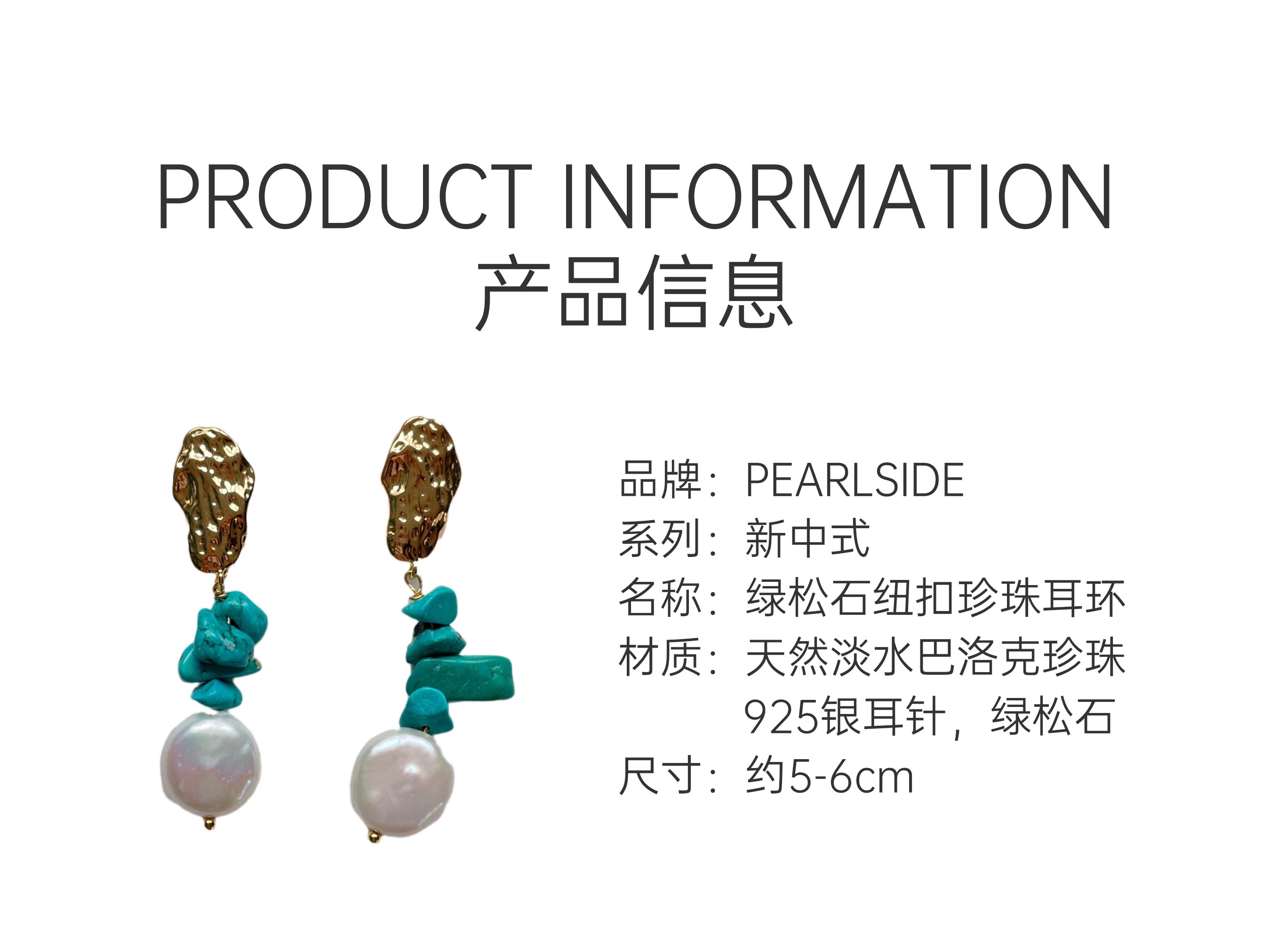 pearlside 【新中式】绿松石纽扣珍珠耳饰