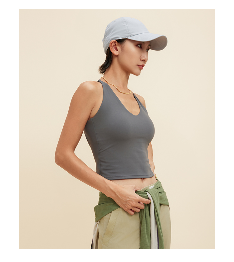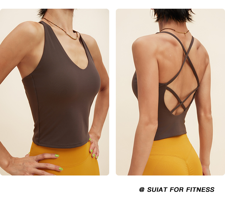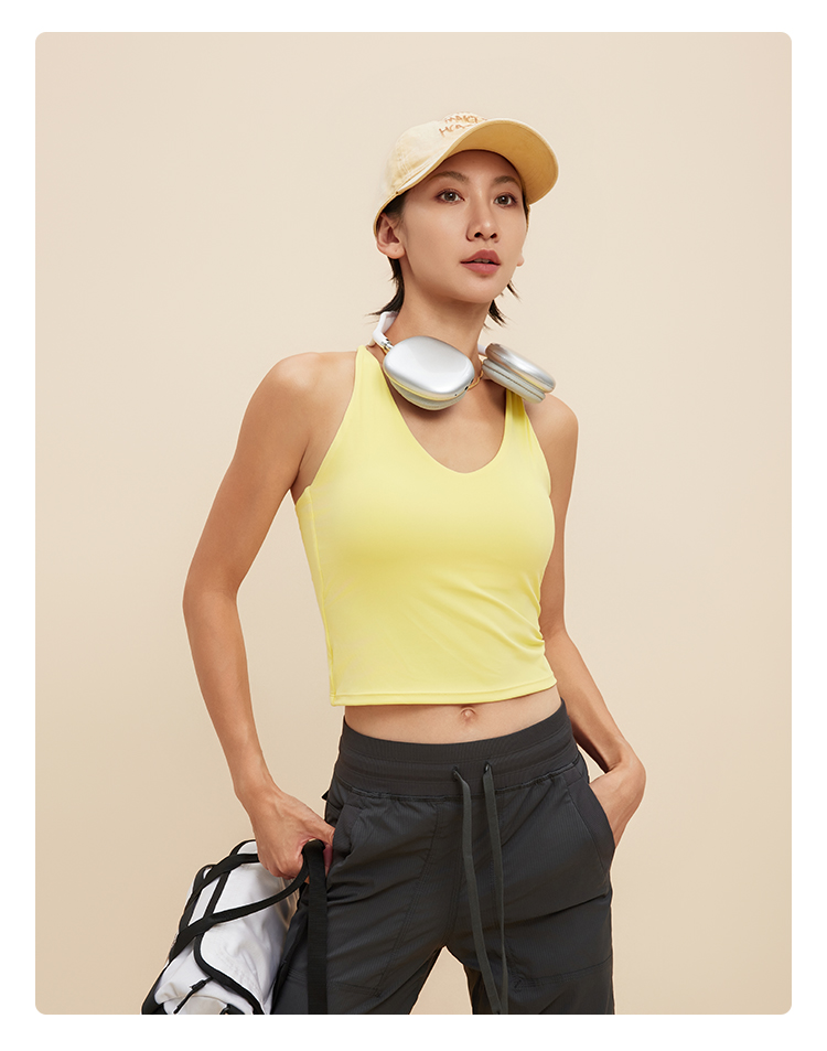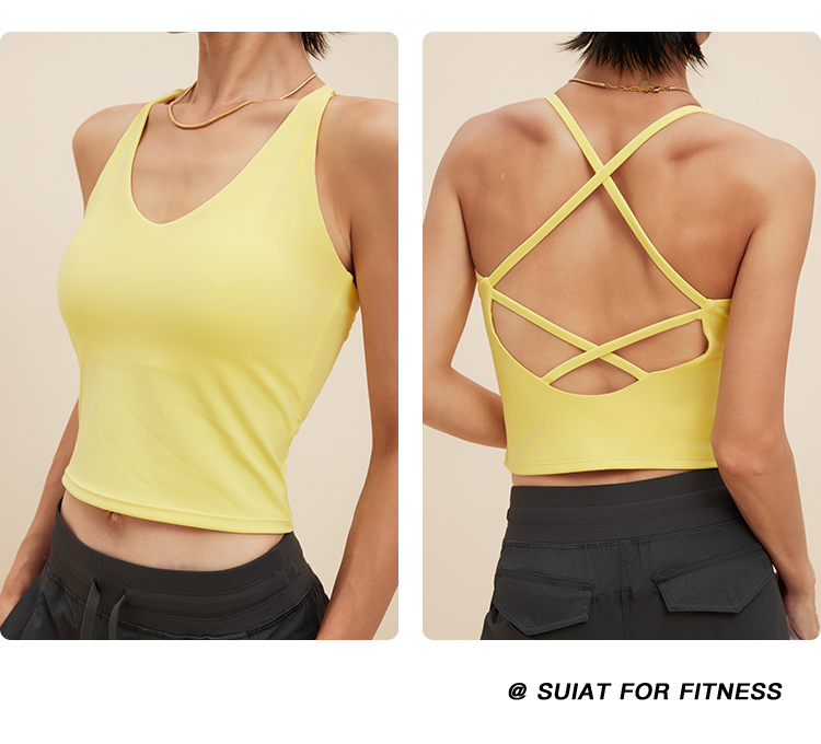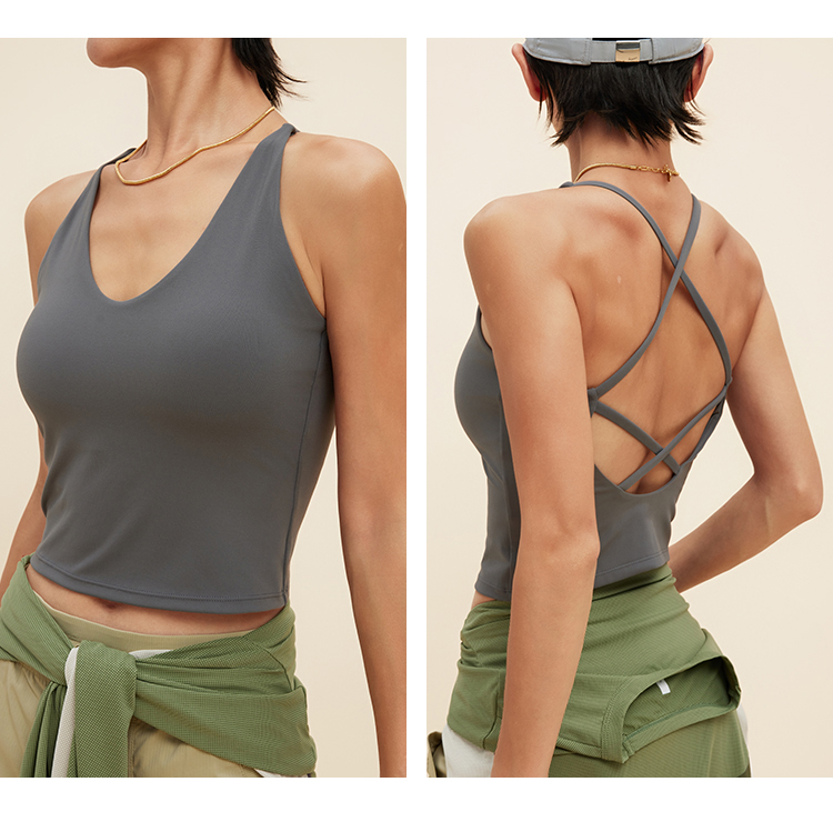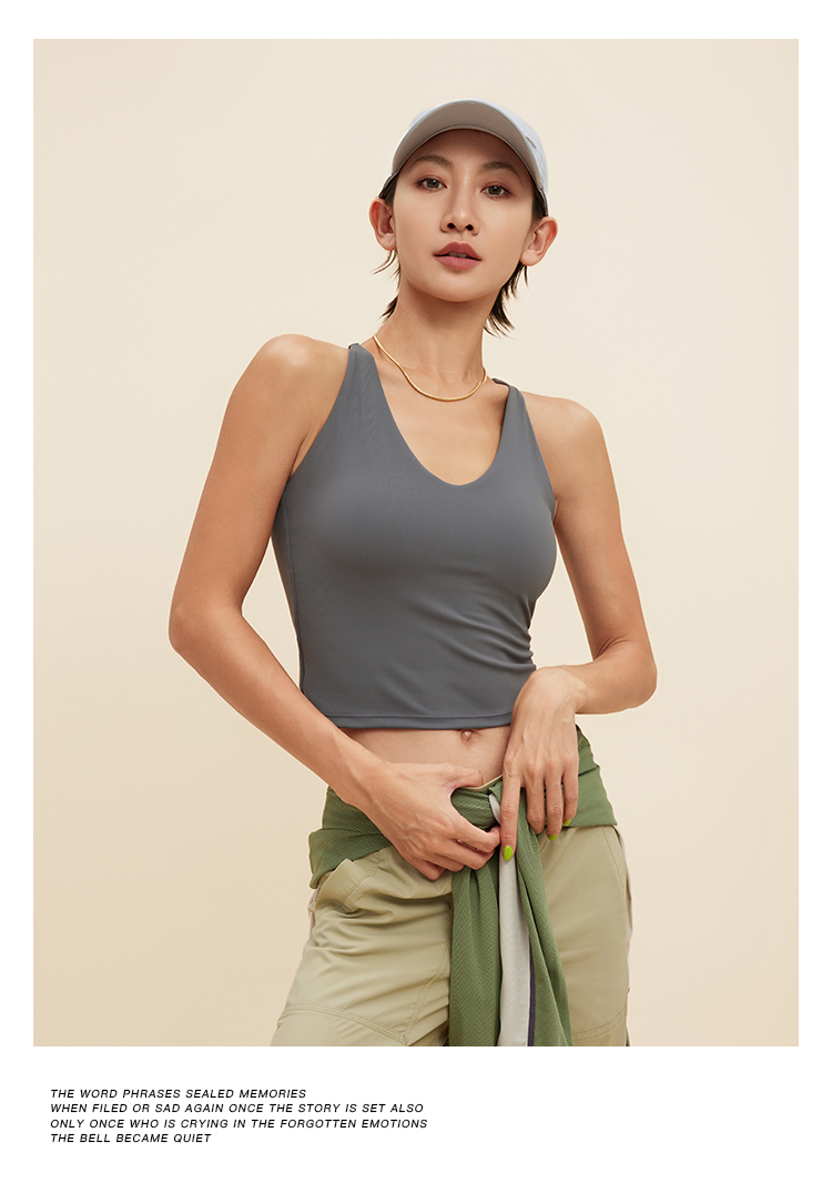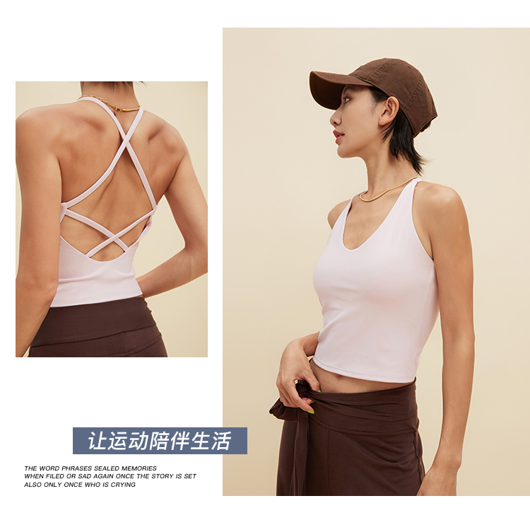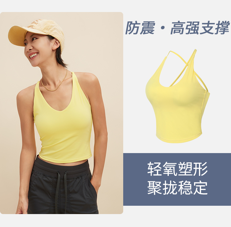 跃牌【颜值有理】系列 交叉美背运动瑜伽背心V腰抽褶健身长裤运动训练跑步瑜伽套装YB1253+YK1221