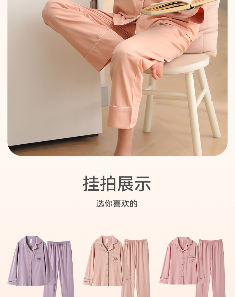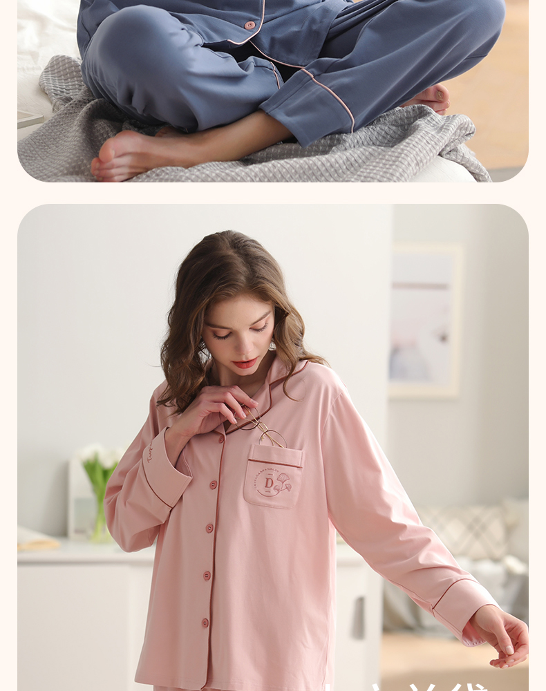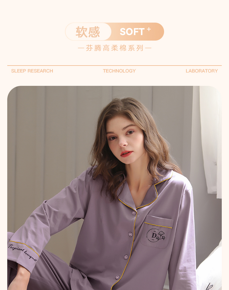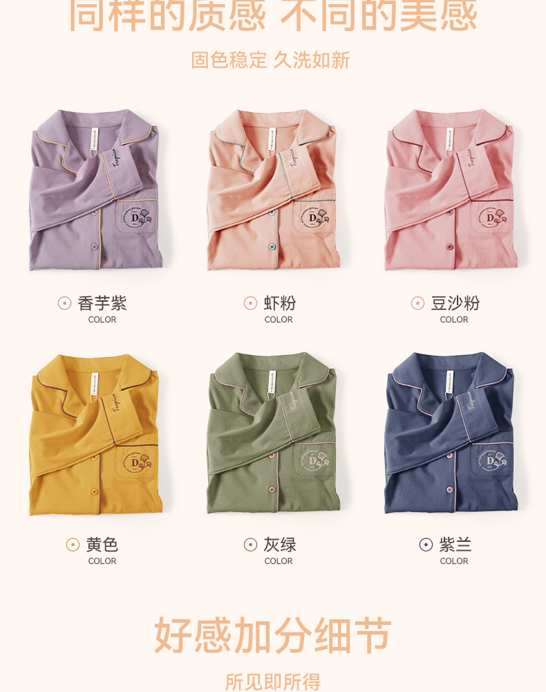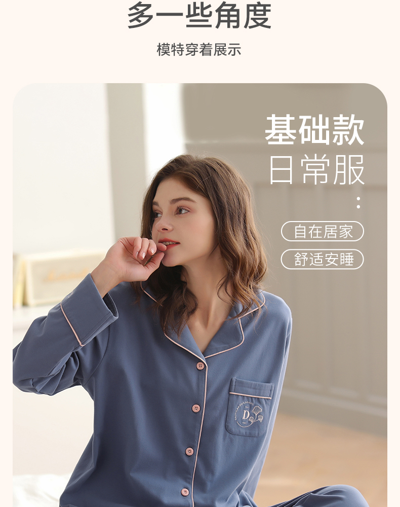 芬腾睡衣全棉休闲春秋季情侣开衫男女纯色棉长袖长裤家居服套装