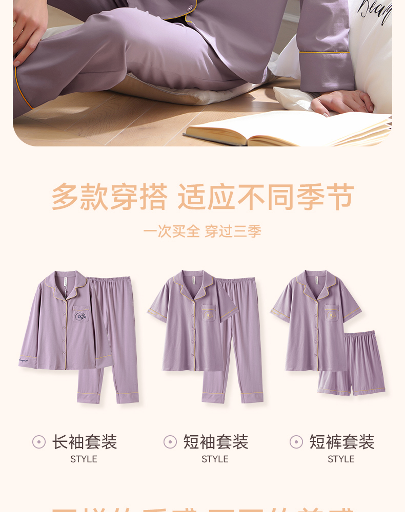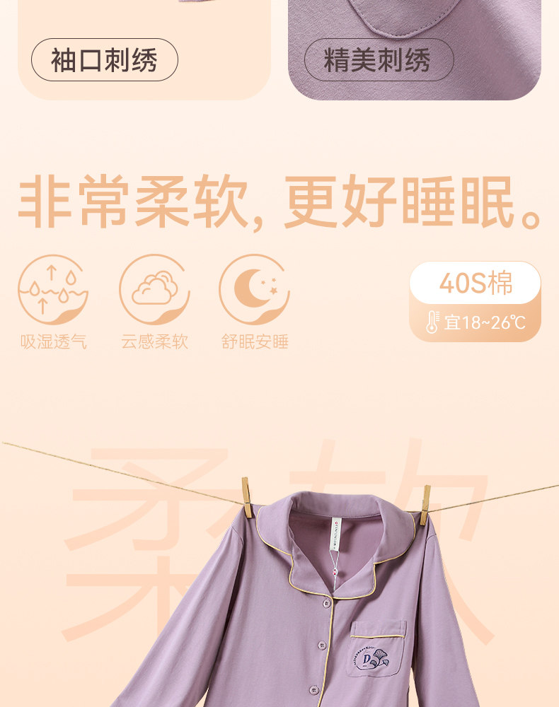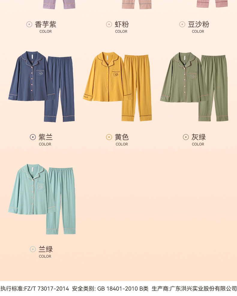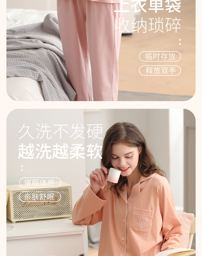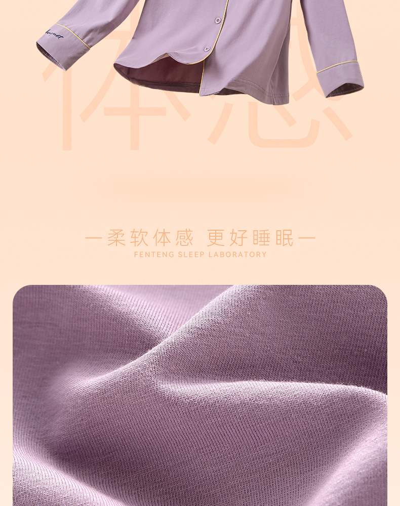 芬腾睡衣全棉休闲春秋季情侣开衫男女纯色棉长袖长裤家居服套装