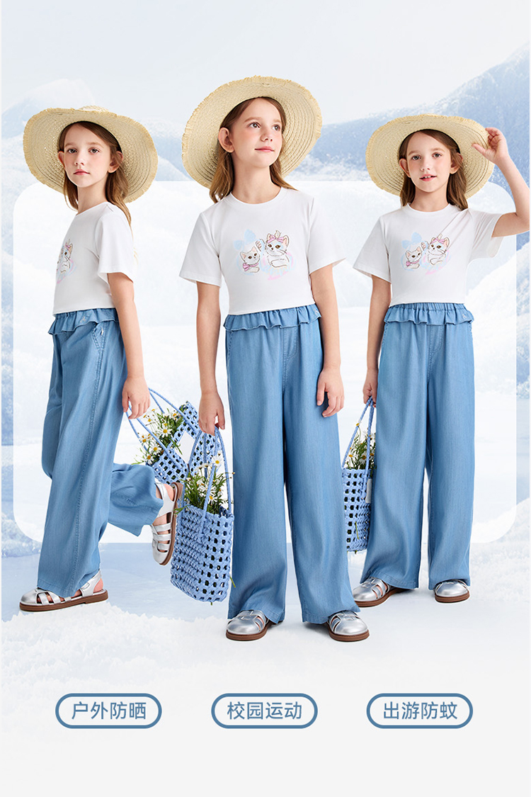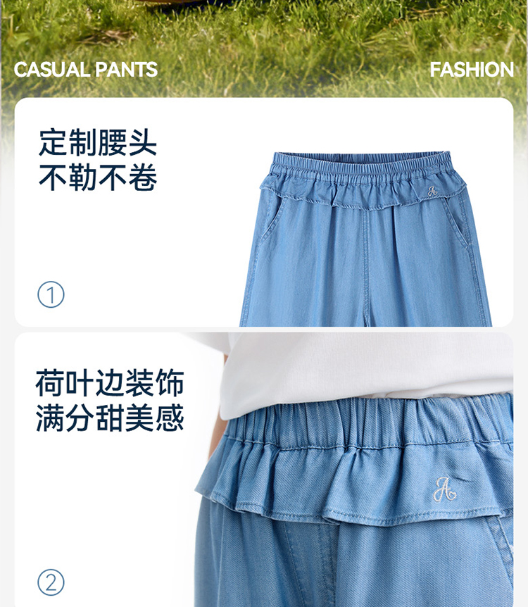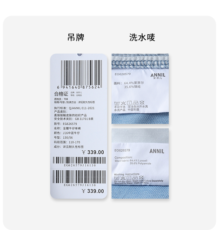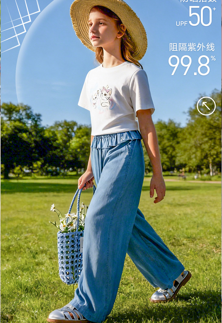 女童全腰牛仔单裤夏季新款安奈儿童装EG626579