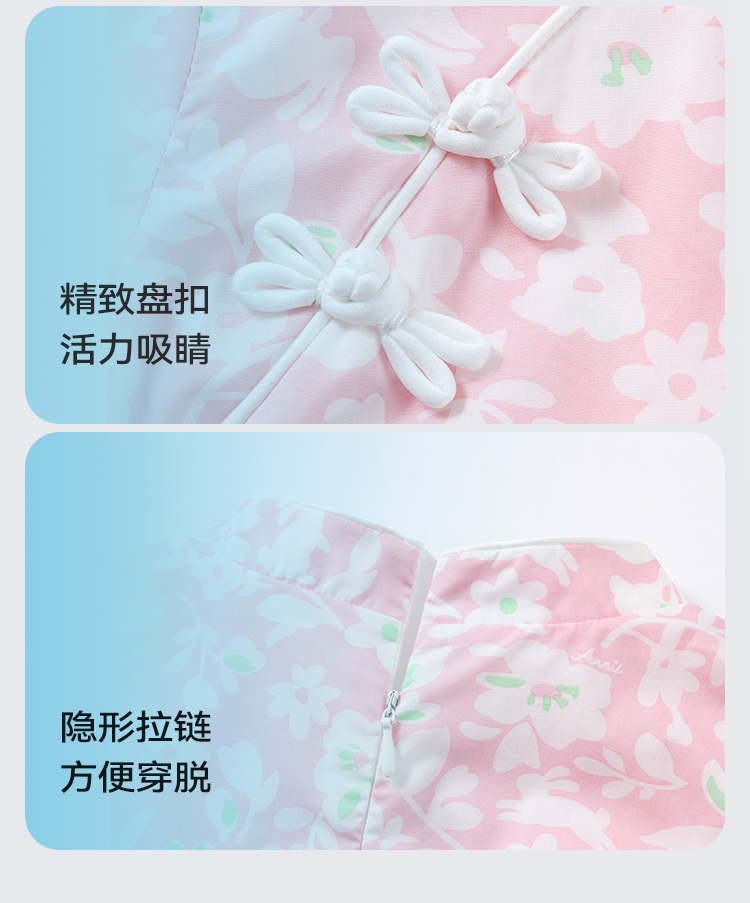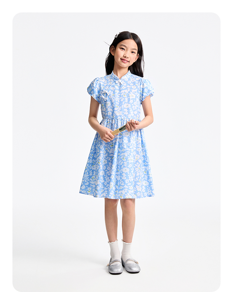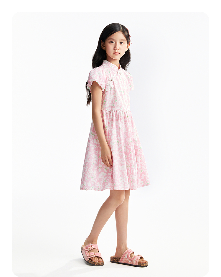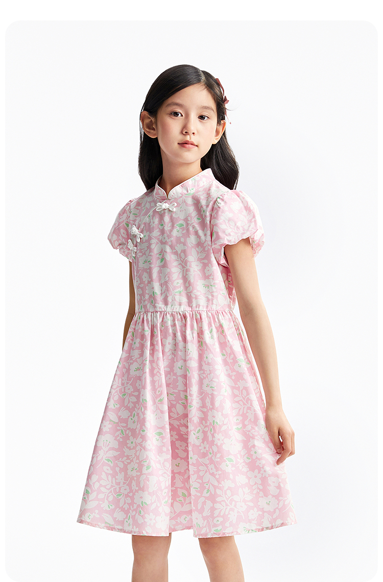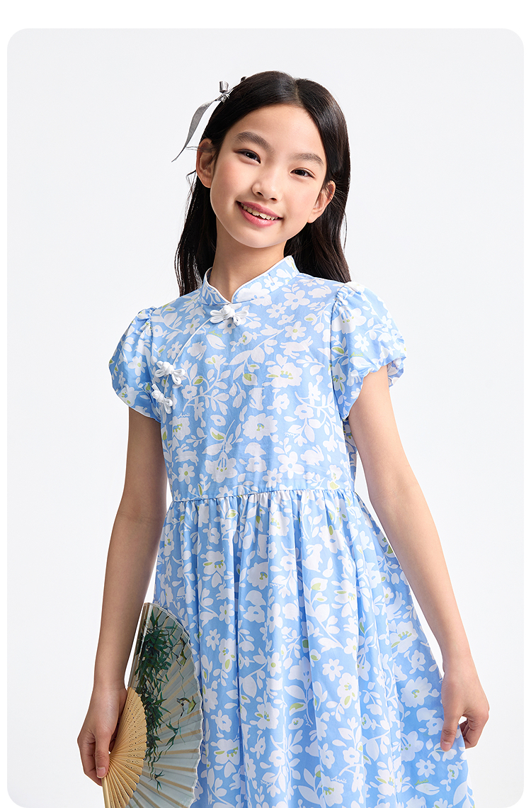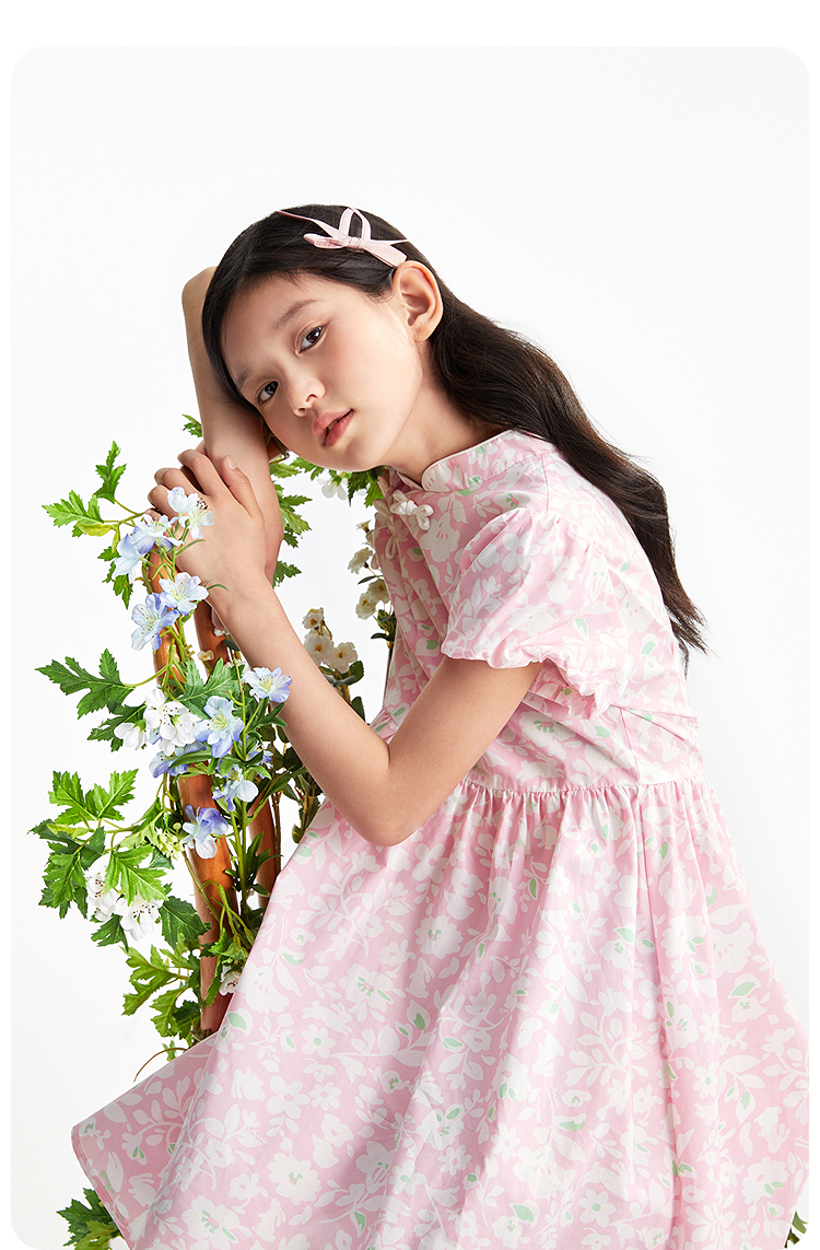 女童国风盘扣碎花甜美连衣裙夏季新款安奈儿童装EG523058