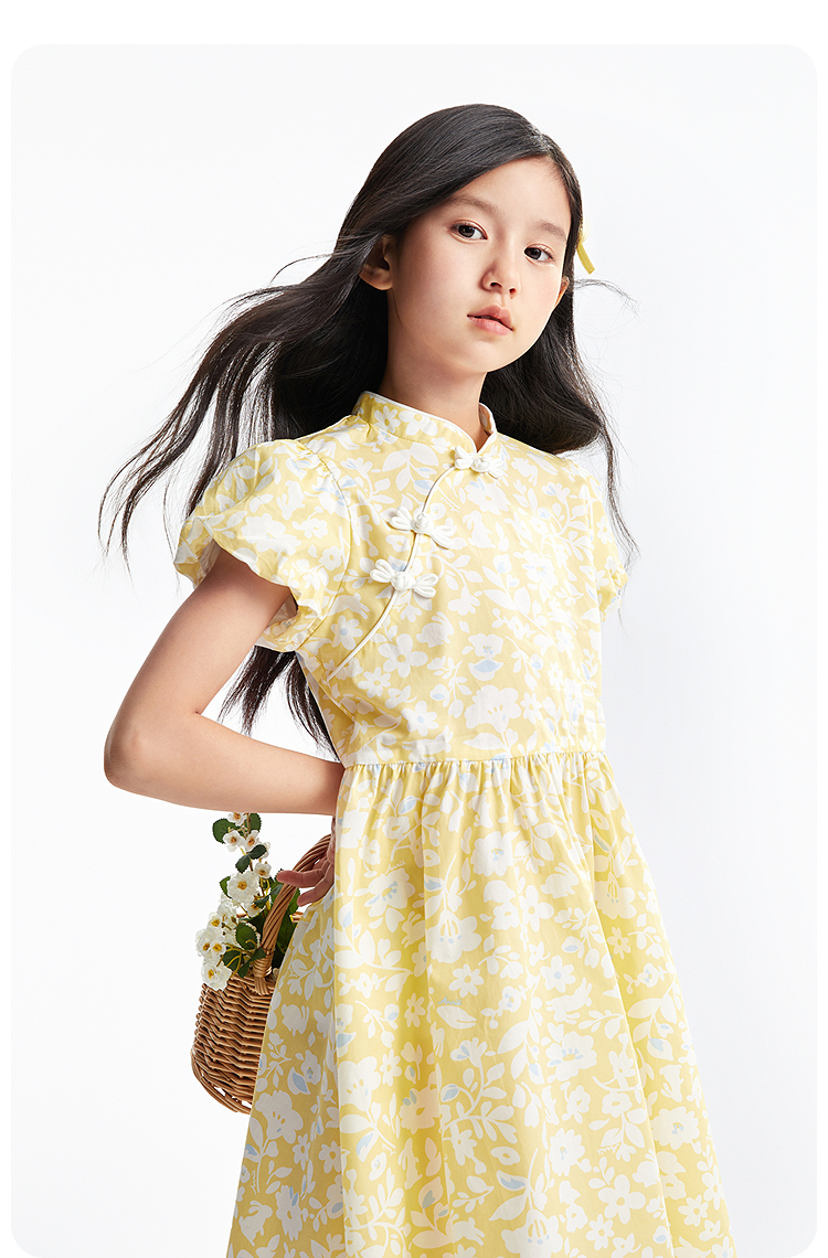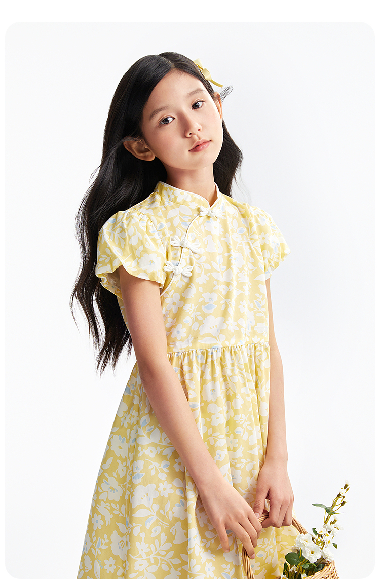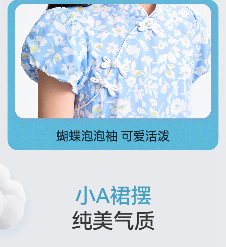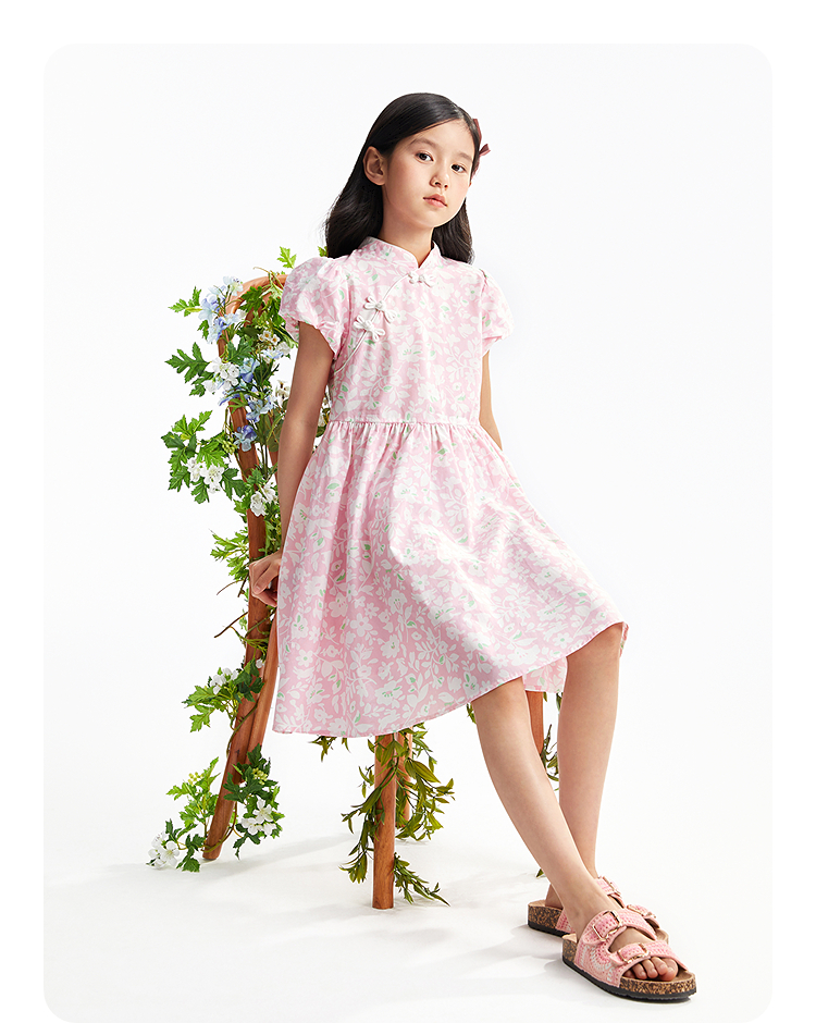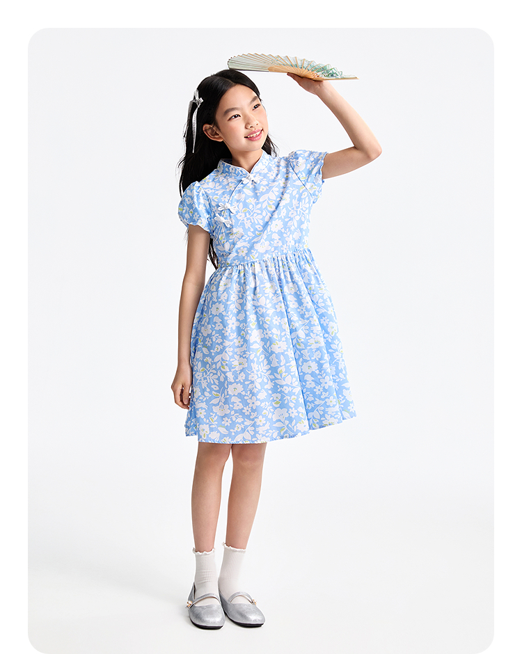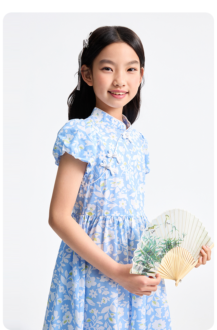 女童国风盘扣碎花甜美连衣裙夏季新款安奈儿童装EG523058