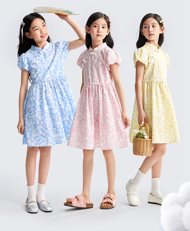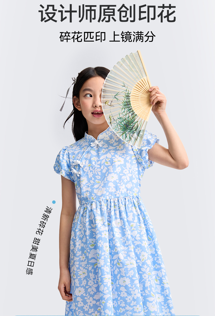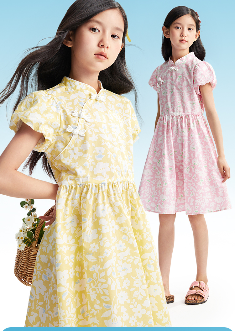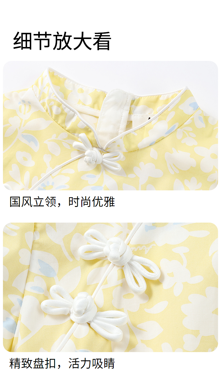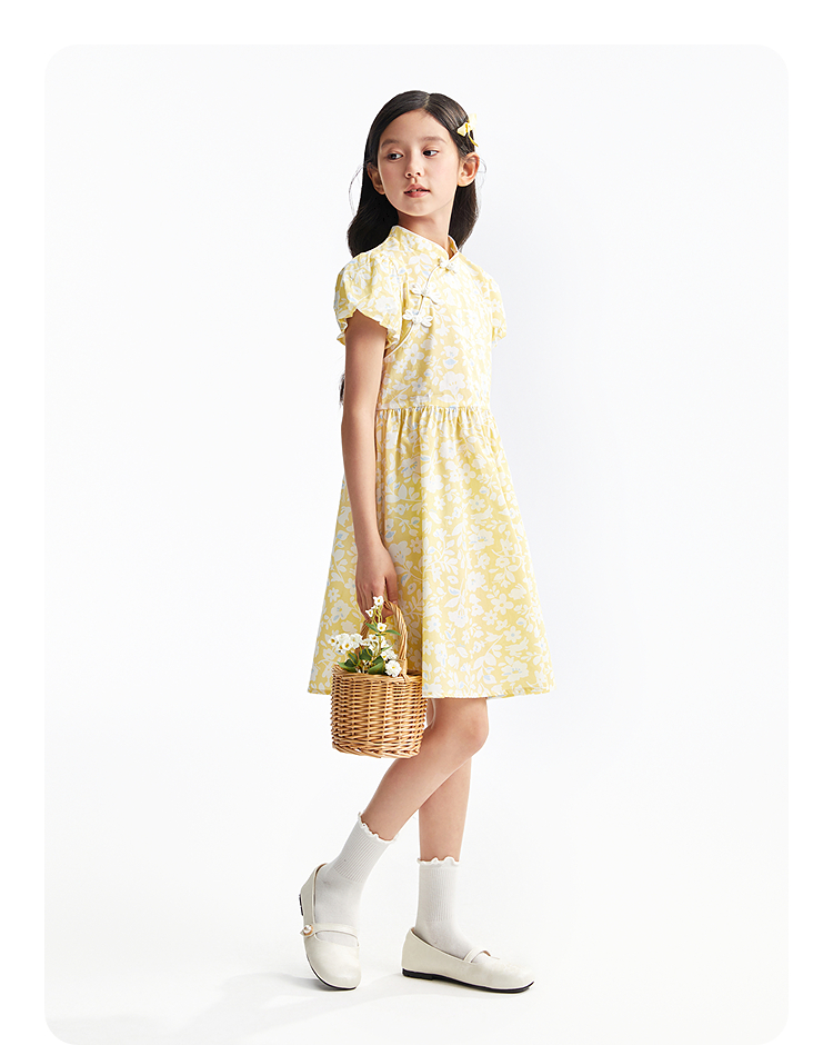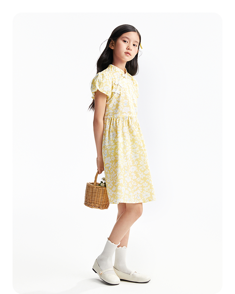 女童国风盘扣碎花甜美连衣裙夏季新款安奈儿童装EG523058