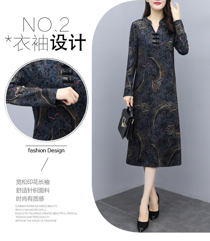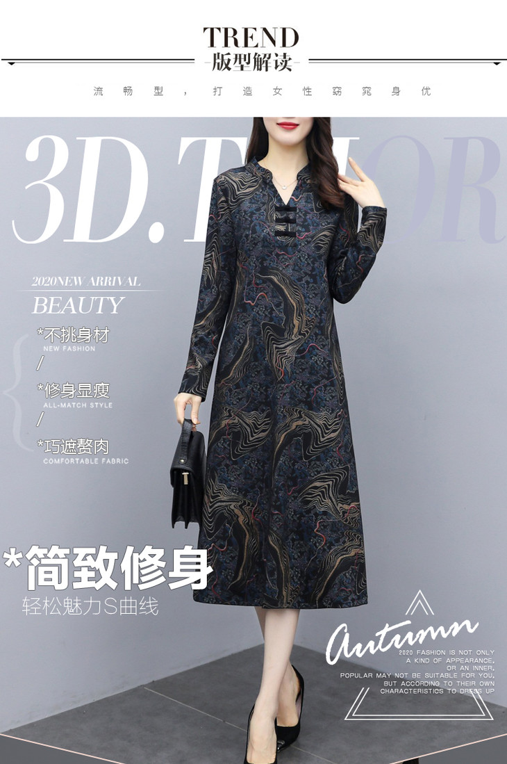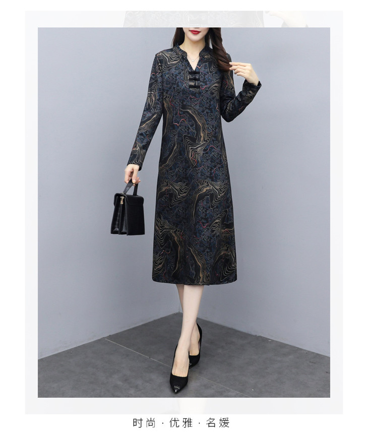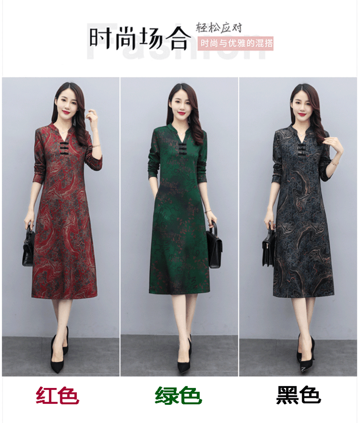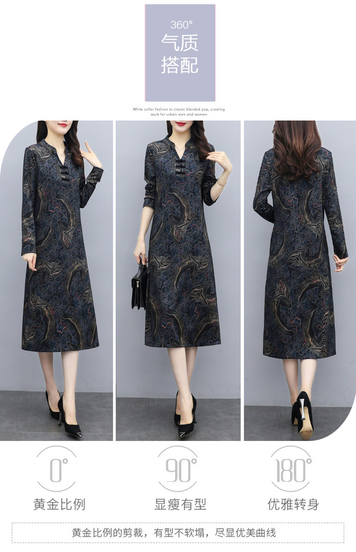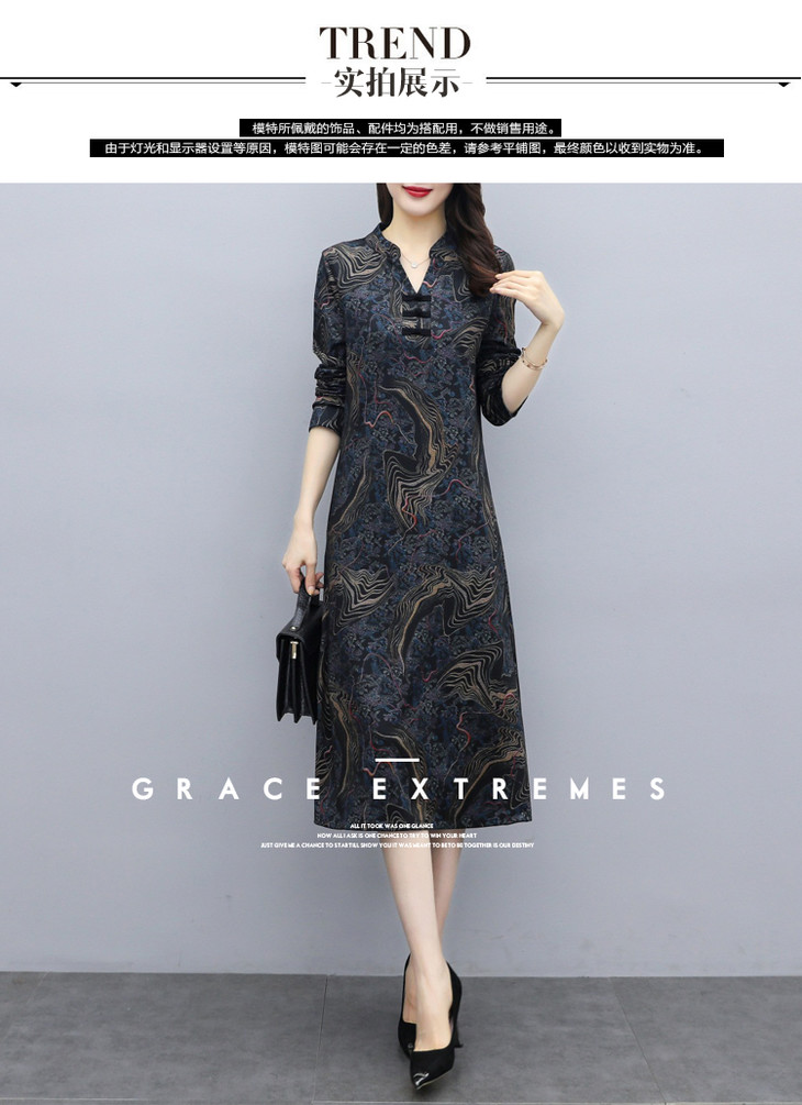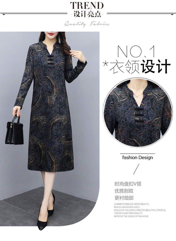 TT-699新款秋季妈妈装旗袍改良版气质显瘦过膝长裙连衣裙