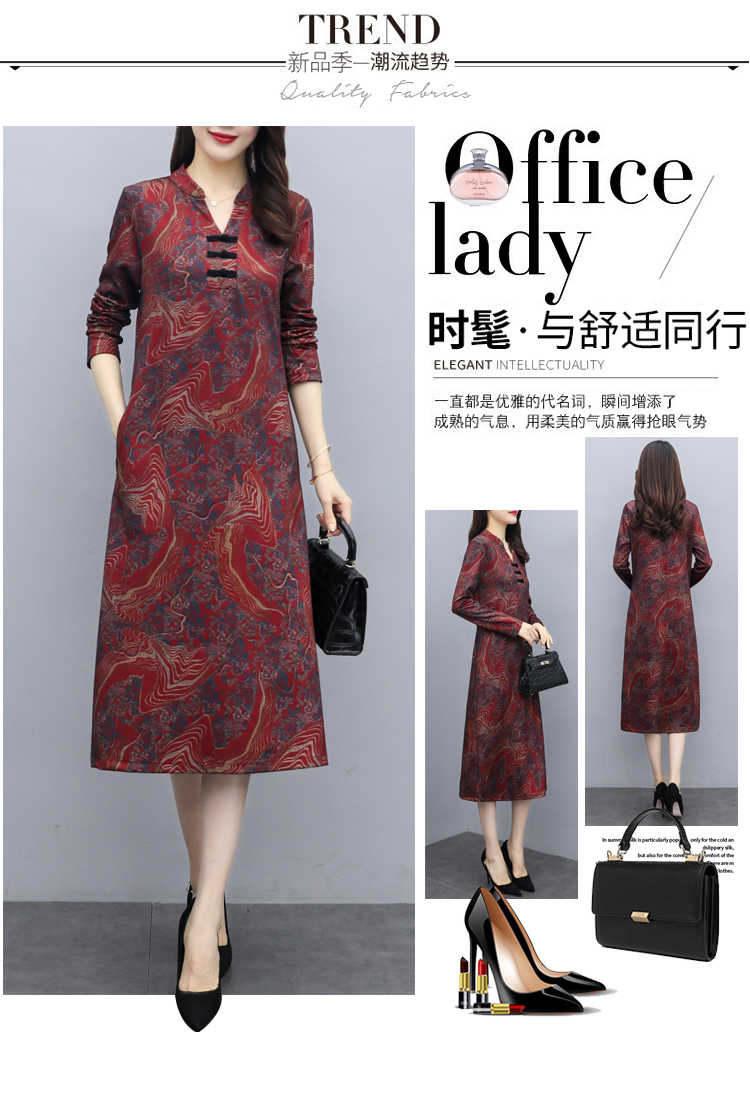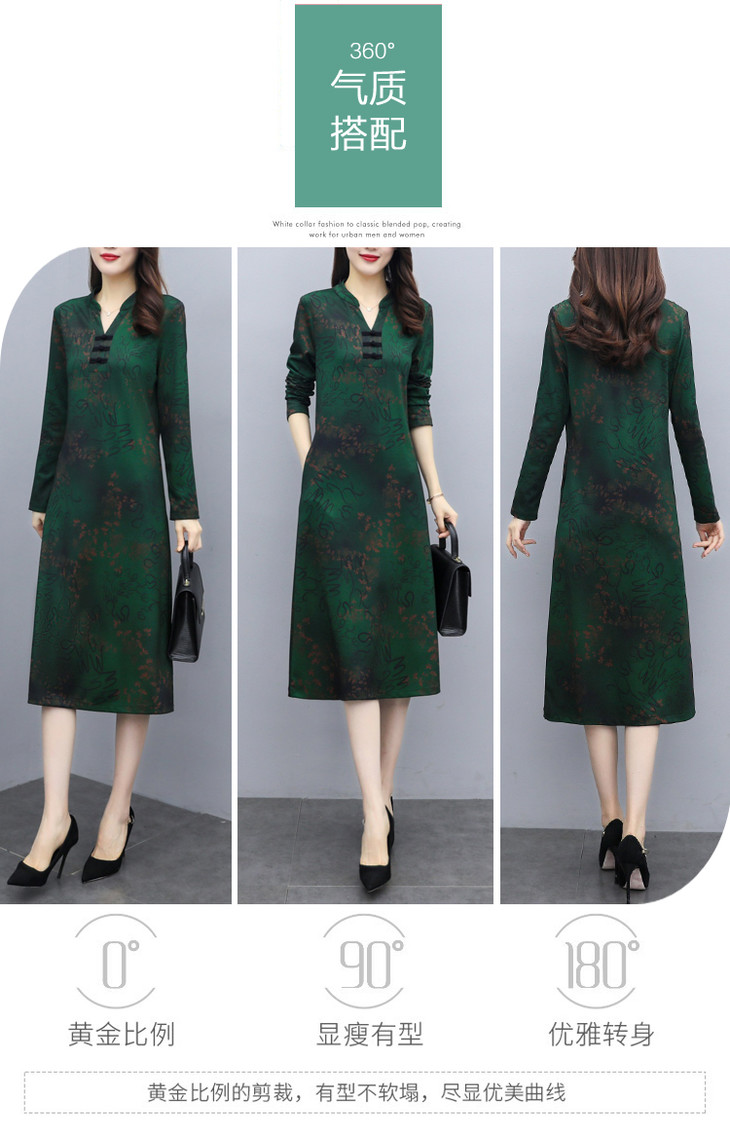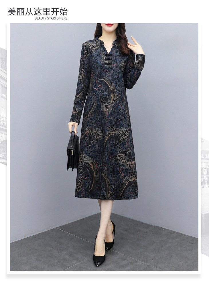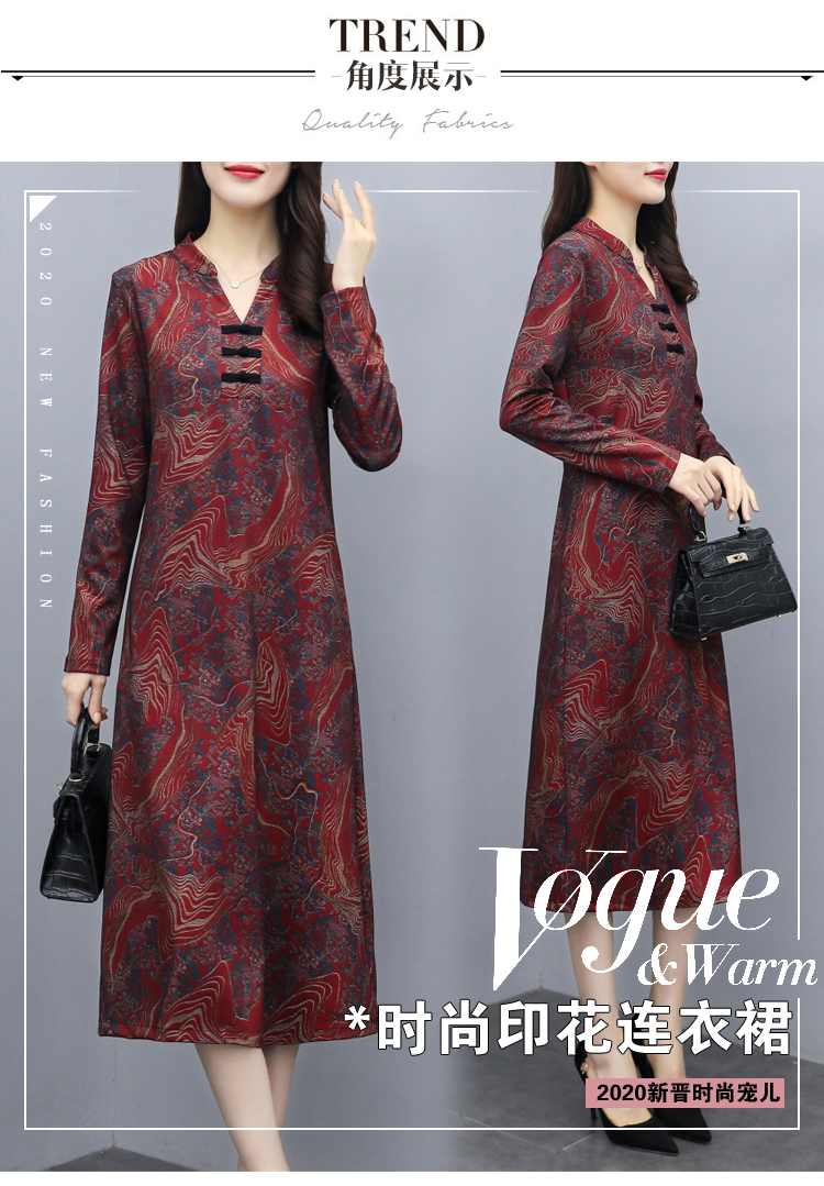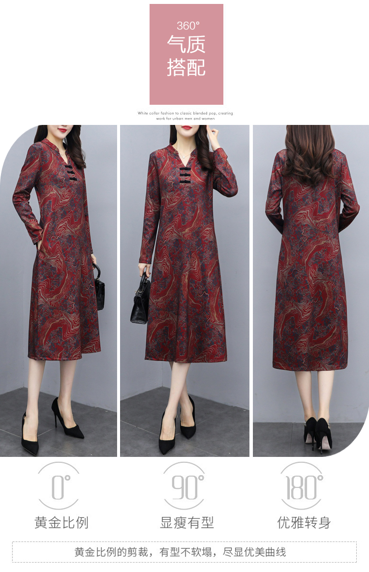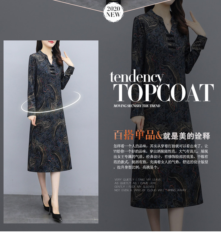 TT-699新款秋季妈妈装旗袍改良版气质显瘦过膝长裙连衣裙