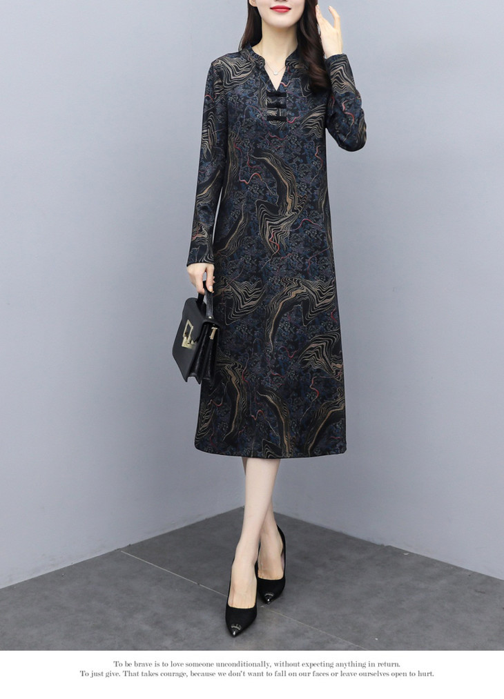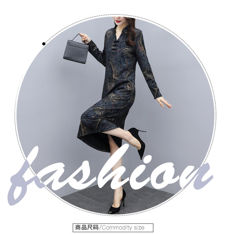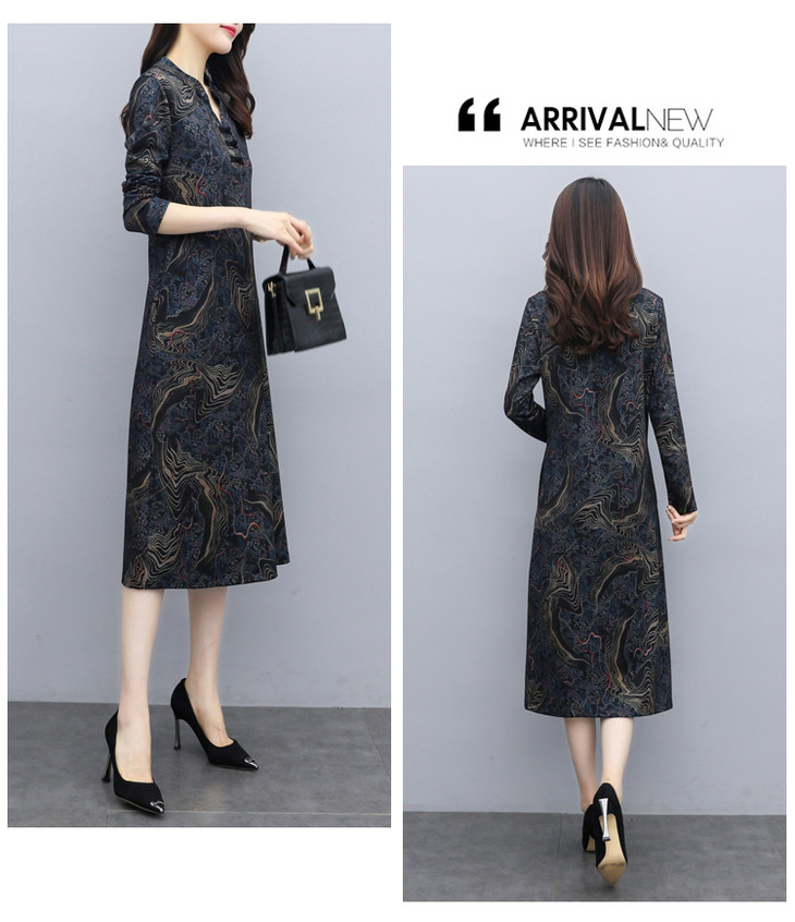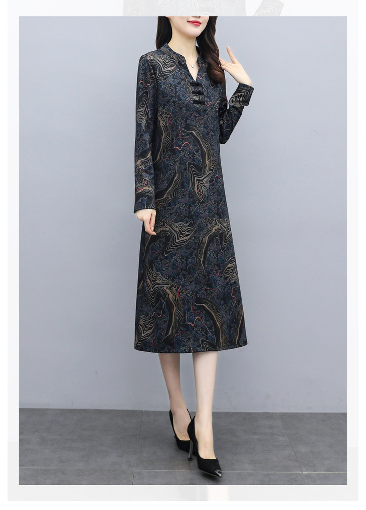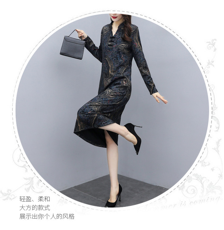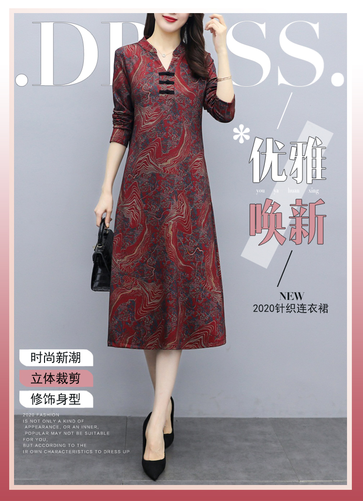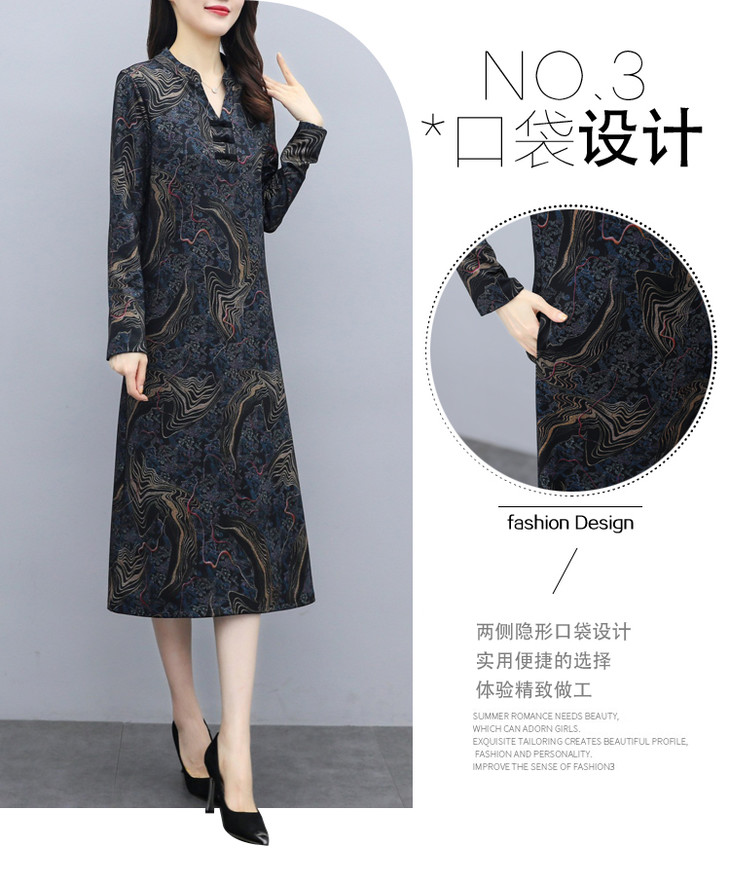 TT-699新款秋季妈妈装旗袍改良版气质显瘦过膝长裙连衣裙