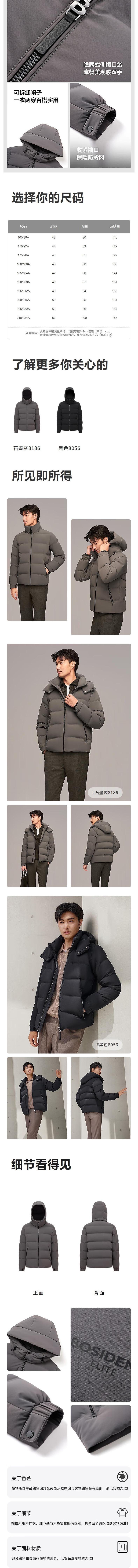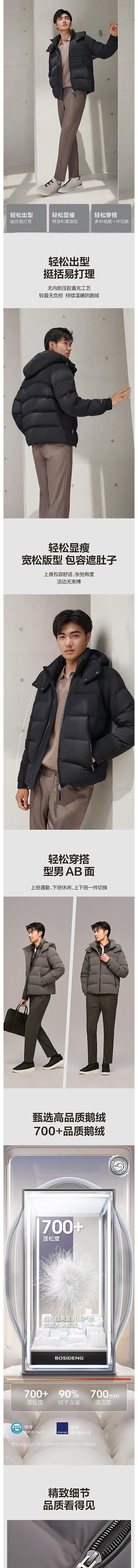 波司登 男脱卸帽短款羽绒服 B40144115