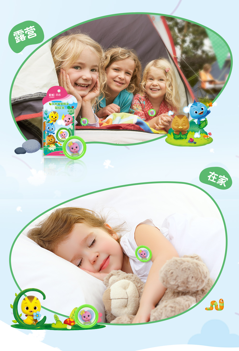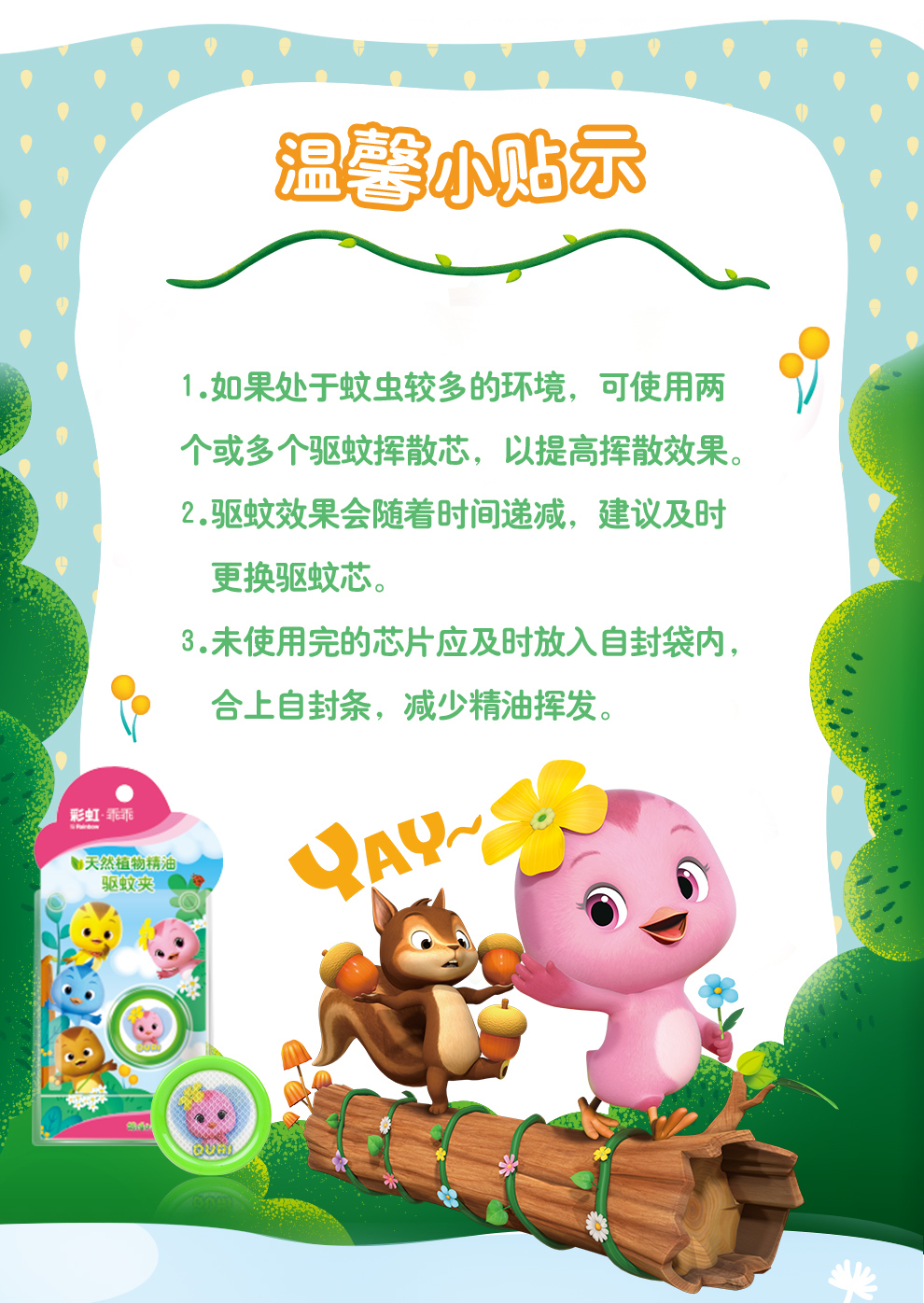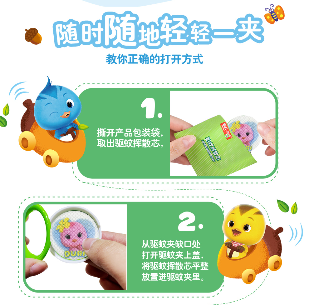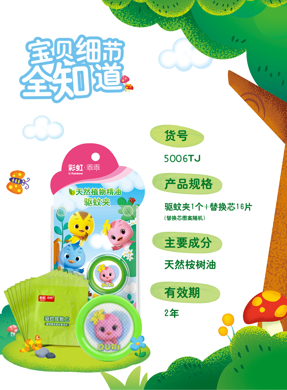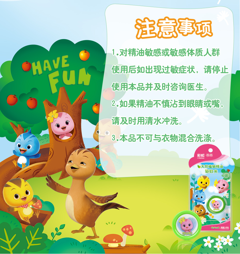 【Rainbow】彩虹乖乖植物精油驱蚊夹户外便携卡通驱蚊夹(两盒装)
