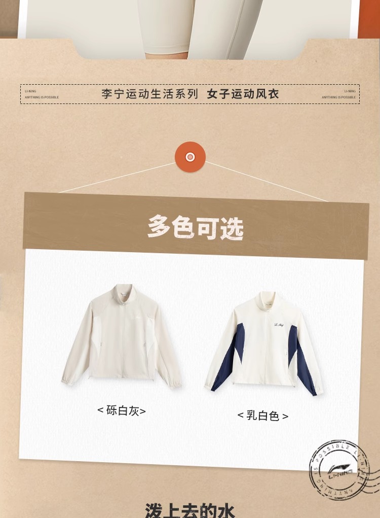 李宁运动风衣女2025新款运动生活开衫长袖外套秋季休闲 AFDV694