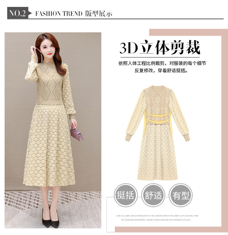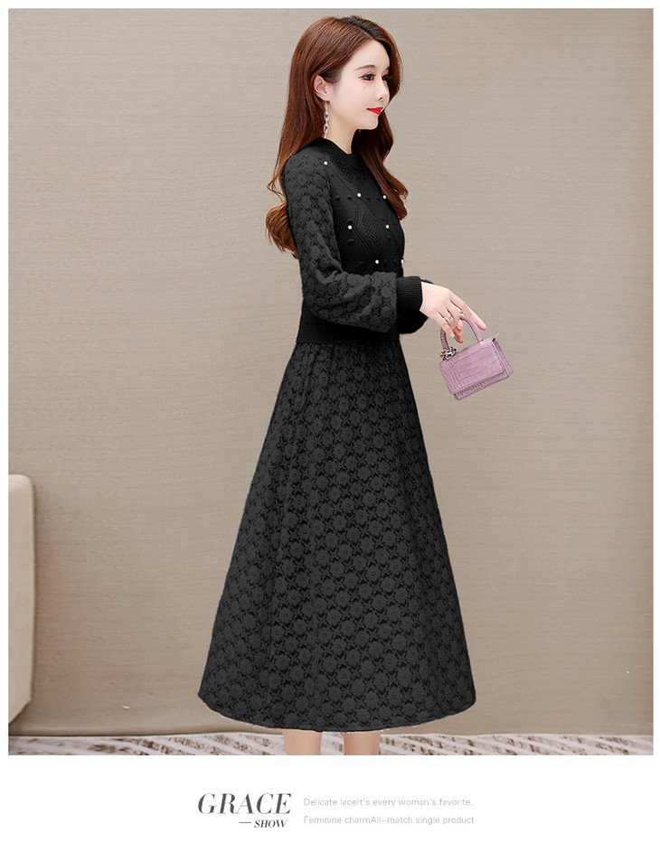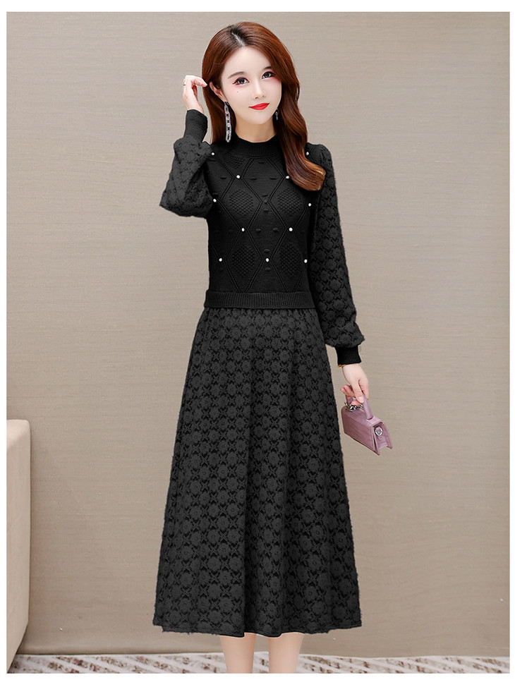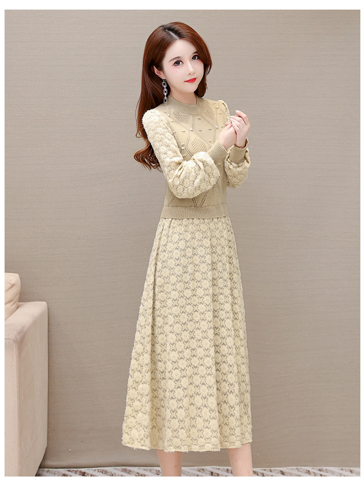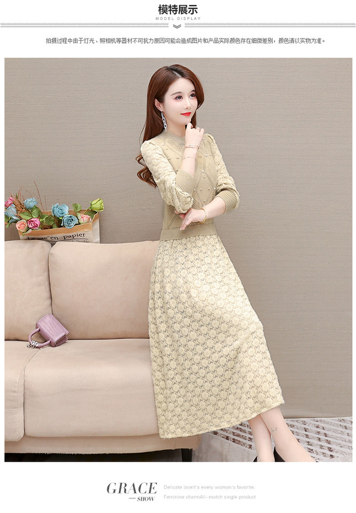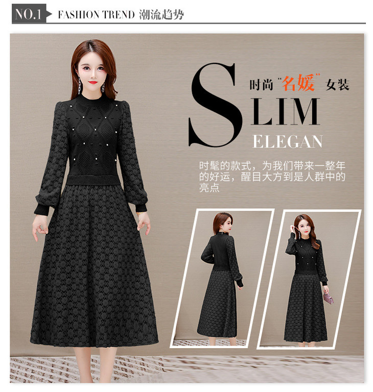 YWE-ZM-BA170气质优雅蕾丝长袖针织打底裙