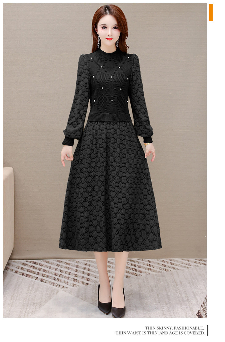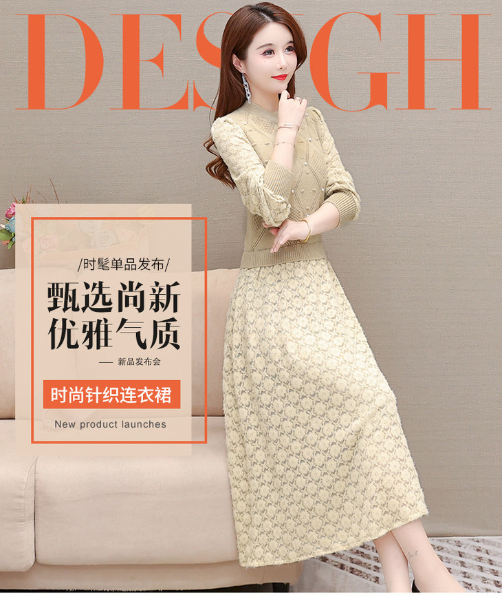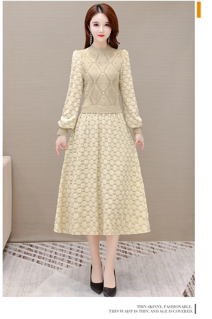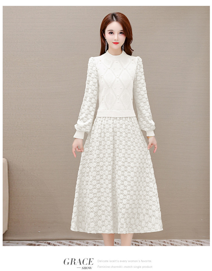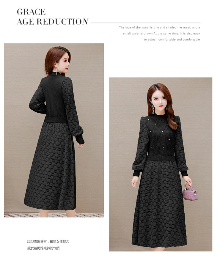 YWE-ZM-BA170气质优雅蕾丝长袖针织打底裙