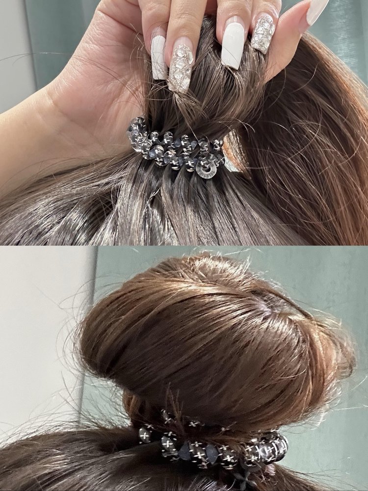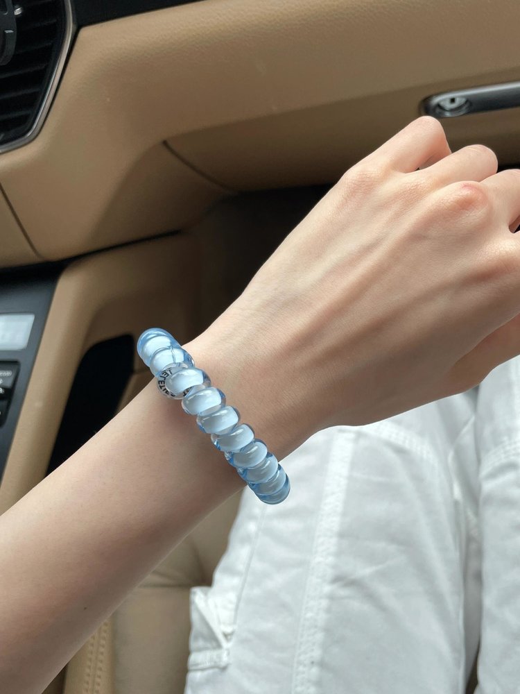 水晶果冻般的透亮材质,触感顺滑,阳光下泛着细腻光泽,高级感拉满;螺旋电话线造型搭配新型环保 TPU 材质,安全无毒、可降解防霉还防水防油,柔软高弹不拉伤头发,扎发一整天不松垮、不勒头皮,取下后头发无压痕。