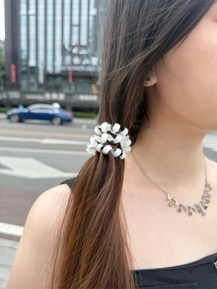 「白色雪刃」,是发圈界的清冷白月光。纯净无杂色的奶白色,如冬日初雪般清新温柔,随手一扎就气质拉满。