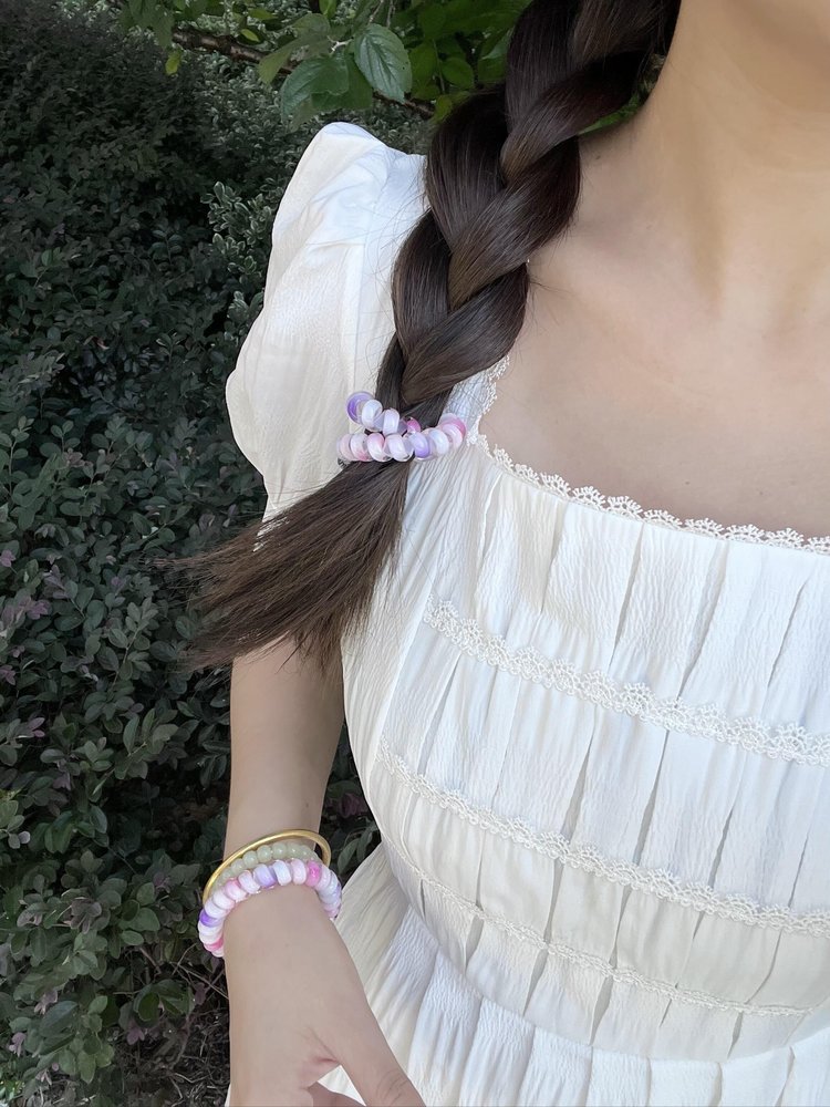 彩色发绳本身就是穿搭亮点,戴上它仿佛把整个夏天的明媚系在发间,不管扎发还是当腕饰,都能瞬间点亮造型。