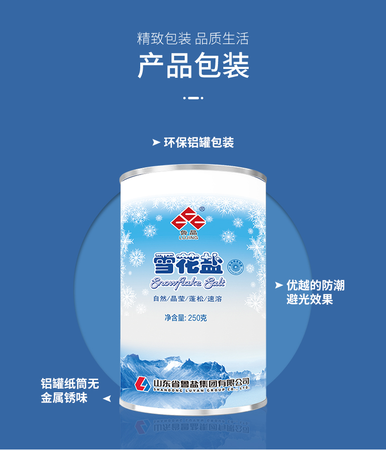 鲁晶 东方海盐 雪花盐未加碘8罐高端海盐无抗结剂无碘盐食盐礼盒
