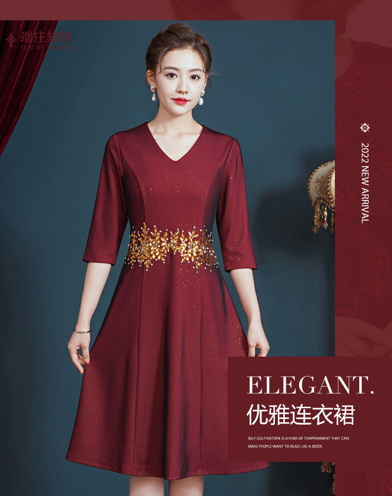 JC-5386喜婆婆婚宴装小个子婚礼服平时可穿简约大气显瘦连衣裙