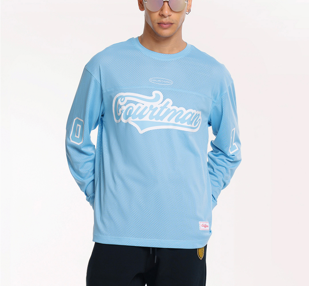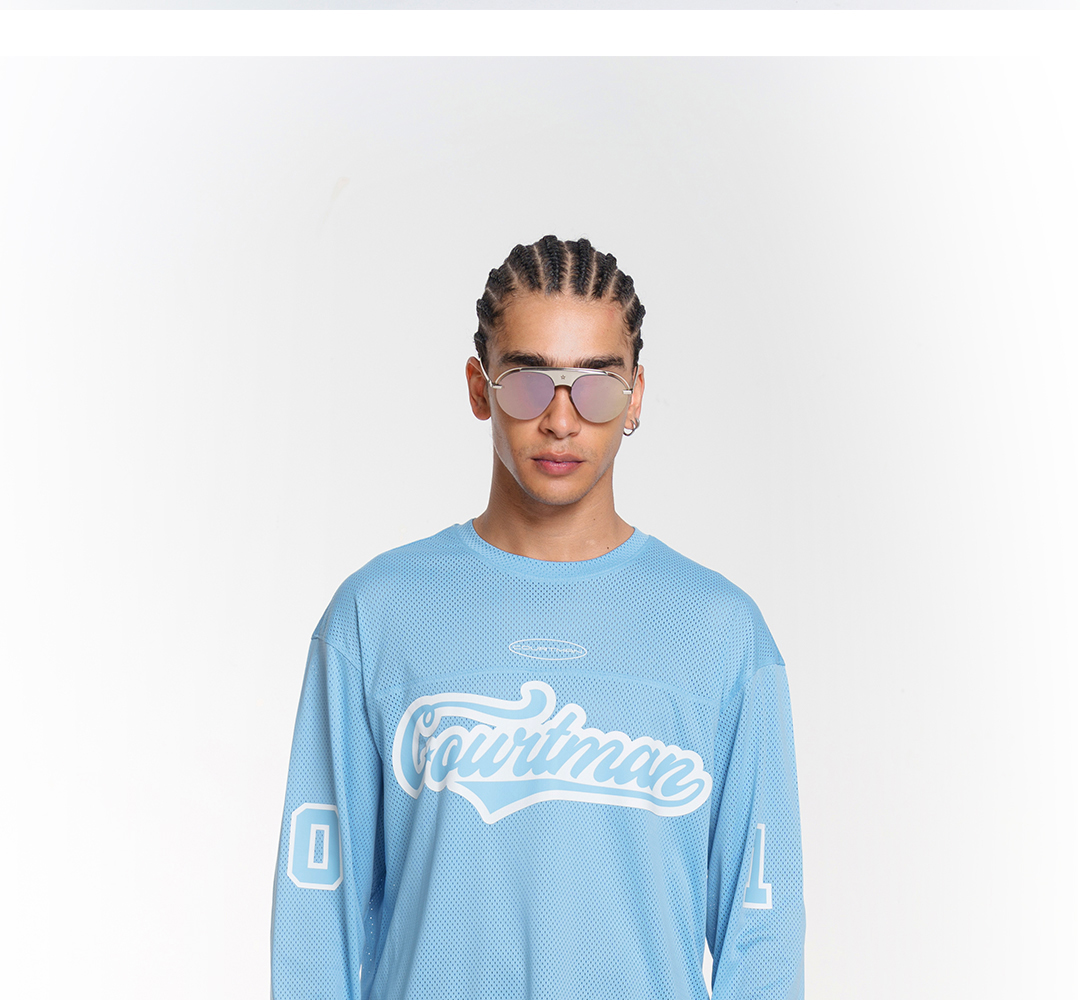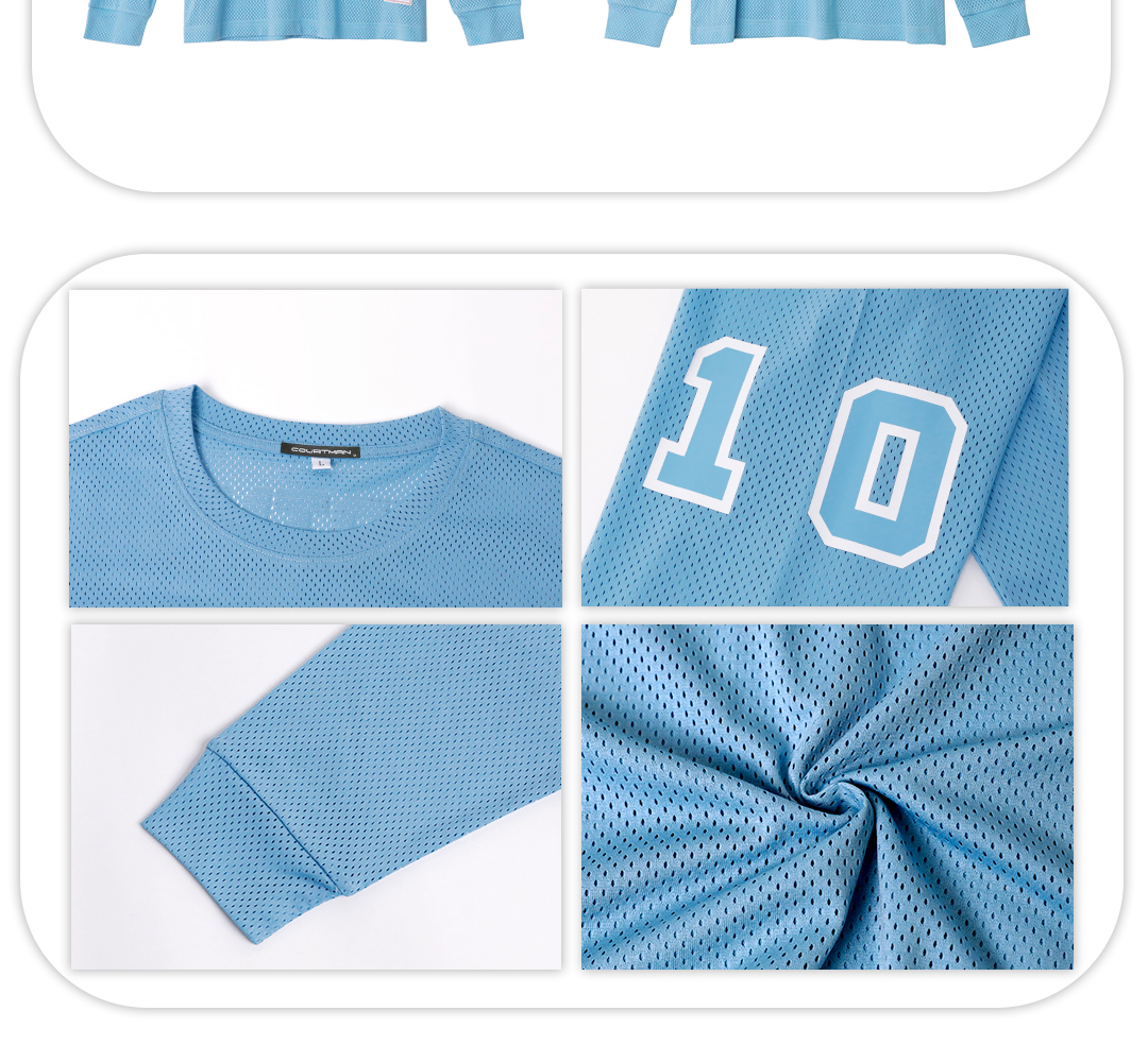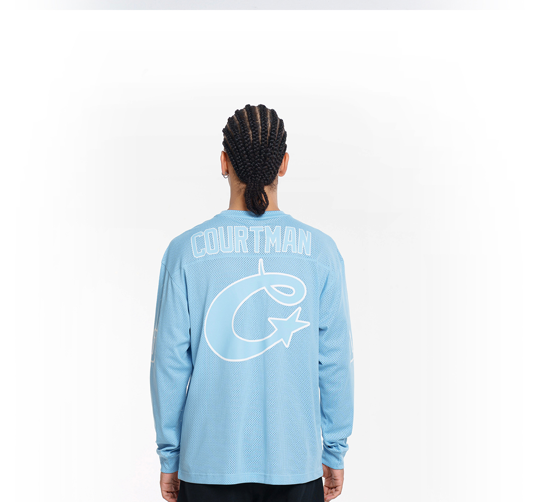 COURTMAN野球帝 北卡蓝复古网眼长袖健身上衣运动训练服投篮服T恤