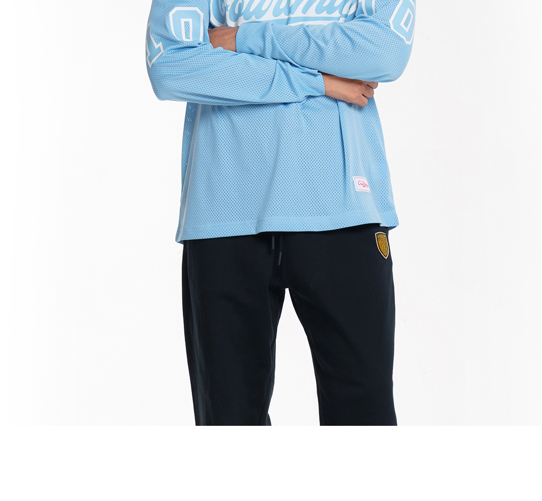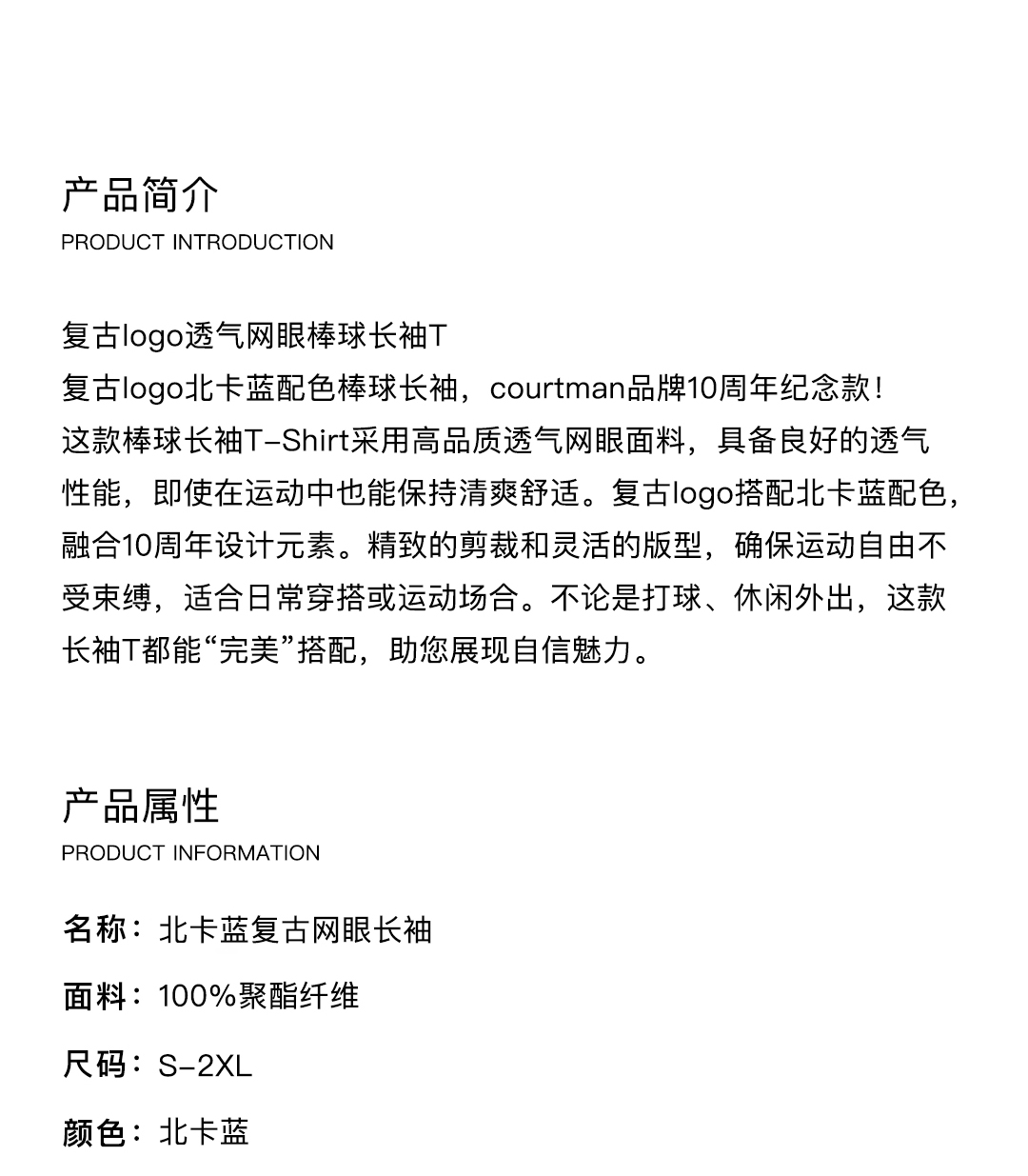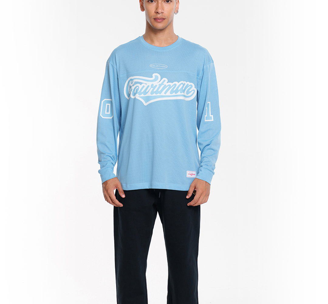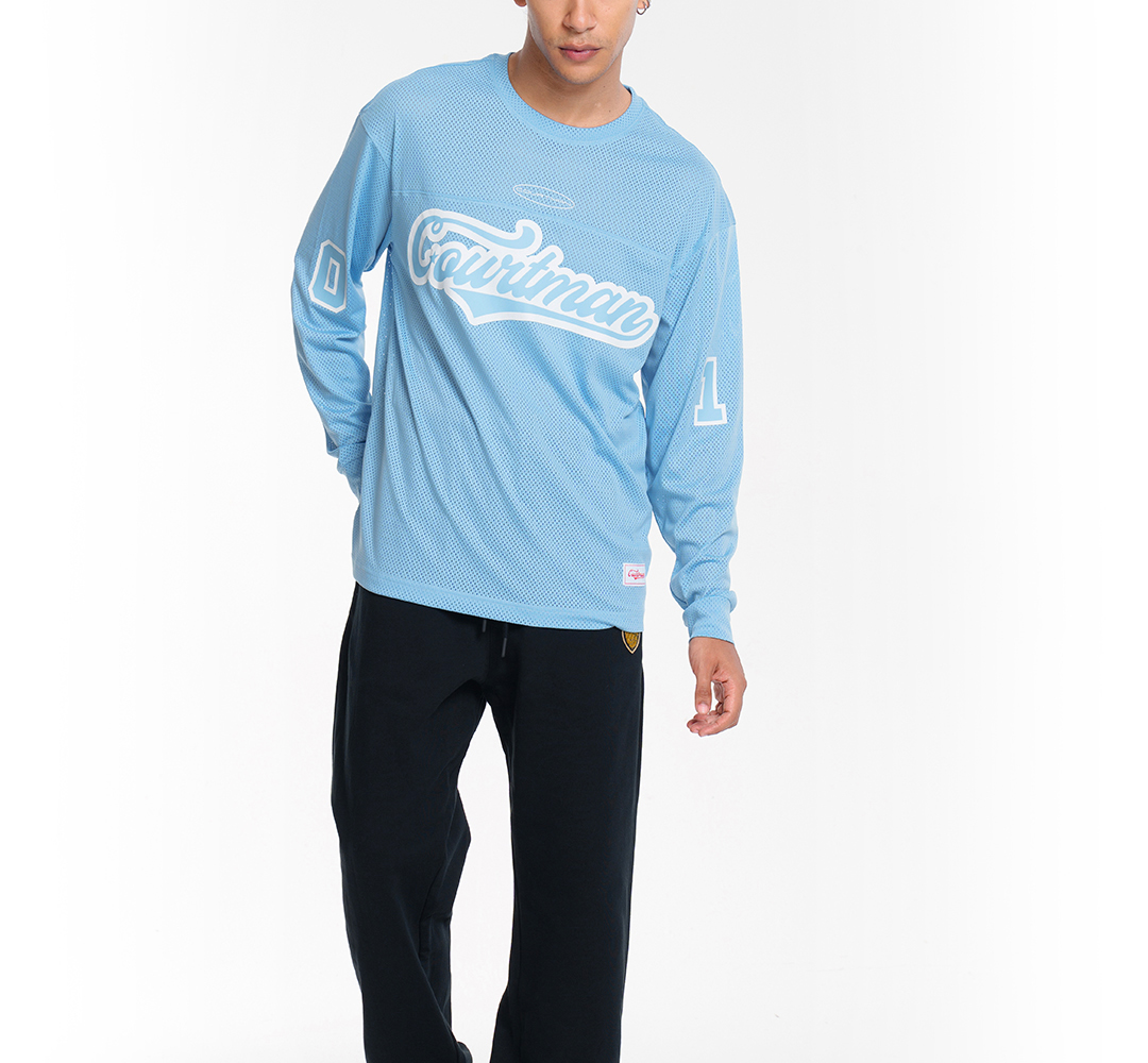 COURTMAN野球帝 北卡蓝复古网眼长袖健身上衣运动训练服投篮服T恤