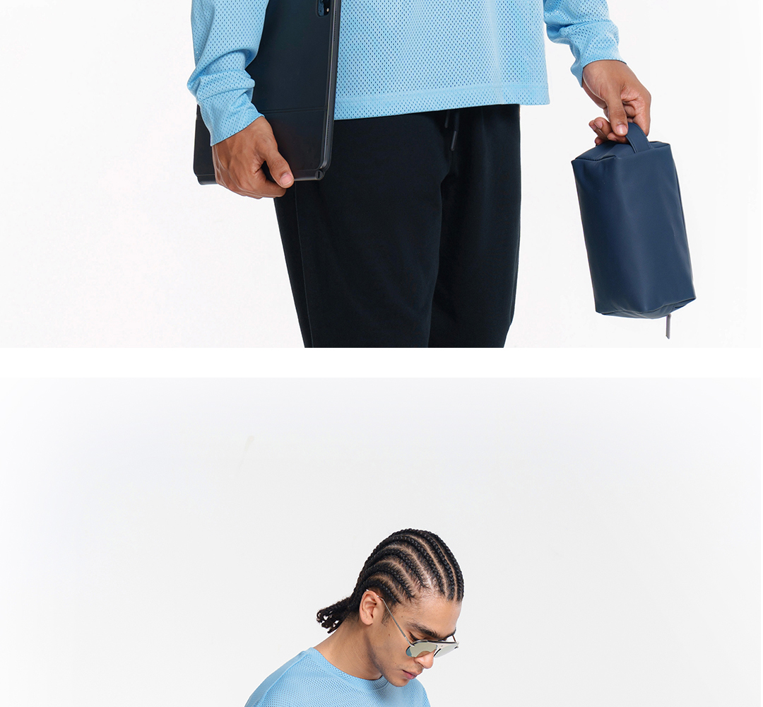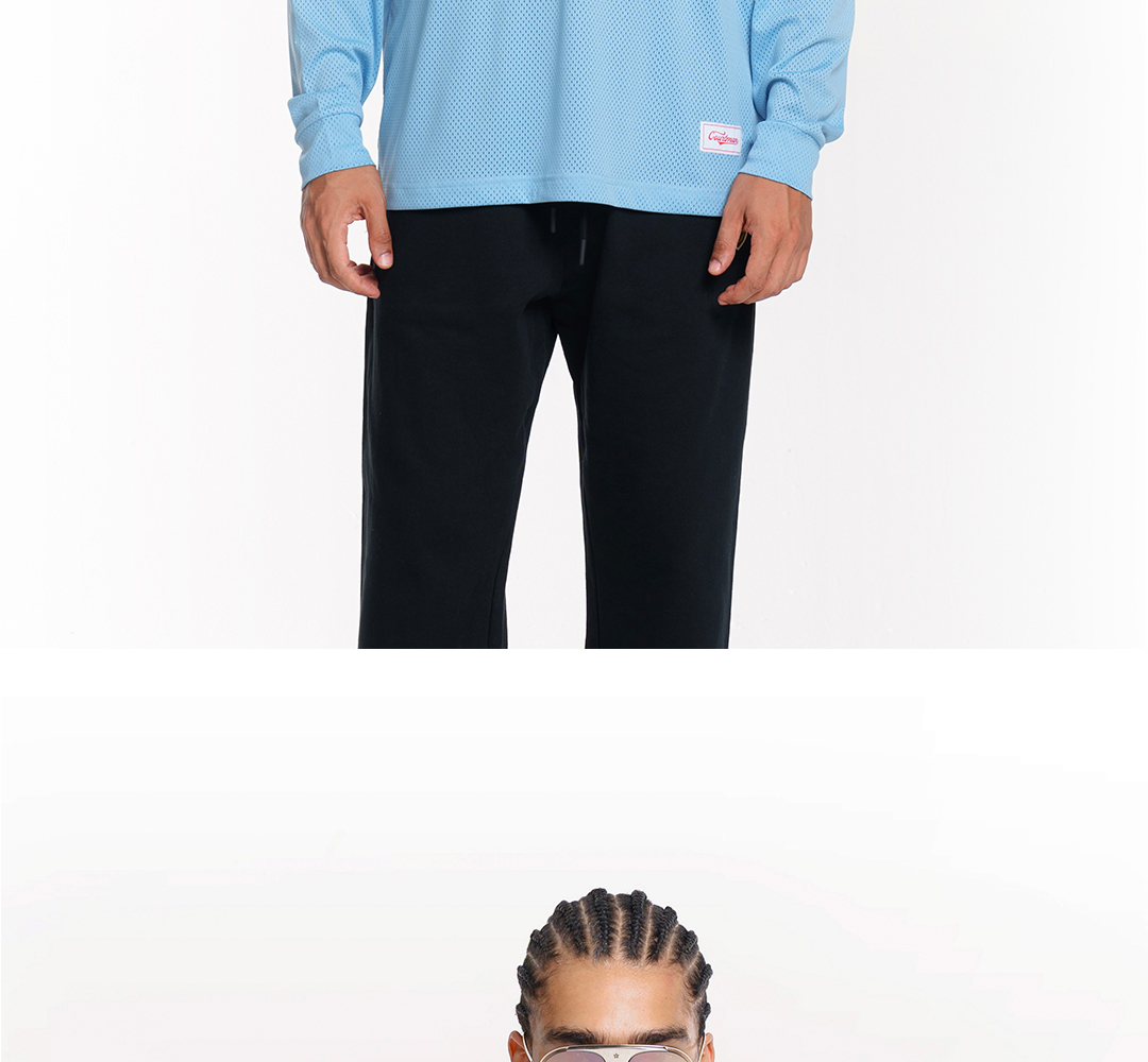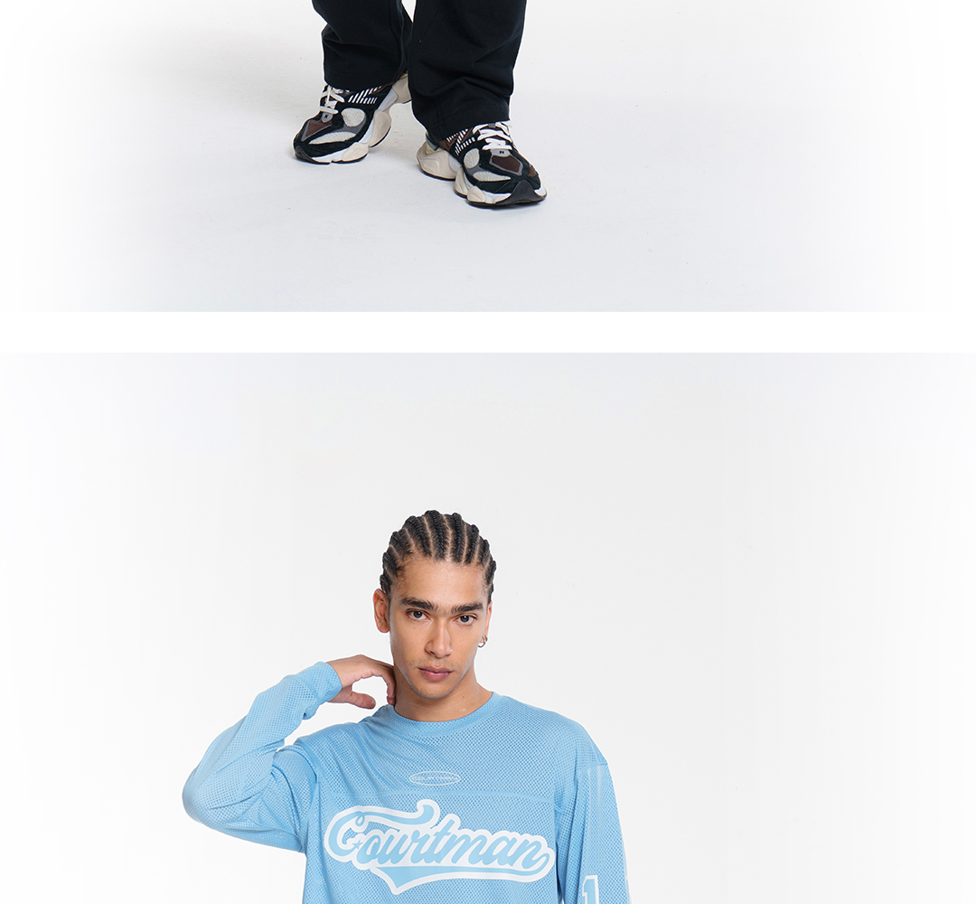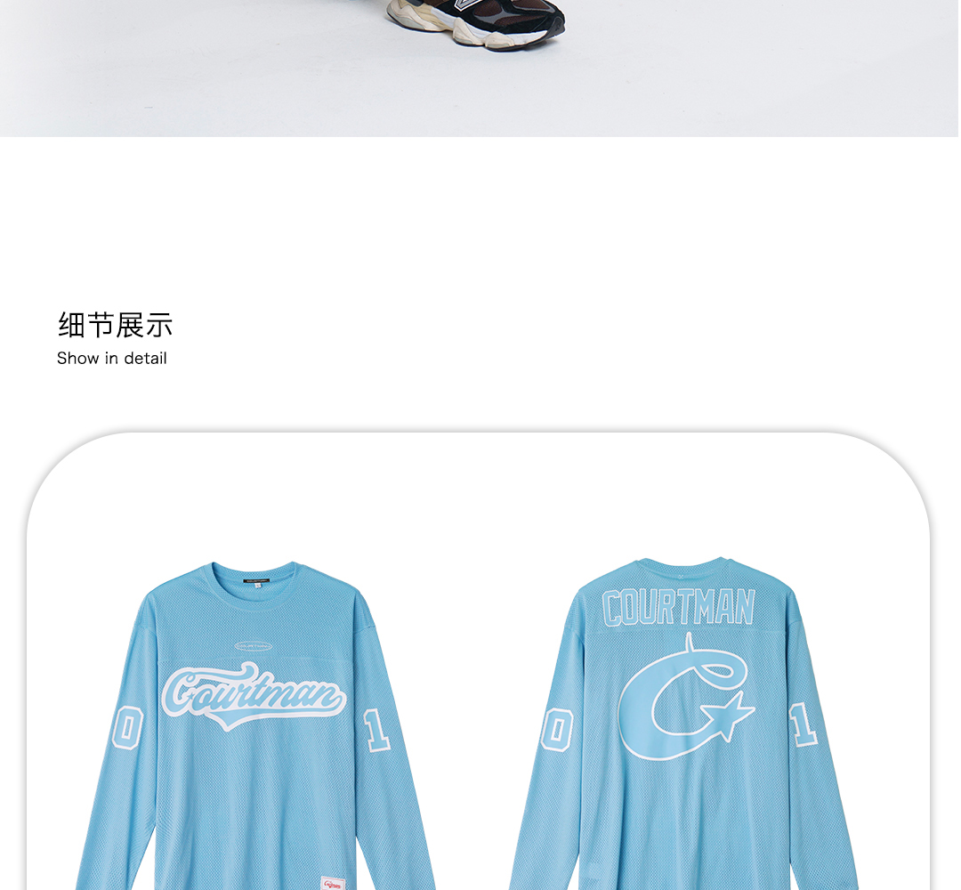 COURTMAN野球帝 北卡蓝复古网眼长袖健身上衣运动训练服投篮服T恤