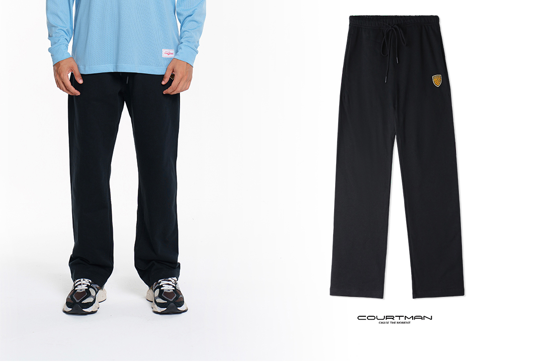 COURTMAN野球帝 运动直筒徽章宽松针织裤跑步训练篮球休闲卫裤男